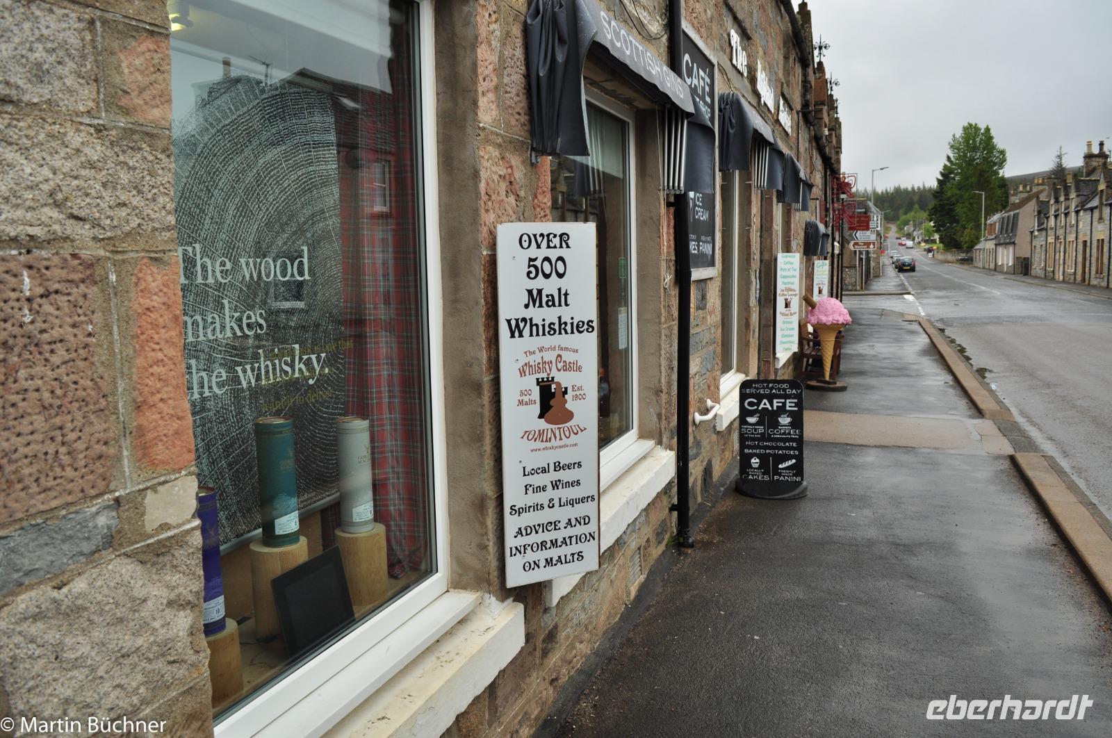 Wir reisen quer durch die Speyside mit den vielen Destillen. In Tomintoul besuchen wir Whisky Castle, ein bekanntes Whisky Geschäft. Hier dürfen wir auch den hiesigen Whisky aus der Tomintoul Distillery probieren. Wir folgen der Whisky-Route nach Norden und besuchen das beschauliche fast verschlafene Glenlivet mit seiner Destille. Der Whisky schmeckt zukünftig noch viel besser, wenn man weiß wie sauber hier die Luft und das Wasser sind und wieviel echte Ruhe hier der Whisky zum reifen hat. Last but not least Dufftown. Das Zentrum der Whisky Produktion in Schottland. Hier ist mit Glenfiddich, die größte produzierende Destille Schottlands anwesend.