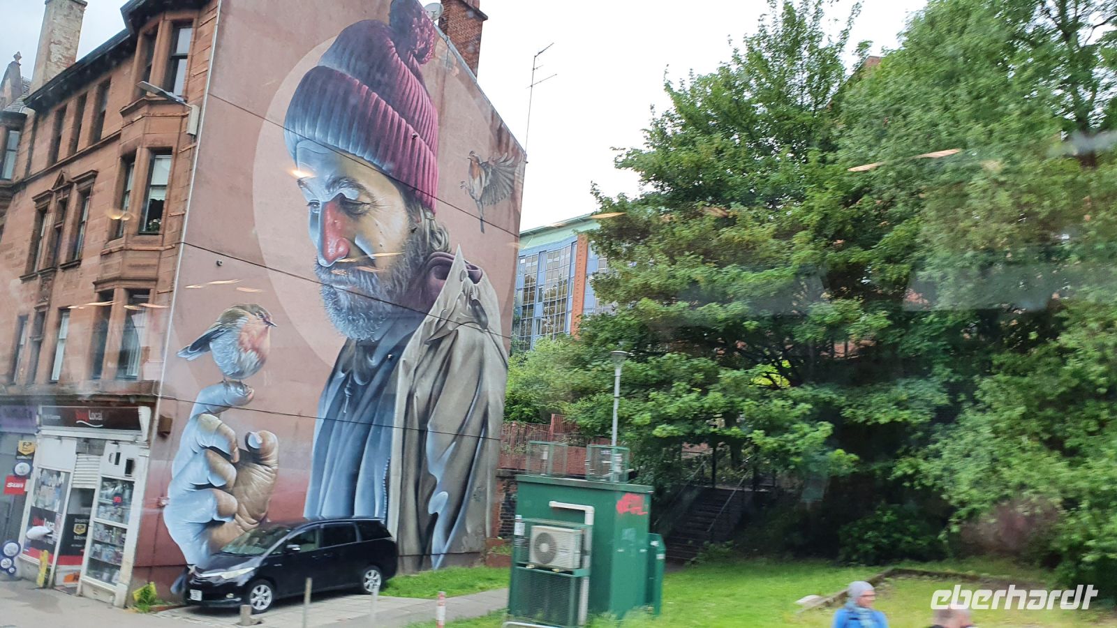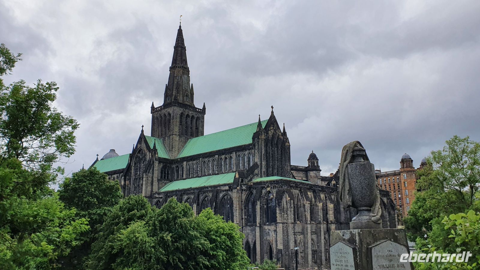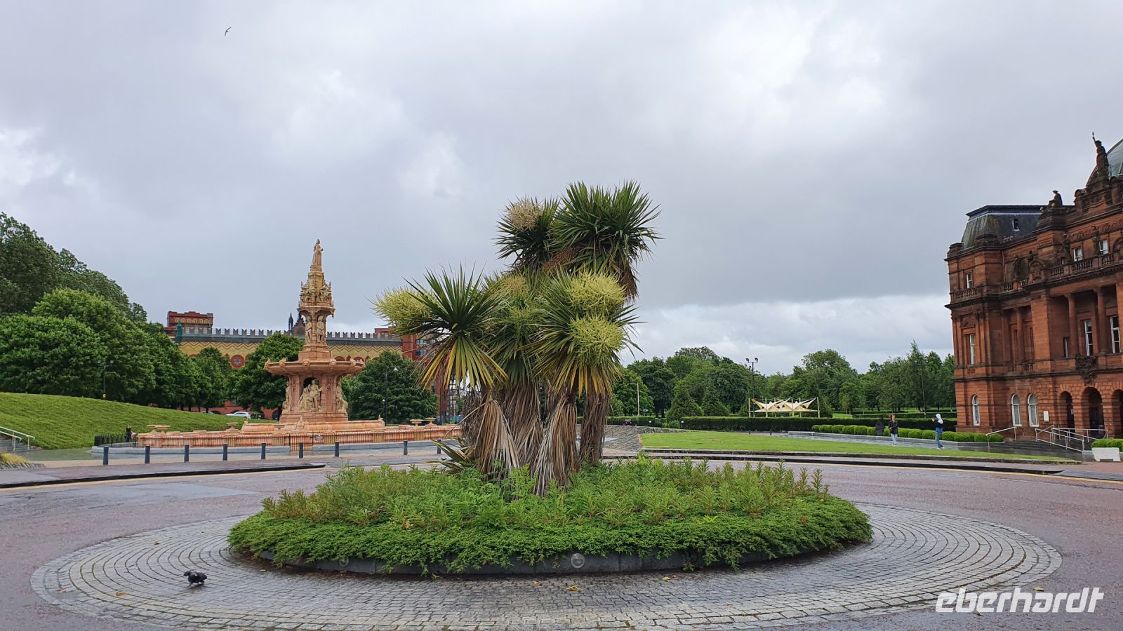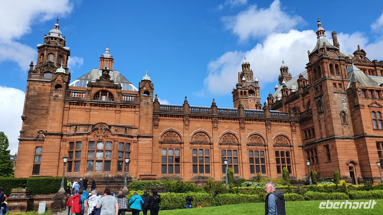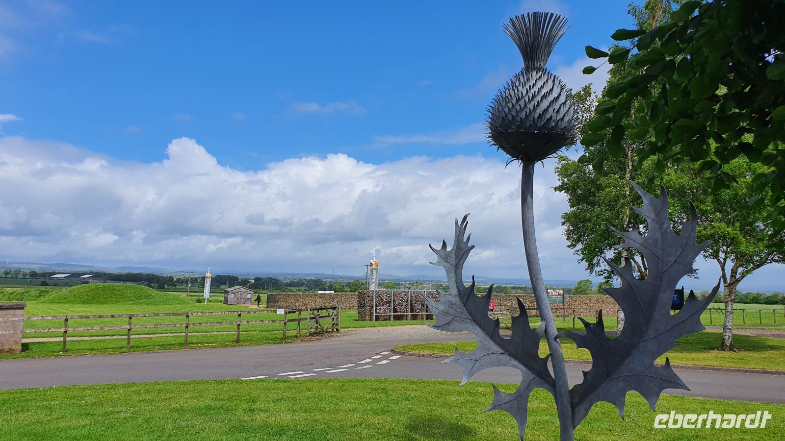 Die Nacht auf See war ruhig und beim Frühstücks-Buffet werden wir noch einmal verwöhnt. Pünktlich kurz nach 9 Uhr Ortszeit erreichen wir Newcastle upon Tyne und legen an. Check-Out und Passkontrolle verlaufen reibungslos und so warten wir nur noch auf Jan mit unserem Bus. Der muss sich noch ein wenig gedulden bis er von Bord fahren kann und dann kann unsere Rundreise durch Schottland beginnen. Nun ja- nicht ganz. Immerhin sind wir noch auf englischem Boden. Mit der britischen Hymne geht es in den ersten Kreisverkehr linksherum und natürlich gibt es hier eine Ehrenrunde. Wir verlassen Newcastle und wechseln auf die alte, schmale ehemalige Militärstraße. Sie verläuft parallel zum Hadrianswall. Den hatte Kaiser Hadrian 122-128 nach seiner Eroberung Britanniens als Schutzwall bauen lassen. Er schützte nicht nur vor Überfällen, er regelte auch den Handel mit den hier ansässigen Picten. Am Cawfield Steinbruch steigen wir aus und können selbst ein kleines Stück am alten Hadrianswall entlang gehen und die Überreste eines Meilenkastells bewundern. Weiter geht unsere Fahrt nach Westen und kurz vor Gretna Green überqueren wir dann die englisch-schottische Grenze. Die schottische Flagge - die Saltire- schmückt ab sofort unseren Bus und im Hochzeits- Dorf Gretna Green halten wir für eine Lunch-Pause. Pünktlich erreichen wir dann Glasgow und treffen unsere Fluggäste im Hotel "Moxy". Rasch sind die Zimmer bezogen und alle wieder in der Lobby denn wir wollen uns mit Victoria, unserer Stadtführerin, noch Glasgow ansehen. Unser erster Stopp ist Kelvingrove Art Gallery and Museum aus rotem Sandstein, Glasgows größtes Museum mit einer einmaligen Kunstsammlung. Wir umrunden es , denn der Haupteingang ist eigentlich an der Parkseite. Von hier aus geht es durch die Stadt, Victoria erzählt vom Handel, dem Schiffbau und der rasch wachsenden Industrie, zeigt uns Handelsplätze und wie sich Glasgow entwickelt hat. Der Peoples Palace erzählt ebenfalls davon, hier stoppen wir und schauen uns den größten Terrakottabrunnen der Welt an. Natürlich darf auch ein Besuch der Glasgower Kathedrale nicht fehlen- leider ist sie geschlossen aber von der Nekropolis aus haben wir einen tollen Blick auf dieses beeindruckende Bauwerk. Am Hotel schließlich verabschieden wir uns von Victoria und spazieren gemeinsam zur "Villa Toscana". Hier werden wir heute und morgen zu Abend essen. Jeder sucht sich aus der Karte Gerichte aus, die ihm/ ihr zusagen und so klingt beim gemeinsamen Essen der Tag langsam aus.