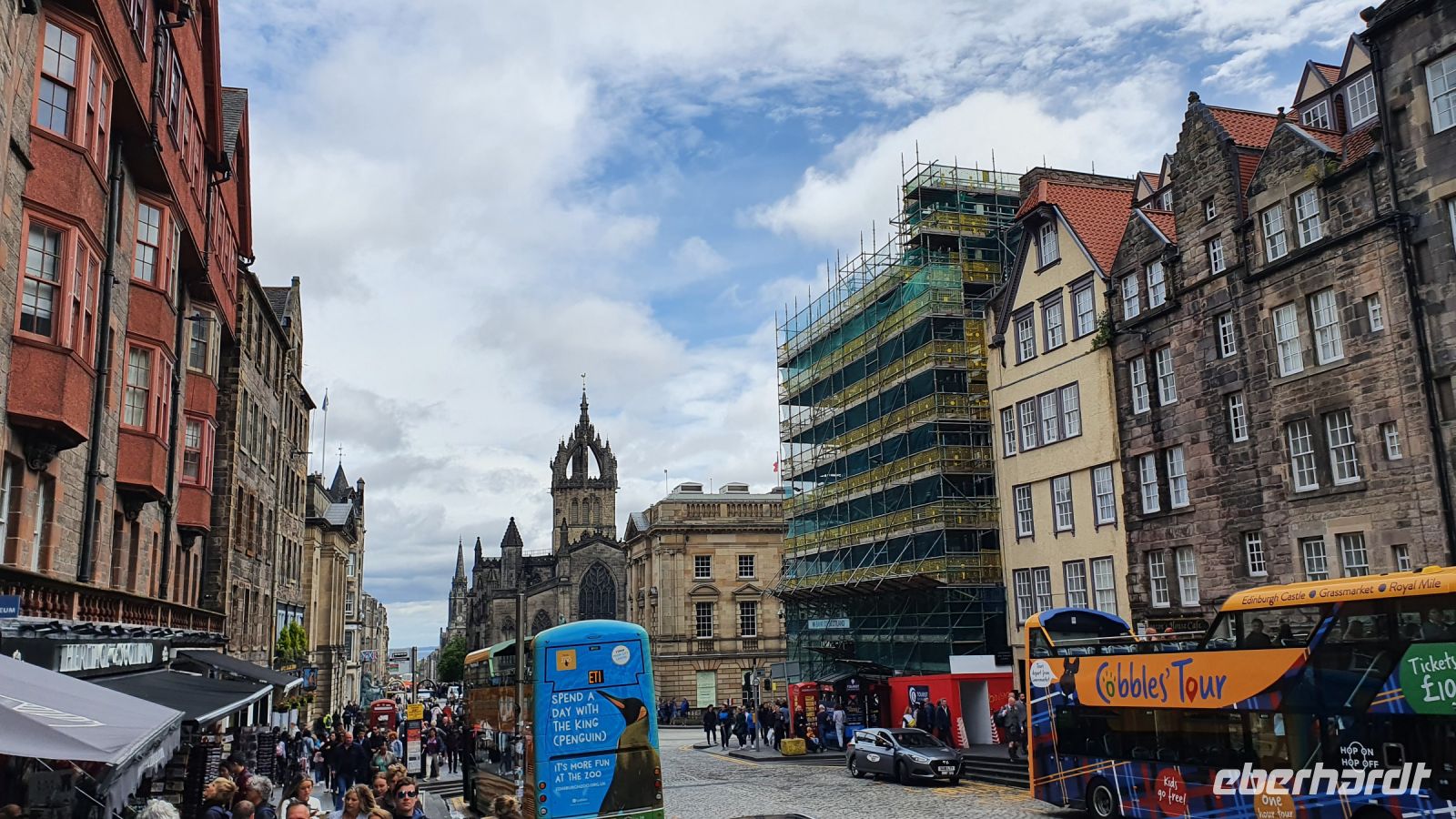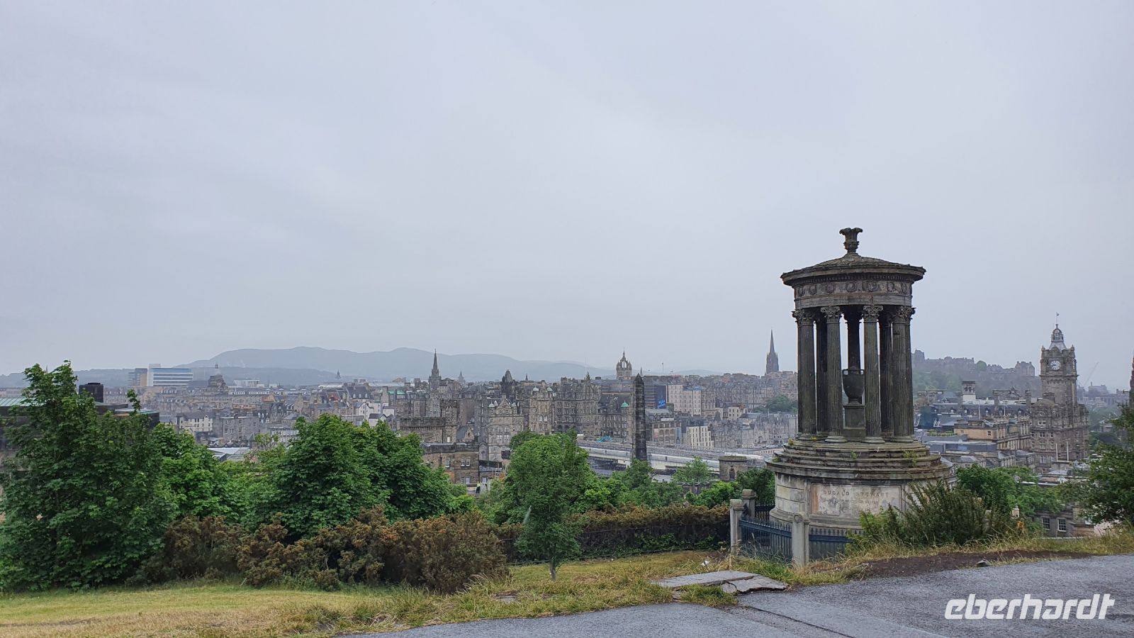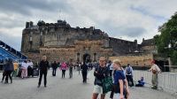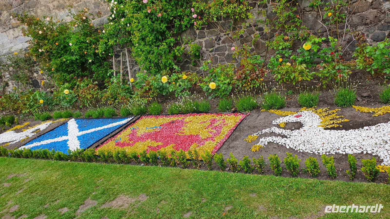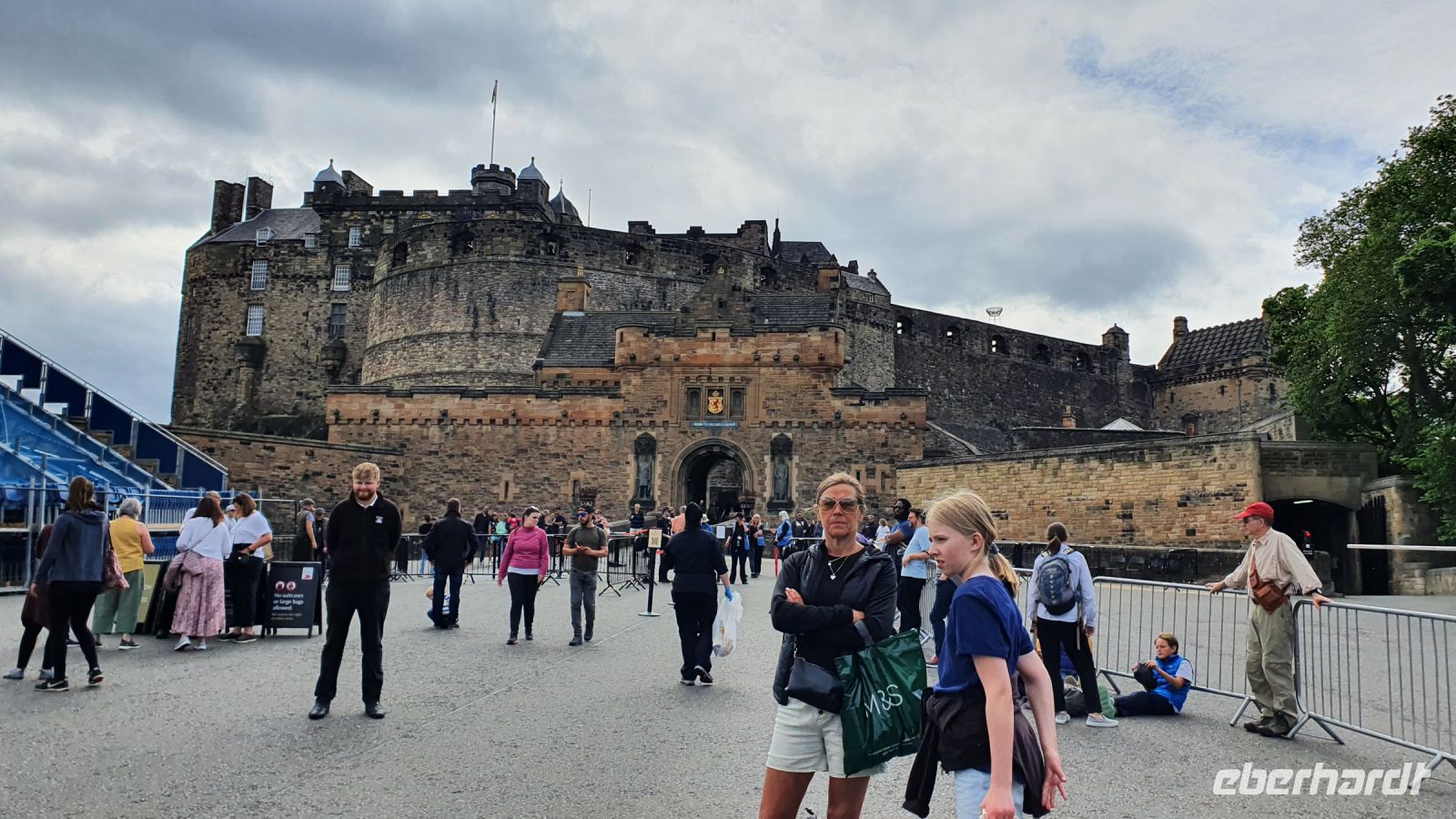 Der Tag heute gehört Edinburgh. Wir treffen uns im Hotel mit Mike, unserem Guide. Jan fährt uns zum Calton Hill und hier steigen wir aus, um die Ausblicke auf die Stadt zu genießen. Leider regnet es und es wird im Lauf des Vormittages nicht besser. Wir sind froh, vieles von der Stadt vom Bus aus zu sehen, Charlotte Square mit dem Büro der schottischen ersten Ministerin oder auch Holyrood Palace, der Sitz der englischen Königin, wenn sie hier zu Besuch ist. Wir passieren die alte Stadtmauer- "Lands end" sind passende Namen- manche konnten sich die Zollzahlungen nicht leisten und haben die Stadt nie verlassen....Am National-Museum dann unser nächster Stopp, von hier aus gehen wir zu Fuss, bei Greyfriars Bobby vorbei, über die Royal Mile schließlich zur Burg. Ich war zwischenzeitlich zur Burg gegangen und habe die Tickets für die Gruppe organisiert, so konnten wir mit Mike einen Überblick über die Ausstellungen der Burg erlangen und dann hieß es: individuell erkunden. Wir verabschiedeten uns von Mike und jeder konnte den Tag verbringen, wie er / sie gern mochte. Ein Shuttle - Service von Jan um 13:00 und 17:00 Uhr sorgte dafür, dass alle, die wollten, rechtzeitig das Hotel erreichten. Ein Spaziergang zu der Meadows brachte uns dann zu unserem Pub für heute: dem Golf Tavern. Dass man einer deutschen Gruppe nicht wirklich Würstchen auf Kartoffelbrei anbieten sollte mußten wir leider erfahren, da konnte auch der Käse im Blätterteig als Starter und das Cranachan als Dessert nichts mehr retten. Um so erholsamer der gemeinsame Spaziergang am Kanal entlang zurück zum Hotel.