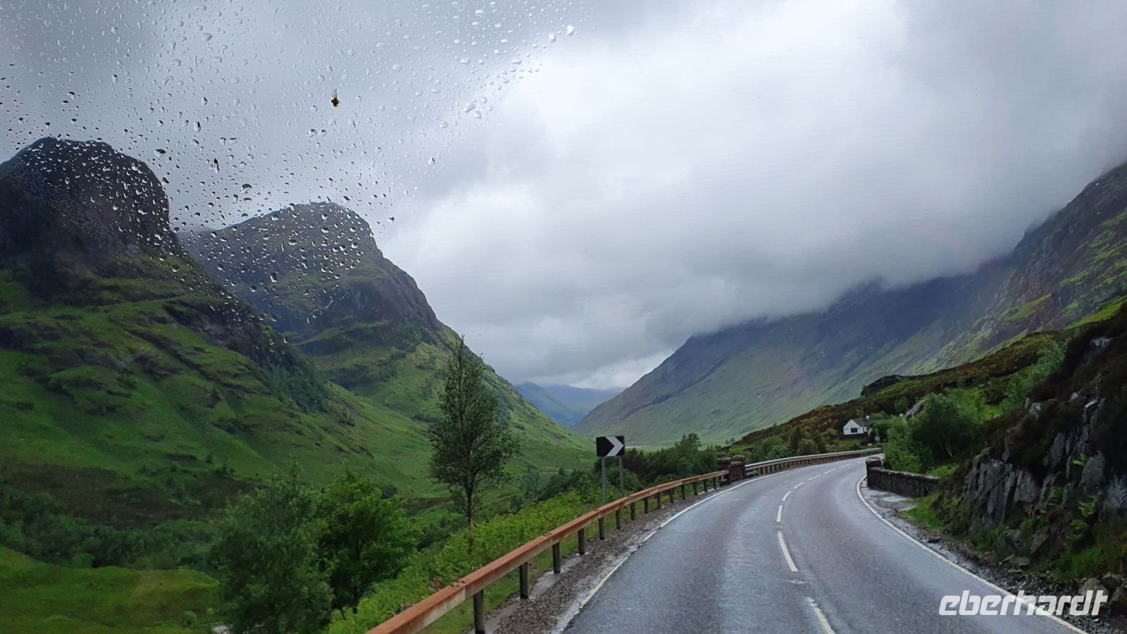 Heute verabschieden wir uns von Glasgow. Unser erster Besuch gilt Stirling Castle- der "Schicksalsburg im Herzen Schottlands". Auf ihrem Felsen scheint sie uneinnehmbar, bewacht das Land und den Fluss Forth. Umkämpft war sie- mehr als 100 Schlachtfelder ringsherum zeugen davon. Und doch wechselte sie erstaunlich oft den Besitzer. Und immer ging es um die Unabhängigkeit Schottlands, Namen wie Bravehart, Robert the Bruce tauchen auf. Sein Denkmal steht am Eingang der Burg. Gemeinsam schauen wir uns die Kapelle, den Festsaal und die königlichen Gemächer an. Wer wollte stattete auch der Küche einen Besuch ab, liebevoll ausgerüstet mit allem, was zu einer Versorgung eines Hofstaates nötig war. Weiter ging unsere Fahrt gen Norden. Durch das Rannoch Moor und das "Tal der Tränen"- Glen Coe. Ich erzähle im Bus die Geschichte dazu, ein Fotostopp am Viewpoint darf nicht fehlen und im Besucherzentrum können wir uns selber ein Bild machen. Dann "fliegt" Jan nach Fort William- hier wartet Gordon auf uns- er zeigt uns in der Ben Nevis Distillery, wie Whisky hergestellt wird. Uisge Beatha- das Wasser des Lebens. Natürlich darf auch eine Verkostung nicht fehlen, sie krönt unseren Besuch hier. Der Nachmittag ist noch jung- also entschließen wir uns zu einem zusätzlichen Stopp: an den Neptune´s Staircases- der größten Schleusentreppe des Kaledonischen Kanals. Und unser Timing ist perfekt- just jetzt kommt der Jacobite Train über die Brücke hier gefahren. Wir können noch Schleusenvorgängen zusehen, viele Freizeitkapitäne sind unterwegs und nutzen den Kanal. Zurück in Fort William genießen wir die Freizeit bei einem Bummel durch die Stadt. Unsere Fahrt bringt uns dann zum "Balavil" in Newtonmore. Hier werden wir die nächsten 2 Tage übernachten. Live-Musik zum Abend stimmt uns auf die Highlands ein und wer wollte genoss den Abend an der Bar.