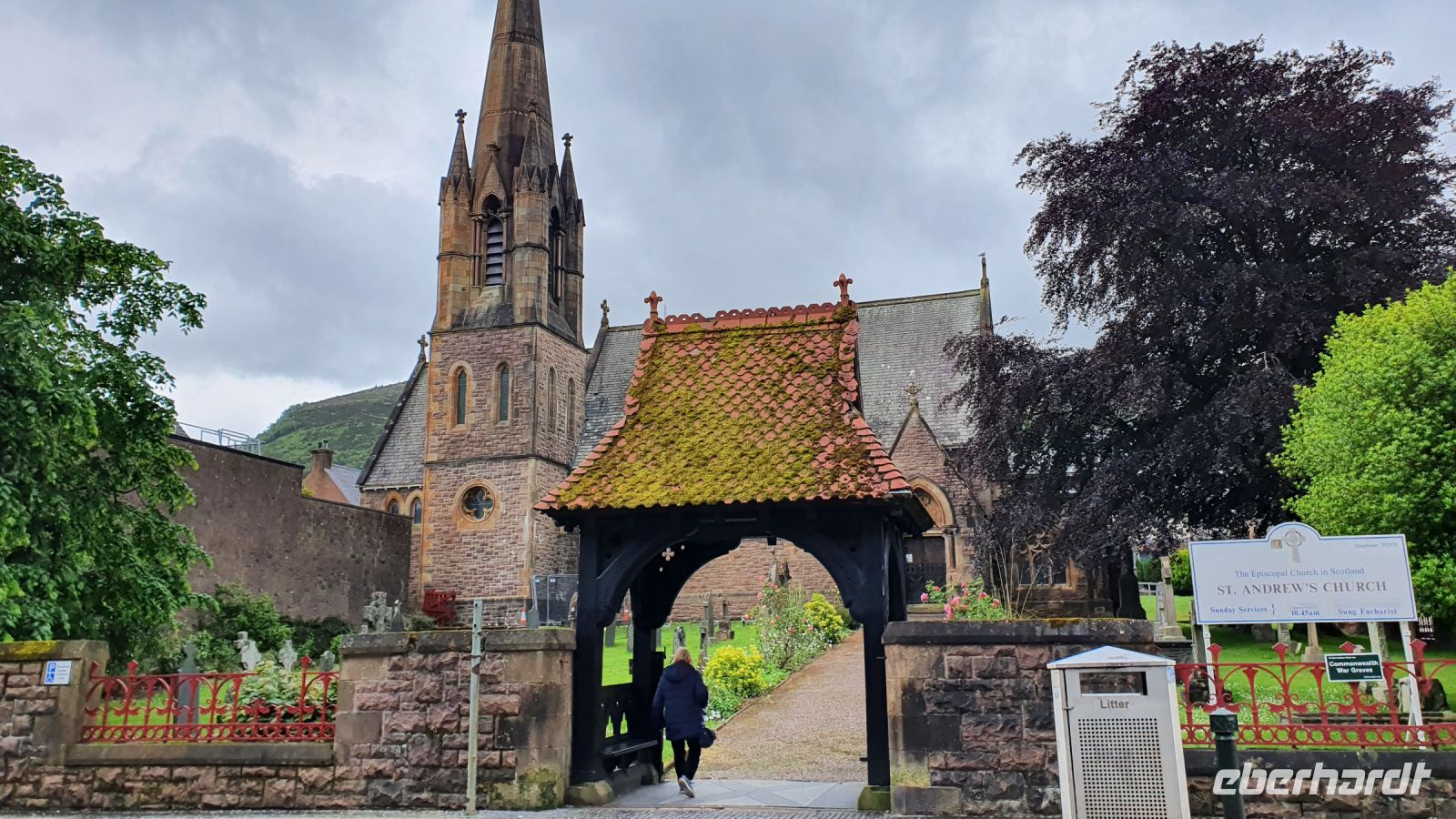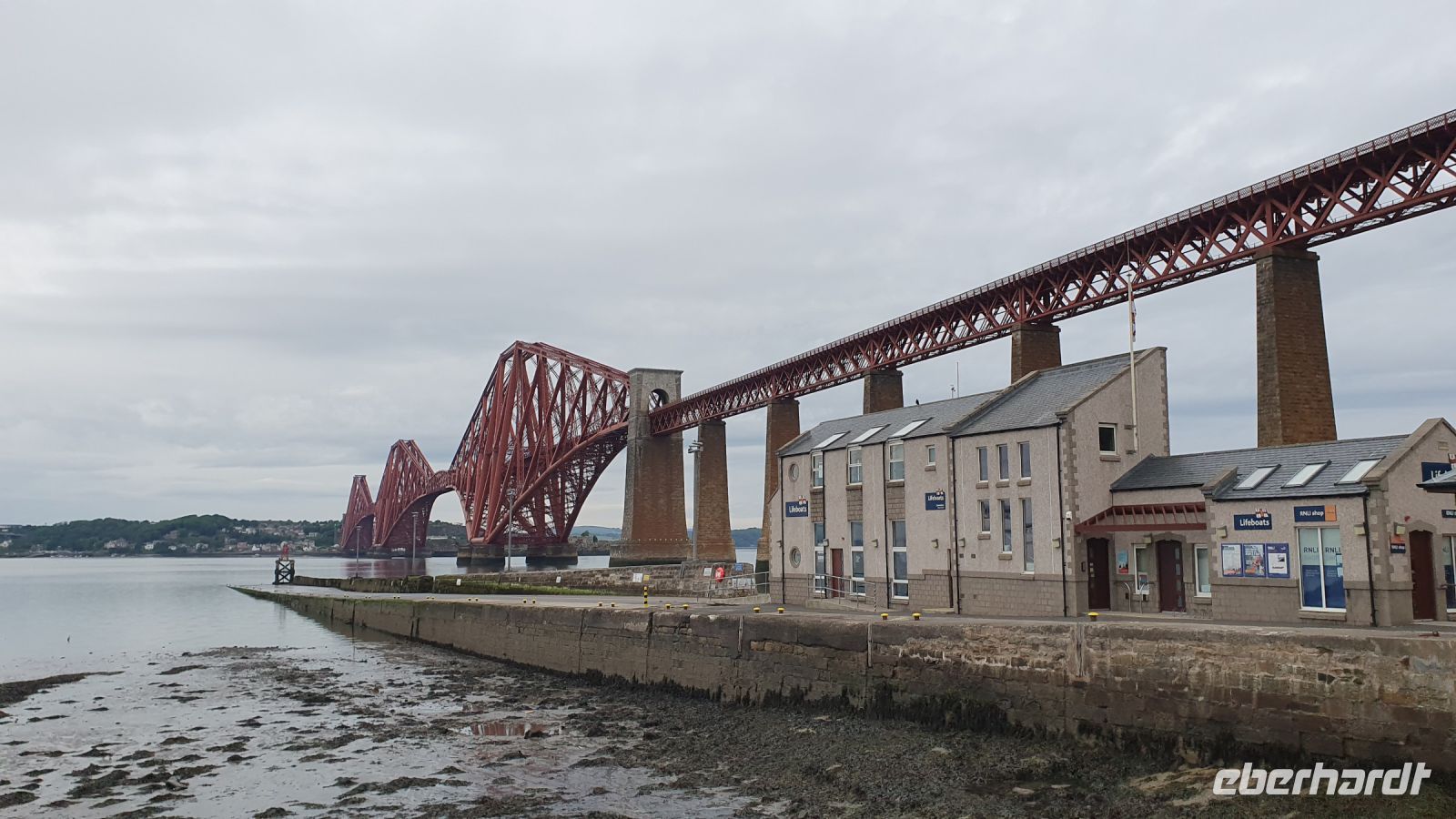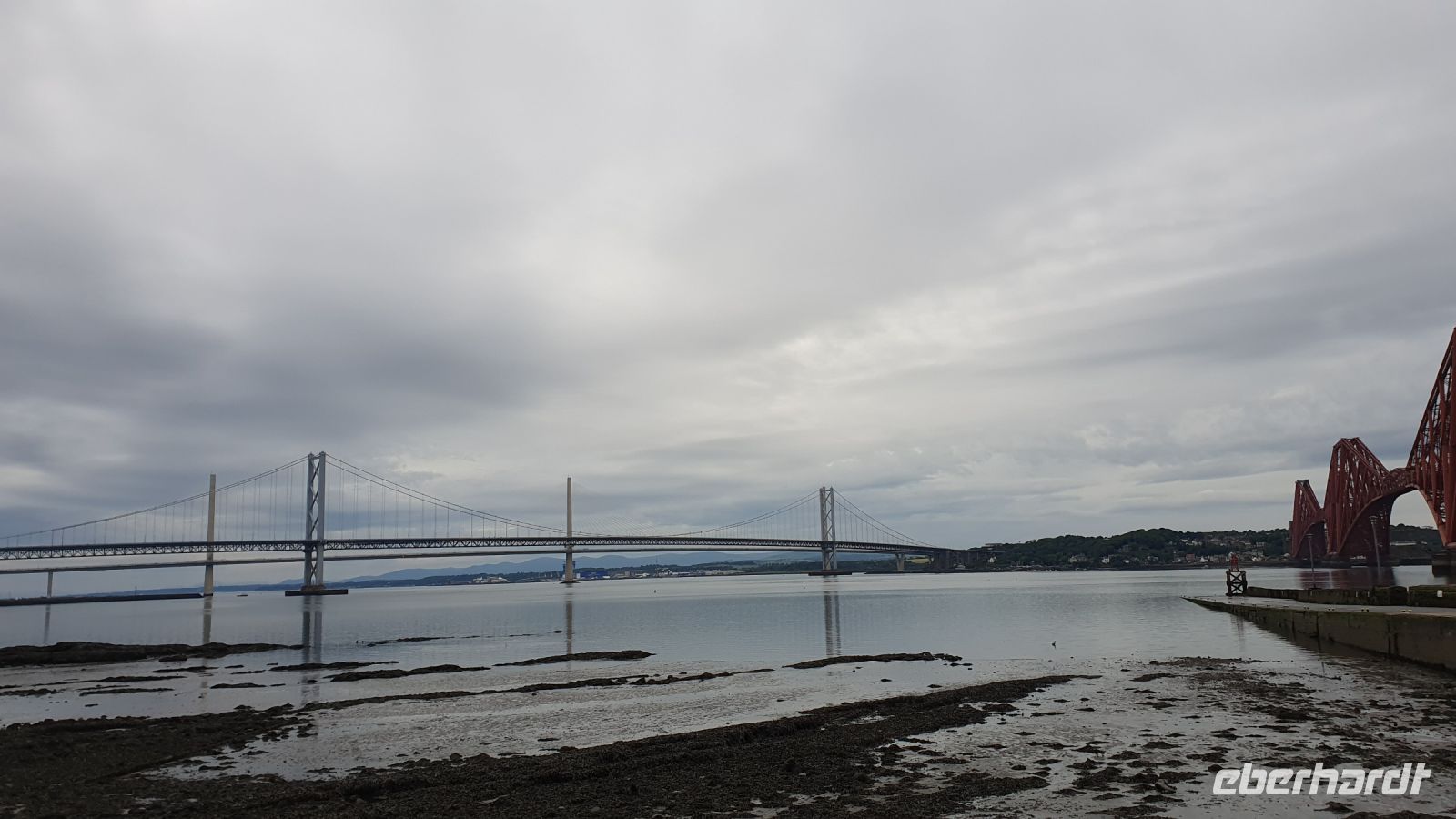 Heute verabschieden wir uns von den Highlands. Fahren durch die Grampion Mountains nach Pitlochry. So ein schöner Ort. Wir genießen die Freizeit hier und fahren dann weiter Richtung Süden. In Dunkeld wollten wir eigentlich die Kathedrale besuchen- allein- sie war gesperrt. Also trafen wir uns auf dem Marktplatz und Jan hatte unser Überraschungs- Picknick am Ufer des Tay vorbereitet. 3 verschiedene Whiskys, Gebäck und frische Erdbeeren mundeten und so manch einer entdeckte, wie gut Whisky schmecken kann. Durch den Ort ging es zurück zum Bus und Jan brachte uns dann zum Aussichtpunkt auf die Forth Bridges. Der "rote Drachen"- die Eisenbahnbrücke, die Forth Road Bridge- heute für den Verkehr gesperrt- und die neue Queensferry Crossing bilden ein eindrucksvolles Ensemble. Leider von der Queensferry-Bridge aus schwierig zu fotografieren. Also stoppen wir am Aussichtpunkt "The three Bridges" und haben ein tolles Fotomotiv. Edinburgh empfängt uns ohne Stau und so haben wir Zeit, unterhalb des Castles zu parken und einen ersten Spaziergang via Victoria-Street- George IV. Bridge und Royal Mile zu unternehmen. Unser Hotel- das Hampsted by Hilton liegt im Westend, das Einchecken ist problemlos, und nach einer kurzen Pause geht es mit dem Bus zu unserem Pub- dem Amber Rose. Hier erwartet uns zum Abendessen das traditionelle Fish&Chips mit einem mächtigen Schokokuchen zum Abschluss. Jan und ich sind uns einig- das war es heute noch nicht, also fahren wir hinunter nach Queensferry und haben einen tollen Blick auf die 3 Brücken im Abendlicht. Dann geht es aber zurück ins Hotel und wir verabschieden uns- bis morgen.