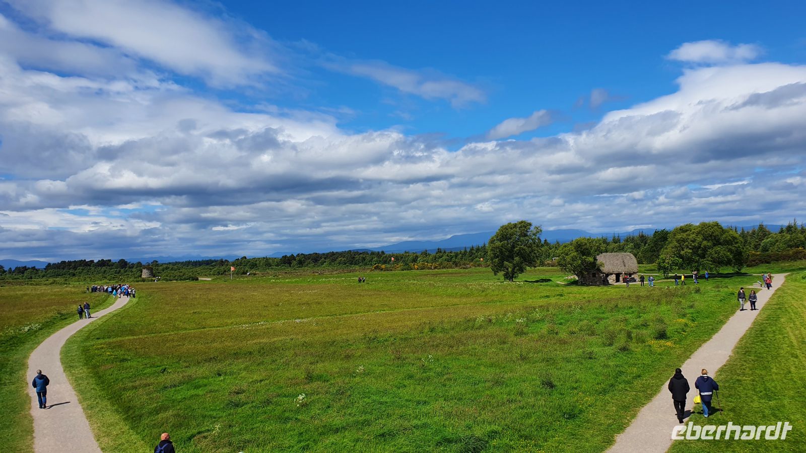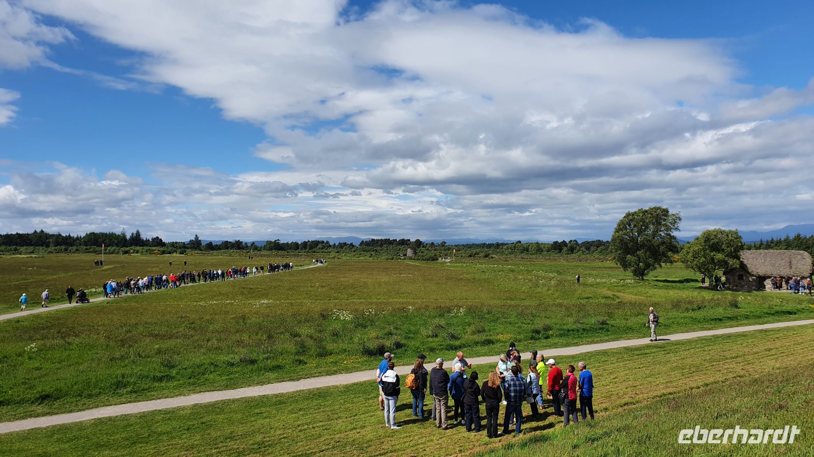 Zeitig starten wir heute morgen, unser Ziel ist Fort George am Moray Firth. "Niemals sollt ihr euch erheben" - der Bau des Forts war die Antwort der Engländer auf die Niederschlagung der Jacobiter-Aufstände 1746. Von hier aus wurde alles unterdrückt was schottische Identität ausmachte, das Clanwesen wurde zerschlagen, Besitztümer enteignet, Dudelsack und Kilt verboten. Noch heute wird das Fort militärisch genutzt, kann aber besucht werden. Und so schauen wir uns um, besuchen die kleine Kapelle oder den Aussichtspunkt für die Beobachtung von Delfinen. Und schon sind wir wieder unterwegs- im nahen Besucherzentrum vom Culloden Battlefield machen wir unsere Mittagspause und können vom Dach des Besucherzentrums aus Fotos vom alten Schlachtgebiet machen. Manche aber zieht es magisch zum Fraser-Stone aus der Outlander-Serie. Überglücklich präsentieren sie ihre Beweisfotos. Nun ruft die heimliche Hauptstadt der Highlands- Inverness. Das Castle wird gebaut aber wir besuchen die Kathedrale und wer möchte kann einen kleinen Spaziergang am Ness-Ufer machen. Der Ness führt uns dann zum sagenumwobenen Loch Ness. Mit der Jacobite -Flotte fahren wir zum Urquhart Castle und genießen die Überfahrt auf dem fast schwarzen Wasser des Loch Ness. Die Ruinen des Castles laden ein, den Wohnturm zu besteigen oder auch zu einem Spaziergang- wir treffen uns am Kino im Besucherzentrum und verfolgen gespannt die 1000-jährige Geschichte der Burg. Jan wartet mit dem Bus auf uns und in Invermoriston halten wir, um uns die Brücke von Thomas Telford über den Moriston anzuschauen. Sie wurde saniert und erlaubt heute wieder die Überquerung des Flusses, der sich hier in Stromschnellen zum Loch Ness hinbewegt. Am Südufer des Loch Ness erreichen wir Fort Augustus. Auch hier hilft eine Schleusentreppe, den Höhenunterschied zu überwinden. Wer möchte wirft mit mir einen kurzen Blick in das Clansmenhouse- einer Nachbildung, wie die Clans hier früher gelebt haben. Am Loch Oich und Loch Lochy entlang führt unser Weg, bevor wir via Spean Bridge und Loch Laggan wieder Newtonmore erreichen. Heute habe ich zum Abendessen für alle als Vorspeise die schottische Nationalspeise "Haggis" bestellt und bis auf drei Ausnahmen (von 41) probieren alle tapfer- und sind überrascht- so lecker! In der Bar lockt dann wieder Live- Musik, andere spazieren noch durch den Ort und so klingt auch dieser Abend aus.