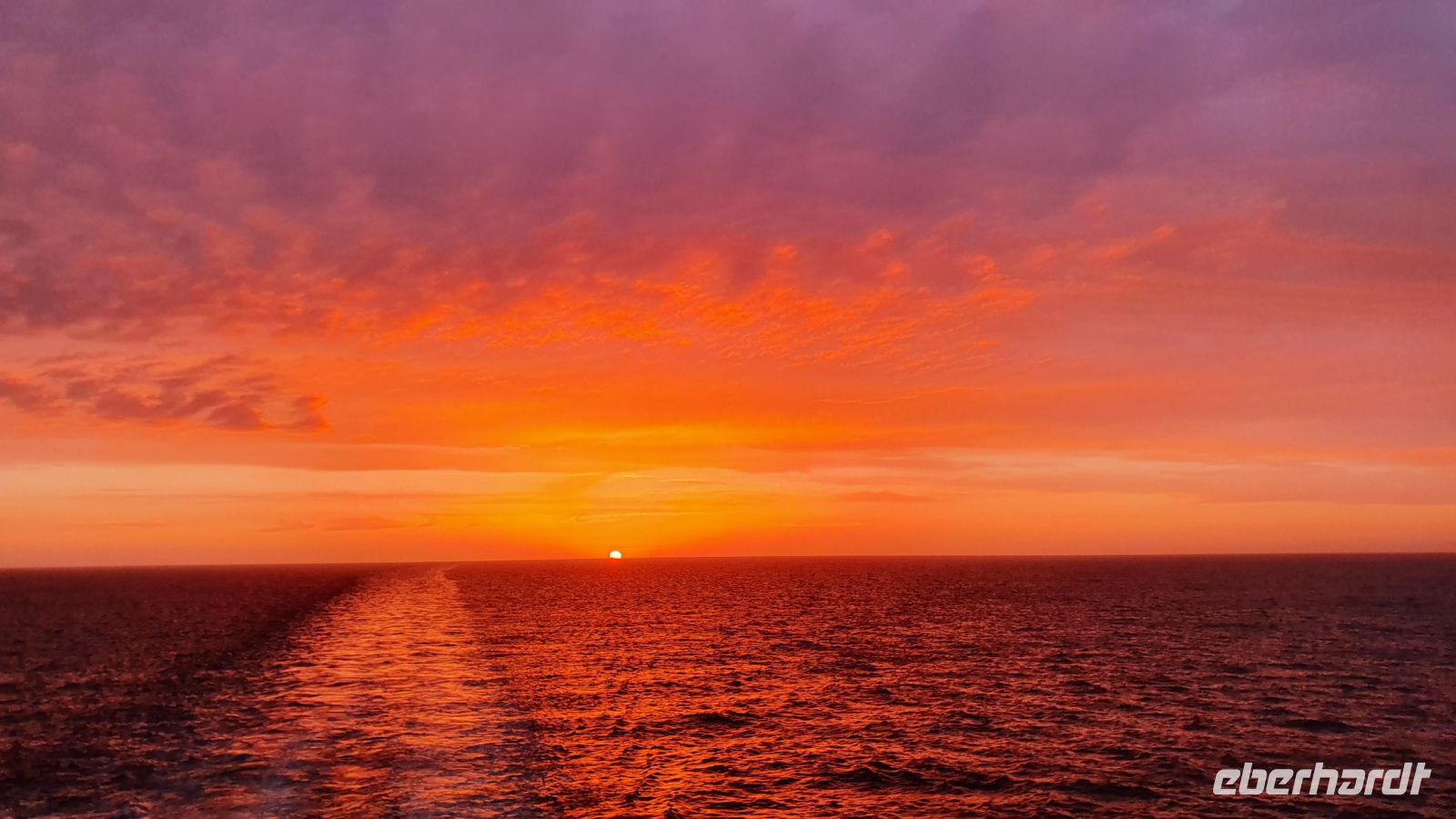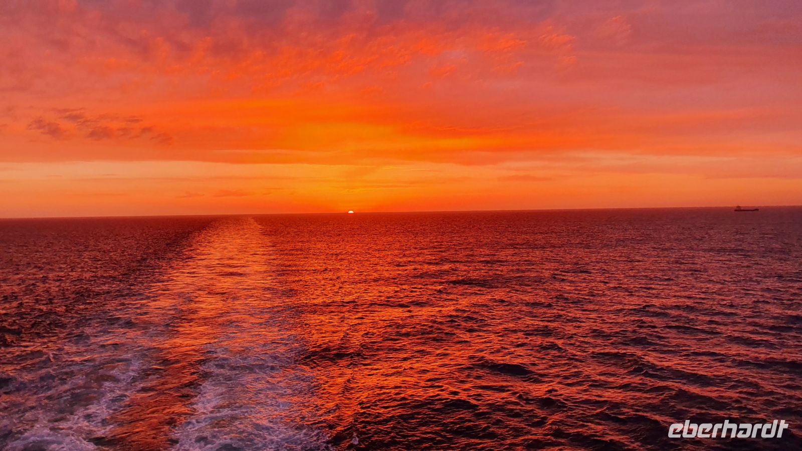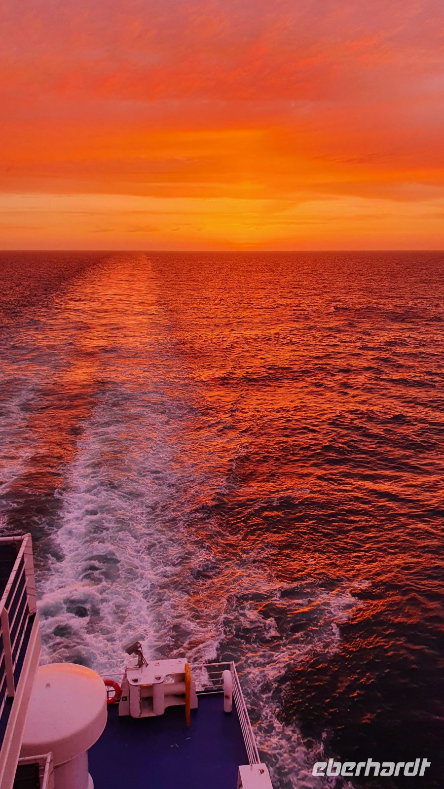 Die KLM sorgt für Turbulenzen, abgesagte Flüge zwingen zur Improvisation. Aber Eberhardt Travel organisiert alle Flüge um und so finden sich einige Gäste auf der Fähre wieder , andere fliegen via Paris zurück nach Hause. Für unsere Bus-Gäste geht die Fahrt gen Süden weiter. Ein letzter Fotostopp am Castle und wir verabschieden uns von Schottlands Hauptstadt. Selbstverständlich darf ein Stopp am Leaderfoot Viaduct nicht fehlen bevor wir Melrose Abbey erreichen. Dieser zusätzliche Stopp ermöglicht uns, das Zisterzienser-Kloster zu erleben- auch wenn die Abbey gesperrt ist. Immerhin ist hier das Herz von Robert the Bruce begegraben. Melrose selber war schon einmal schönster Ort im Wettbewerb "Scotland in Blooms" und das konnte man auch erleben. Weiter ging es zur nächsten Grenzland-Abbey, die immer heiß umkämpft war: Jedburgh Abbey. Immer wieder war dieses Kloster in den Borders, den Grenzgebieten, Ziel der Kriege zwischen Engländern und Schotten. Zerstört- wieder aufgebaut- wieder zerstört- wieder aufgebaut- 1570 verließ der letzte Mönch das Kloster. Eindrucksvoll vermitteln die Ausgrabungen einen Einblick in das Leben der Mönche, wer wollte konnte das auch mit den Audio-Guides nachvollziehen. Nach einer Lunch-Pause mit Bordservice setzen wir unsere Reise gen Süden fort. An Carter Bar- der schottisch-englischen Grenze- wartete Alan auf uns. Als Piper verabschiedete er uns von Schottland und viele hielt es nicht beim Takt des Dudelsackes. Ein kleines Tänzchen und dann starten wir gen Newcastle- unsere Fähre wartet auf uns. Ich kann alle Gäste mit den Pässen einchecken und ein zeitiges Abendessen führt uns auf der Fähre wieder zusammen. War das Buffet wieder lecker! Wer durchhielt wurde mit einem sensationellen Sonnenuntergang belohnt. Soooo schön.