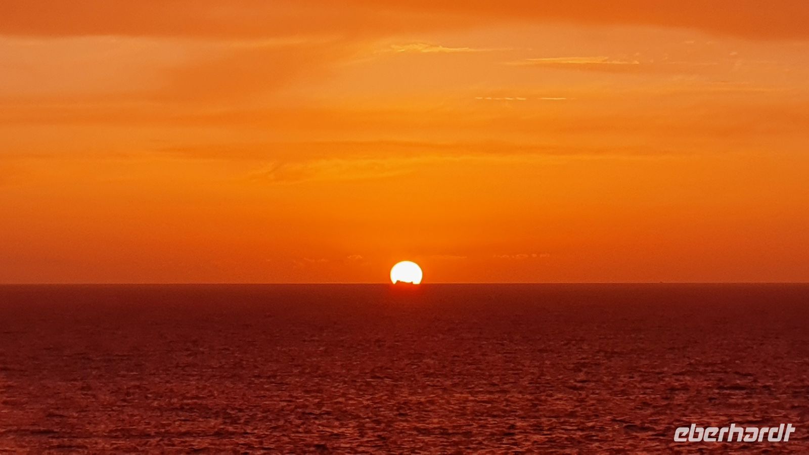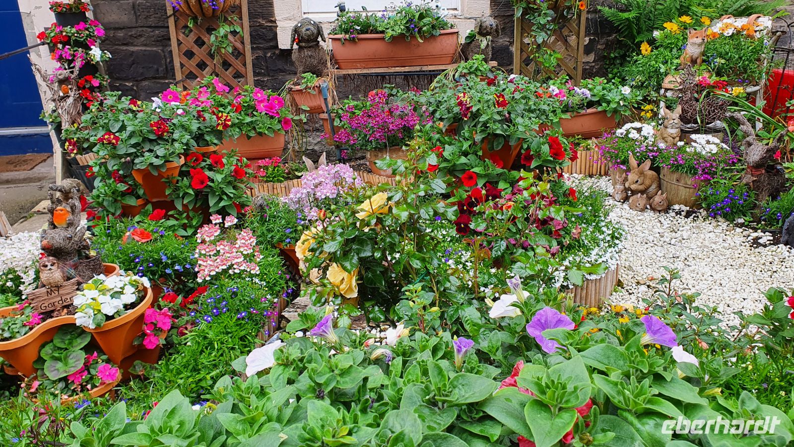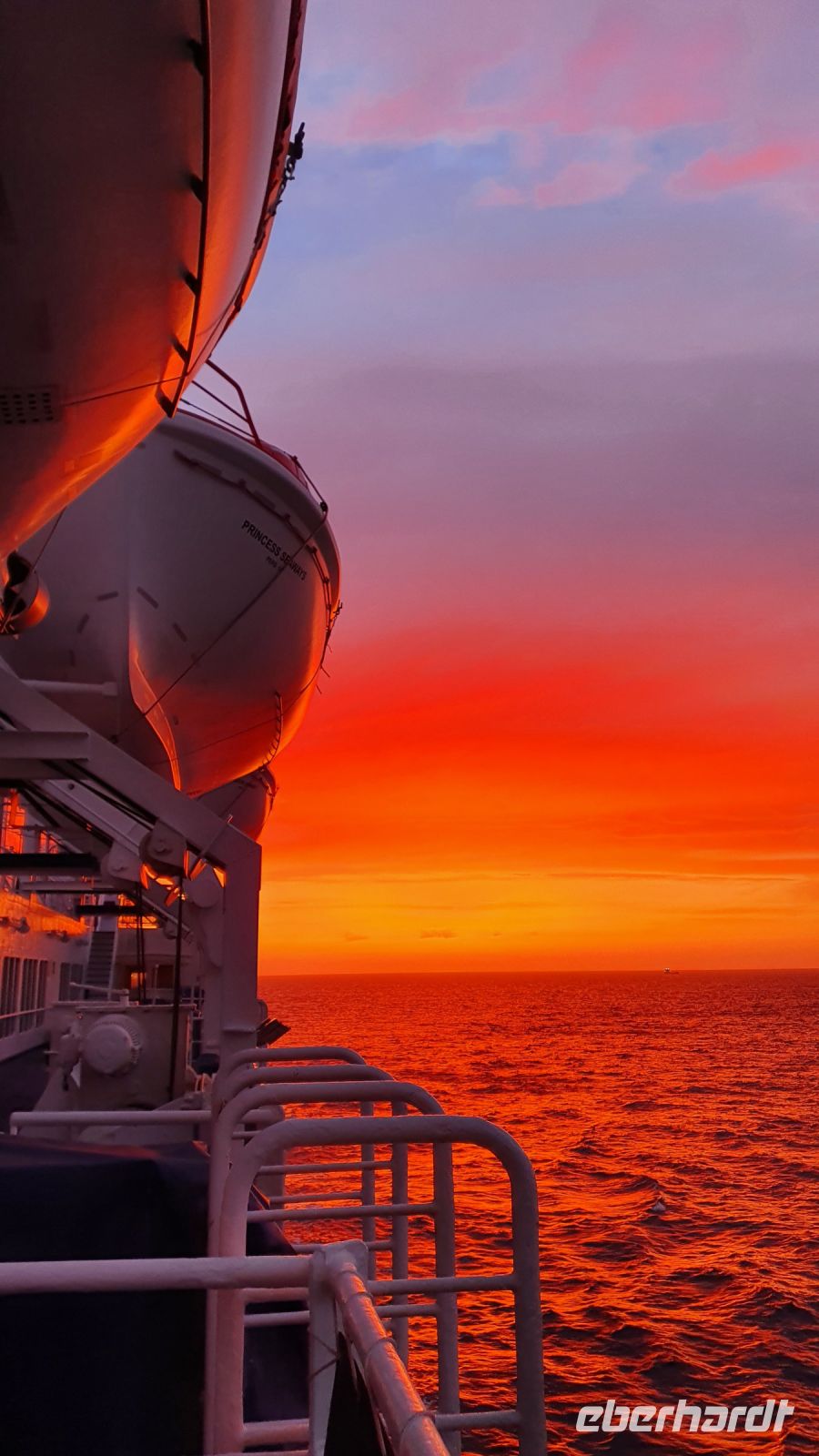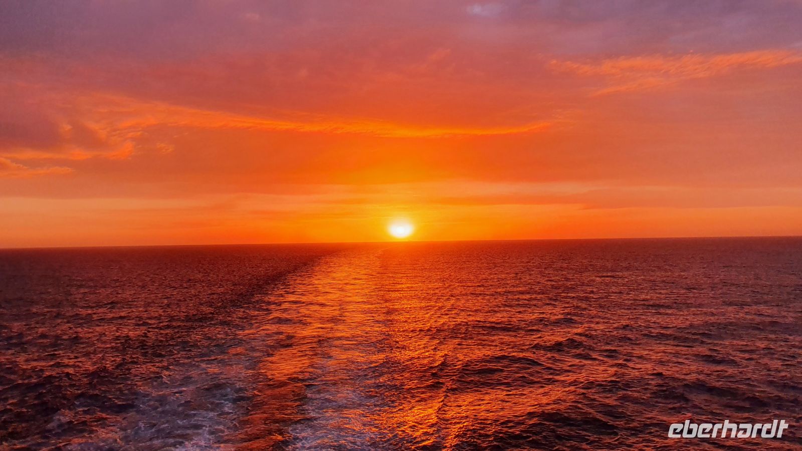 Die KLM sorgt für Turbulenzen, abgesagte Flüge zwingen zur Improvisation. Aber Eberhardt Travel organisiert alle Flüge um und so finden sich einige Gäste auf der Fähre wieder , andere fliegen via Paris zurück nach Hause. Für unsere Bus-Gäste geht die Fahrt gen Süden weiter. Ein letzter Fotostopp am Castle und wir verabschieden uns von Schottlands Hauptstadt. Selbstverständlich darf ein Stopp am Leaderfoot Viaduct nicht fehlen bevor wir Melrose Abbey erreichen. Dieser zusätzliche Stopp ermöglicht uns, das Zisterzienser-Kloster zu erleben- auch wenn die Abbey gesperrt ist. Immerhin ist hier das Herz von Robert the Bruce begegraben. Melrose selber war schon einmal schönster Ort im Wettbewerb "Scotland in Blooms" und das konnte man auch erleben. Weiter ging es zur nächsten Grenzland-Abbey, die immer heiß umkämpft war: Jedburgh Abbey. Immer wieder war dieses Kloster in den Borders, den Grenzgebieten, Ziel der Kriege zwischen Engländern und Schotten. Zerstört- wieder aufgebaut- wieder zerstört- wieder aufgebaut- 1570 verließ der letzte Mönch das Kloster. Eindrucksvoll vermitteln die Ausgrabungen einen Einblick in das Leben der Mönche, wer wollte konnte das auch mit den Audio-Guides nachvollziehen. Nach einer Lunch-Pause mit Bordservice setzen wir unsere Reise gen Süden fort. An Carter Bar- der schottisch-englischen Grenze- wartete Alan auf uns. Als Piper verabschiedete er uns von Schottland und viele hielt es nicht beim Takt des Dudelsackes. Ein kleines Tänzchen und dann starten wir gen Newcastle- unsere Fähre wartet auf uns. Ich kann alle Gäste mit den Pässen einchecken und ein zeitiges Abendessen führt uns auf der Fähre wieder zusammen. War das Buffet wieder lecker! Wer durchhielt wurde mit einem sensationellen Sonnenuntergang belohnt. Soooo schön.