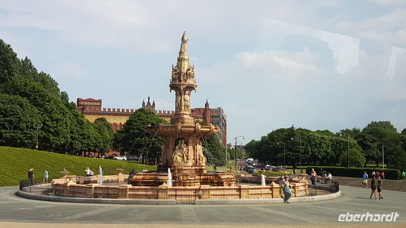 Nachdem wir die Fähre verlassen hatten, begann unsere Reise durch England in Richtung Norden, durch grüne hügelige Landschaften mit grünen Weiden und vielen hübschen Trockenmauern. Bald überquerten wir die Grenze nach Schottland und fuhren nach Gretna Green, der "Heiratsschmiede über dem Amboss". Früher gaben sich dort Minderjährige das Ja-Wort, weil das in Schottland möglich war, ohne die Erlaubnis der Eltern einzuholen. Junge Leute kamen aus England, kurz hinter der schottischen Grenze heirateten sie dann. Diese Tradition wird auch heute gern fortgeführt. Am Nachmittag erreichten wir Glasgow, wo uns Lisa schon in der Nähe der Kathedrale erwartete, die dem Heiligen Mungo gewidmet ist. Bei einer sehr interessanten und unterhaltsamen Stadtrundfahrt zeigte uns Lisa viele Sehenswürdigkeiten von Glasgow. Danach erreichten wir unser sehr zentral gelegenes Hotel Ibis Style ganz in der Nähe zum George Square.