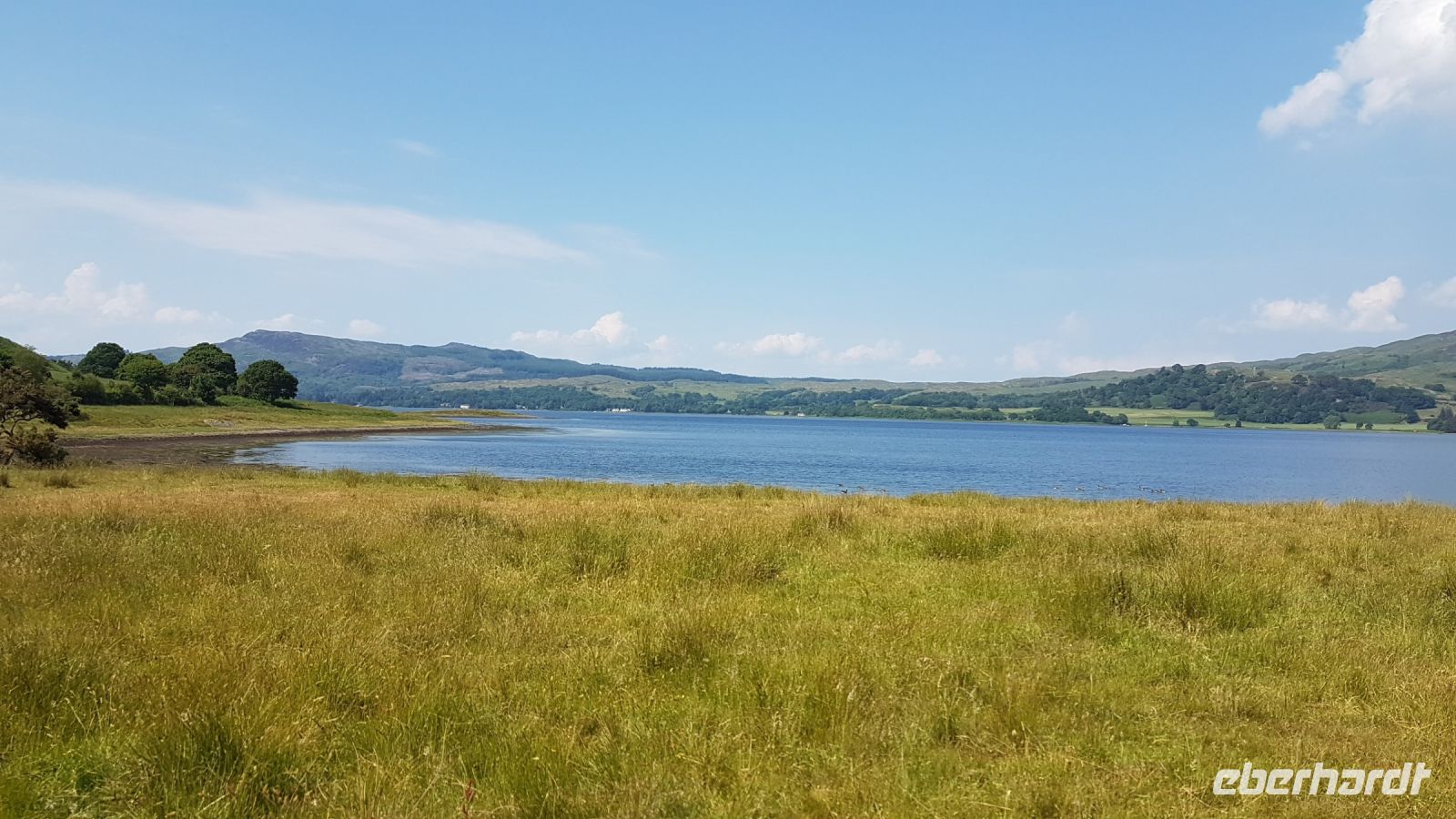 Nach kurzer Fahrt aus Glasgow heraus erreichten wir Inveruglas, einen Ort am Loch Lomond. Wir hatten Gelegenheit, den herrlichen Blick auf den See zu genießen. Ein Aussichtspunkt gestattete uns eine gute Sicht in die Landschaft. Es gibt ein wunderbares Lied über Loch Lomond und seine schönen Ufer, dieses Lied hörten wir im Bus, während wir am See entlang fuhren. Unser nächstes Ziel an diesem Tag war das Fischer-Städtchen Oban. Unser Besuch begann mit der Besichtigung der Oban Distillery, einer der kleinsten Whisky-Brennereien Schottlands, eine traditionell arbeitende Brennerei. Ein Gästeführer zeigte uns den Betrieb, erklärte die Herstellung des typischen hochprozentigen Getränks, das "Lebenswasser" Schottlands. Unterschiedliche Whiskys konnten verkostet werden. Am Ende des Rundgangs gab es Gelegenheit, Hochprozentiges im Shop der Brennerei zu erstehen. Danach hatten wir Freizeit in Oban. Hoch über der Stadt thront ein nicht vollendeter Nachbau des Römischen Kolosseums, dass ein reicher Bankier der Stadt dereinst als Arbeitsbeschaffungsmaßnahme errichten ließ, und als Denkmal für seine Familie. Im Hafen kann man wunderbar Seafood essen, also Muscheln, Krabben, Fisch und andere Meerestiere, alles ist fangfrisch. Wir schlenderten durch die Straßen und ließen uns eine Brise vom Meer um die Nase wehen.