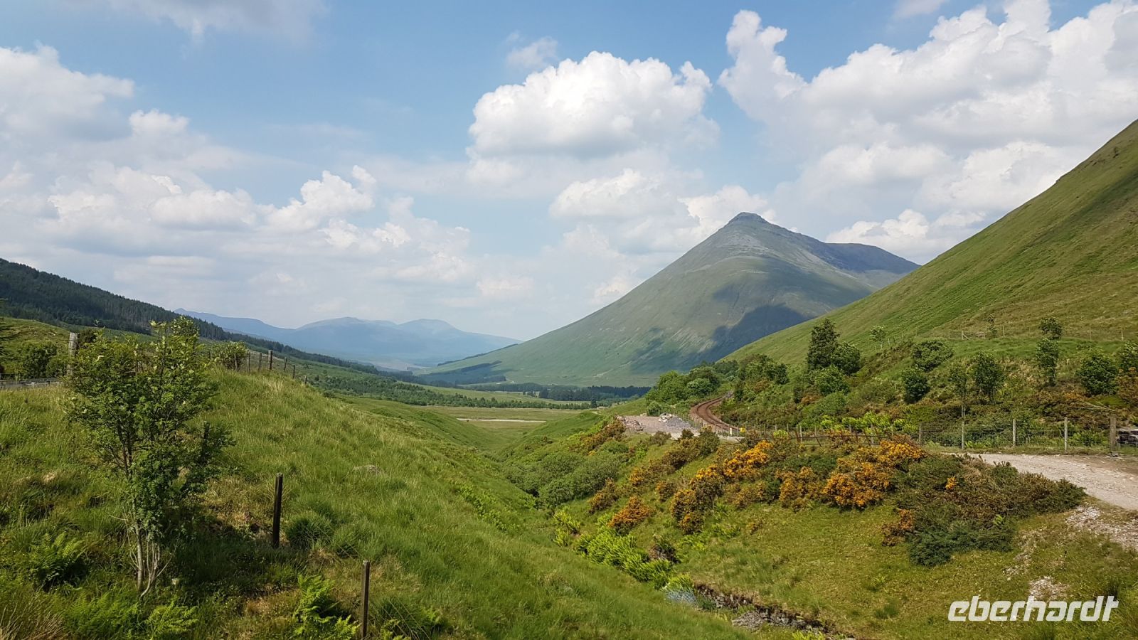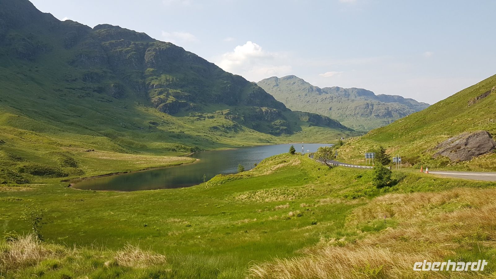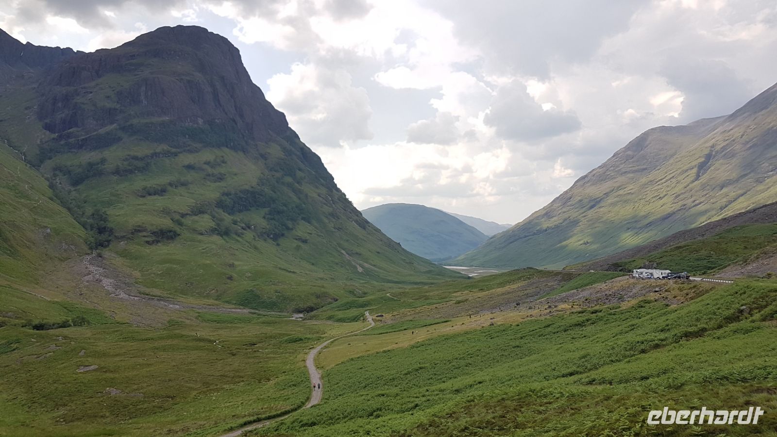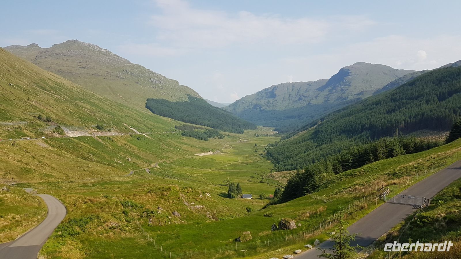 Am Gedenkstein "Rest and be thankful" legten wir eine kurze Pause ein, um den Blick hinab ins Tal zu genießen.