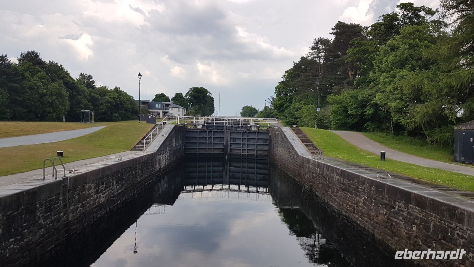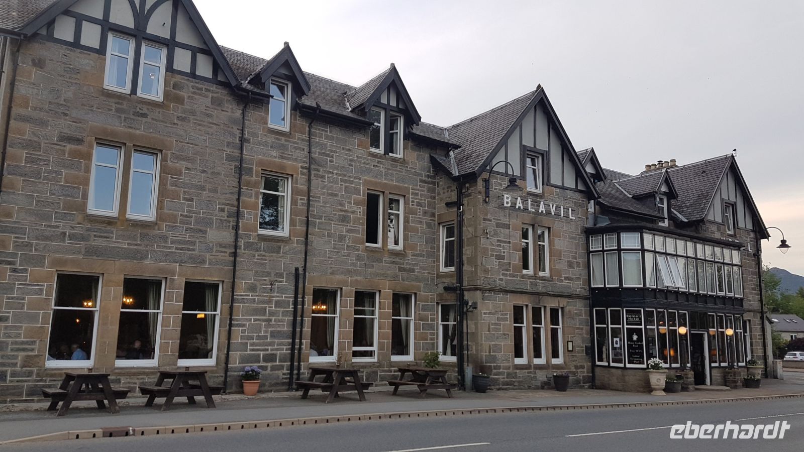 Recht bald erreichten wir Glencoe, das als Tal der Tränen in die Geschichte eingegangen ist, beruhend auf einem schrecklichen Massaker an den MacDonalds. Darüber gibt es ein bewegendes Lied, das hörten wir im Bus an, während wir durch dieses herrliche Gletschertal fuhren. Im Anschluss daran besuchten wir das Glen Coe Visitor Centre, in dem man viel über den Clan der MacDonalds und die Entstehung des Gletscher-Tals des Flusses Coe erfahren kann. In Fort William besuchten wir die Schleusentreppen des Kaledonischen Kanals – Neptunes Staircase. Leider ging gerade ein Wolkenbruch herunter, was unseren Besuch verkürzte. Wegen einer Straßensperre mussten wir einen langen Umweg fahren. Am Abend erreichten wir unser Hotel Balavil in Newtonmore, das einem alten Herrenhaus gleicht. Nach einem leckeren 3-Gänge-Abendessen verbrachten wir dort unsere erste Nacht in den schottischen Highlands.