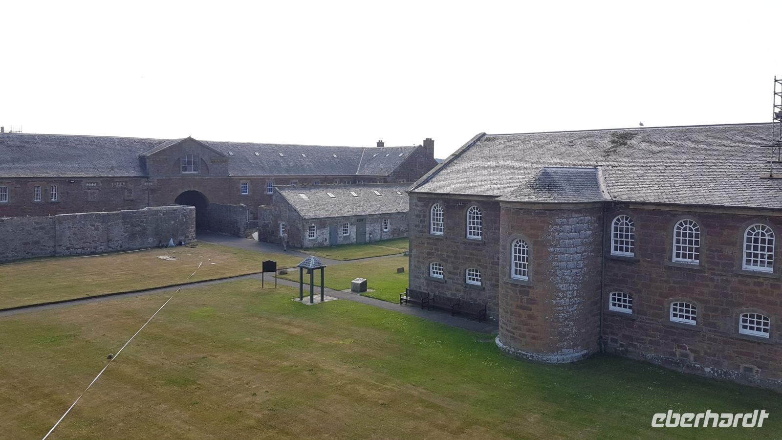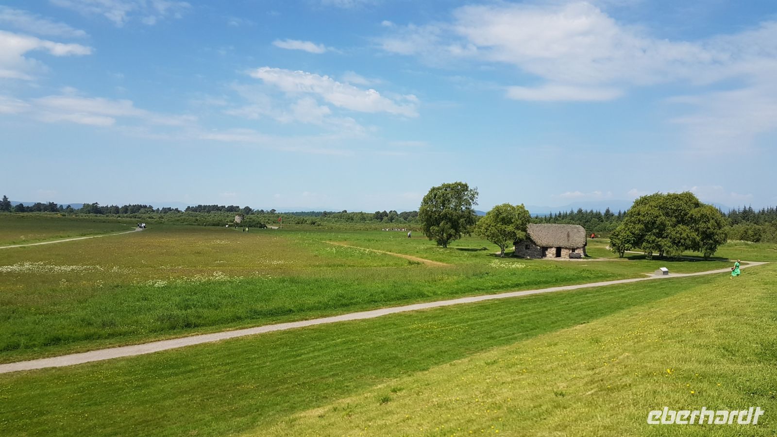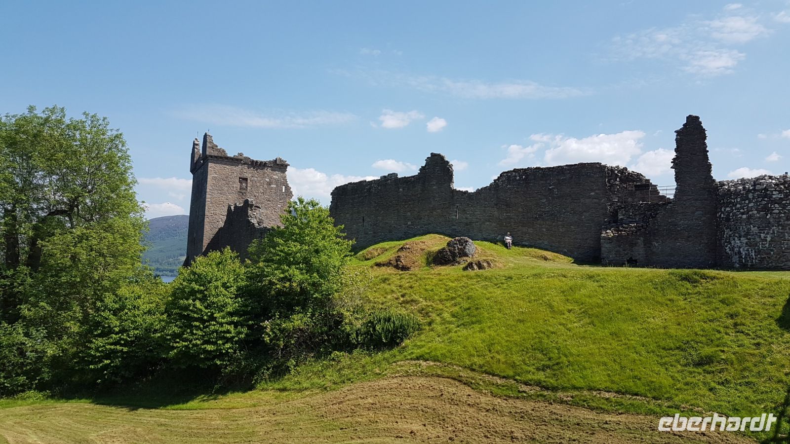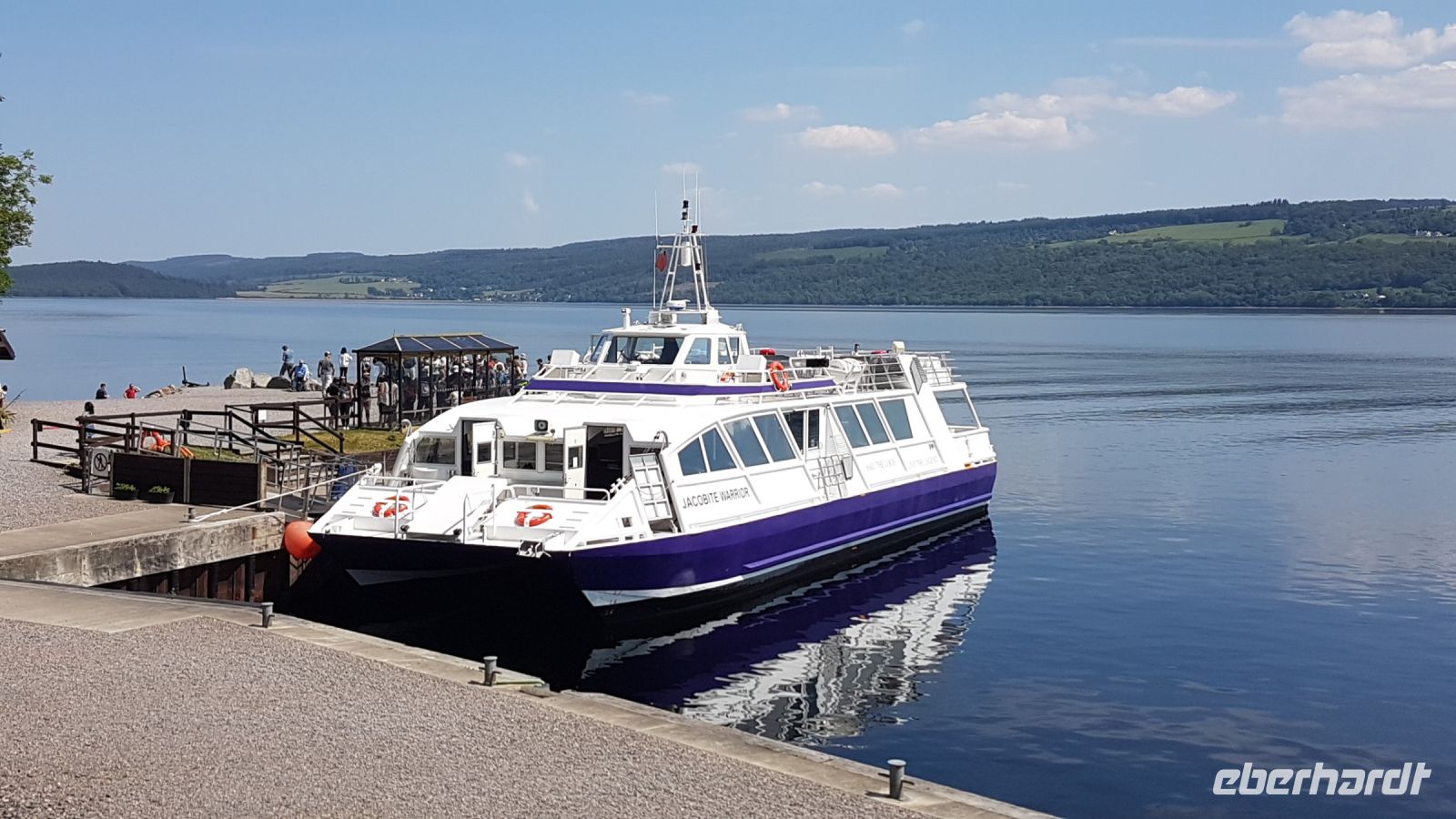 Der nächste Morgen führte uns zuerst nach Fort George, einer Militärfestung auf einer Landzunge am Moray Firth. Wir lernten einiges über das Leben der Soldaten dort, früher und heute. Man konnte sogar von den Festungsmauern aus Delphine im Wasser beobachten im Moray Firth. Nach dem Aufenthalt inFort George erreichten wir bald Culloden Battlefield, wo die schottischen Clans unter Bonnie Prince Charlie im Jahre 1746 eine verheerende Niederlage gegen die Engländer erlitten hatten. Wir sahen einen Teil des Schlachtfelds. Durch Inverness führte uns nun unser Weg in Richtung Loch Ness, dem See des berühmten Monsters Nessie. Am Clansman Hotel am Westufer des Sees bestiegen wir ein Schiff der "Jacobite Cruises" und fuhren eine halbe Stunde über den See bei heißem Sommerwetter. Trotz genauester Beobachtung der Wasseroberfläche hatte wohl niemand aus unserer Gruppe das Glück, Nessie tatsächlich zu entdecken. Wir legten an am Urquhart Castle, der Ruine einer alten Festung. Zwischen den Ruinen kann man umherspazieren, von hier aus genießt man einen herrlichen Blick über Loch Ness. Im Besucherzentrum wird ein Film über die Geschichte von Urquhart Castle gezeigt.