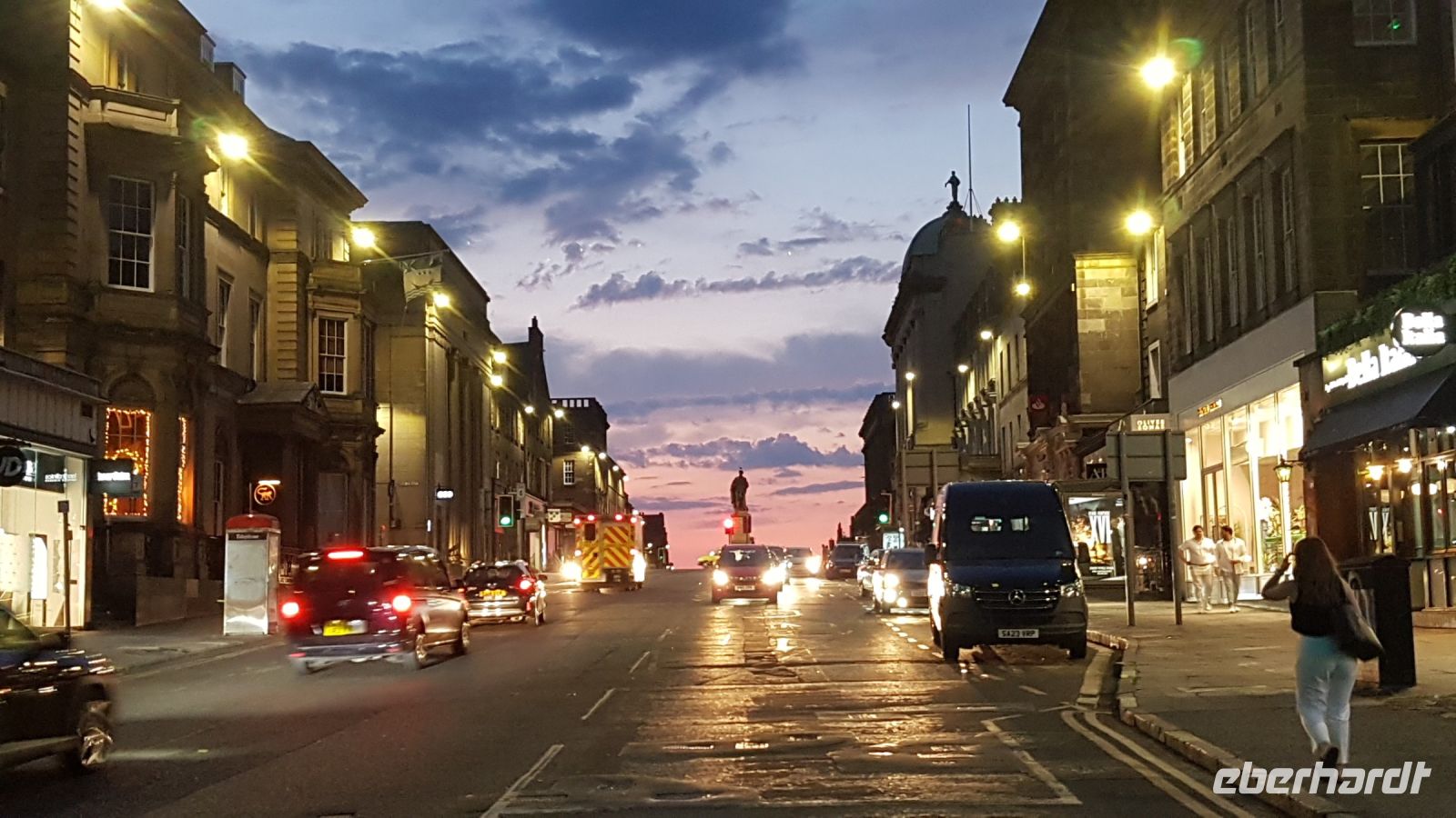 Wir verabschiedeten uns von Edinburgh und fuhren mit dem Bus in Richtung Süden, heute sollten wir Schottland schon wieder verlassen. In Jedburgh besuchten wir die zum großen Teil zerstörte Abbey, ein ehemaliges Kloster, das früher eine wichtige Rolle in der Stadt und der Gegend gespielt hat. Heute ist es ein interessanter Ort zum Verweilen, um sich das Leben der Mönche früher hier zu vorzustellen. Nach einem Besuch in der Altstadt von Jedburgh trafen wir am Bus ein, um unsere Reise in Richtung Süden und schließlich zur Fähre nach Newcastle fortzusetzen. Einmal hielten wir noch an, am Carter Bar, das ist der Grenzpunkt zwischen Schottland und England. Der Aussichtspunkt liegt auf einer Anhöhe und erlaubt einen letzten verträumten Blick zurück auf die herrliche Landschaft Schottlands, durch die wir die letzten Tage gefahren waren. Ein Dudelsackspieler, übrigens der Weltmeister im Dudelsackspielen 2011, gab uns einige Kostproben seines Könnens und wir konnten sogar seine CD erstehen, auf der er eine bunte Mischung seiner Musik präsentiert. Mit ein wenig Wehmut im Herzen bestiegen wir wieder den Bus, um schließlich am frühen Nachmittag in an der Fähre anzukommen. Wir bestiegen unser Schiff und genossen am Abend ein leckeres Essen vom reichhaltigen Buffet.