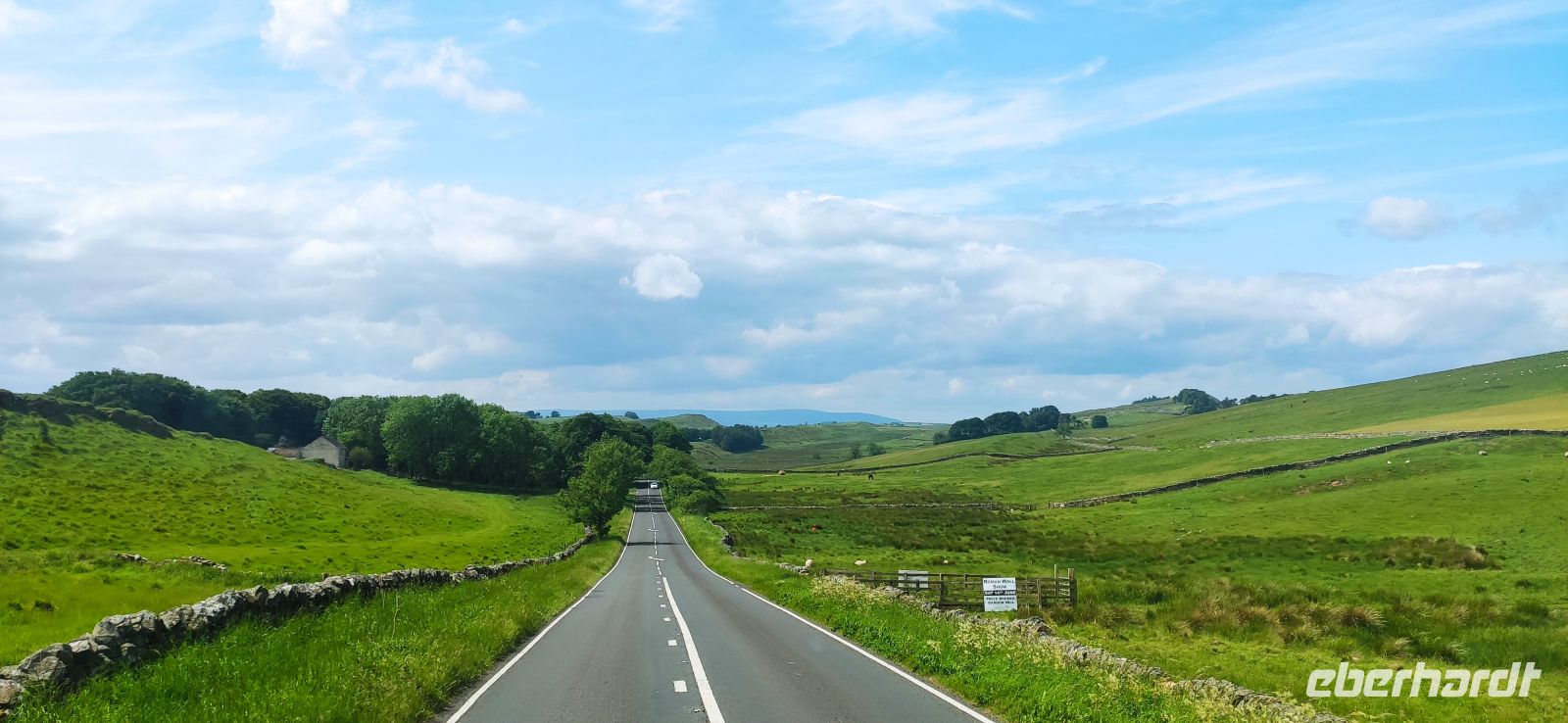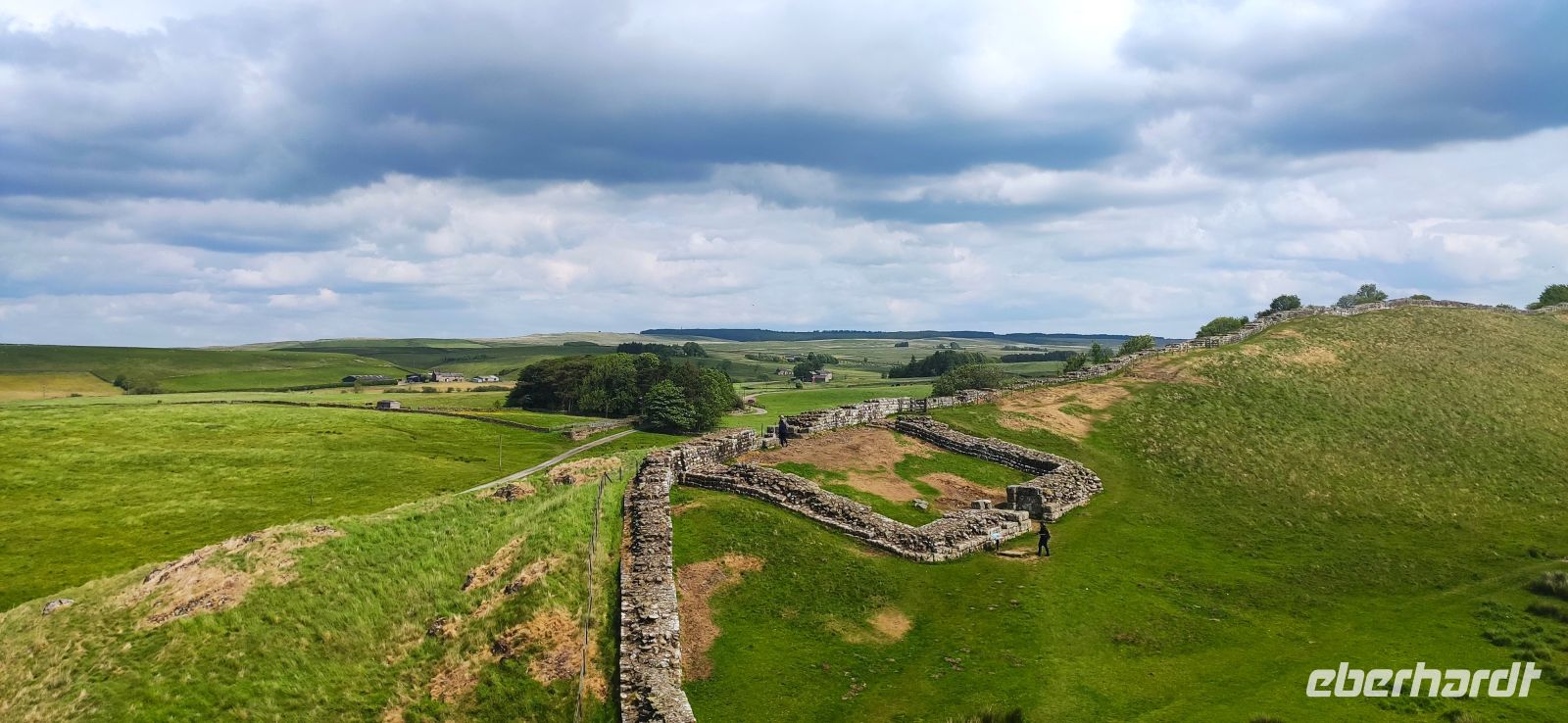 Nach der Border Control steigen wir zu David in unseren komfortablen Reisebus und fahren durch die nordenglische Grafschaft Northumberland nach Westen, immer entlang der Reste des alten römischen Hadrianswalls.