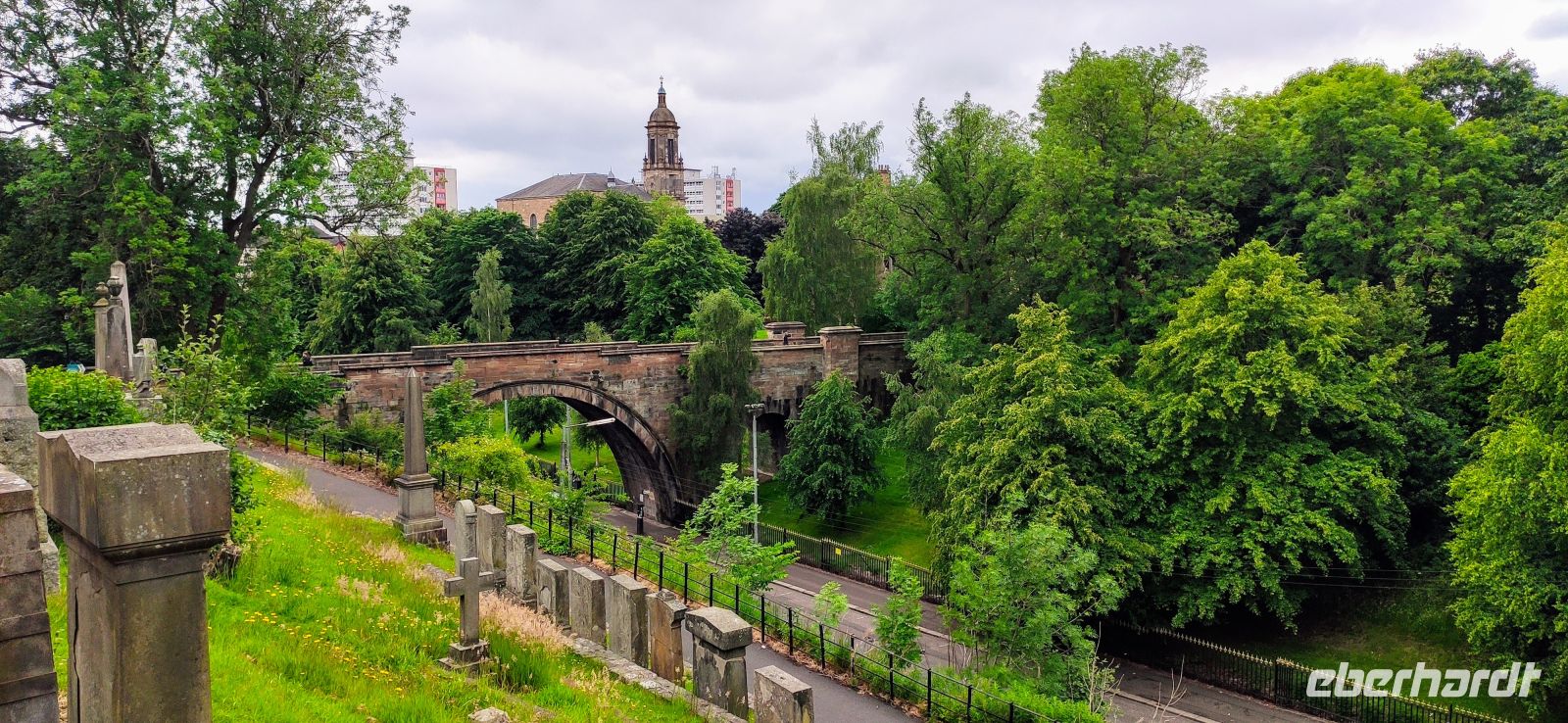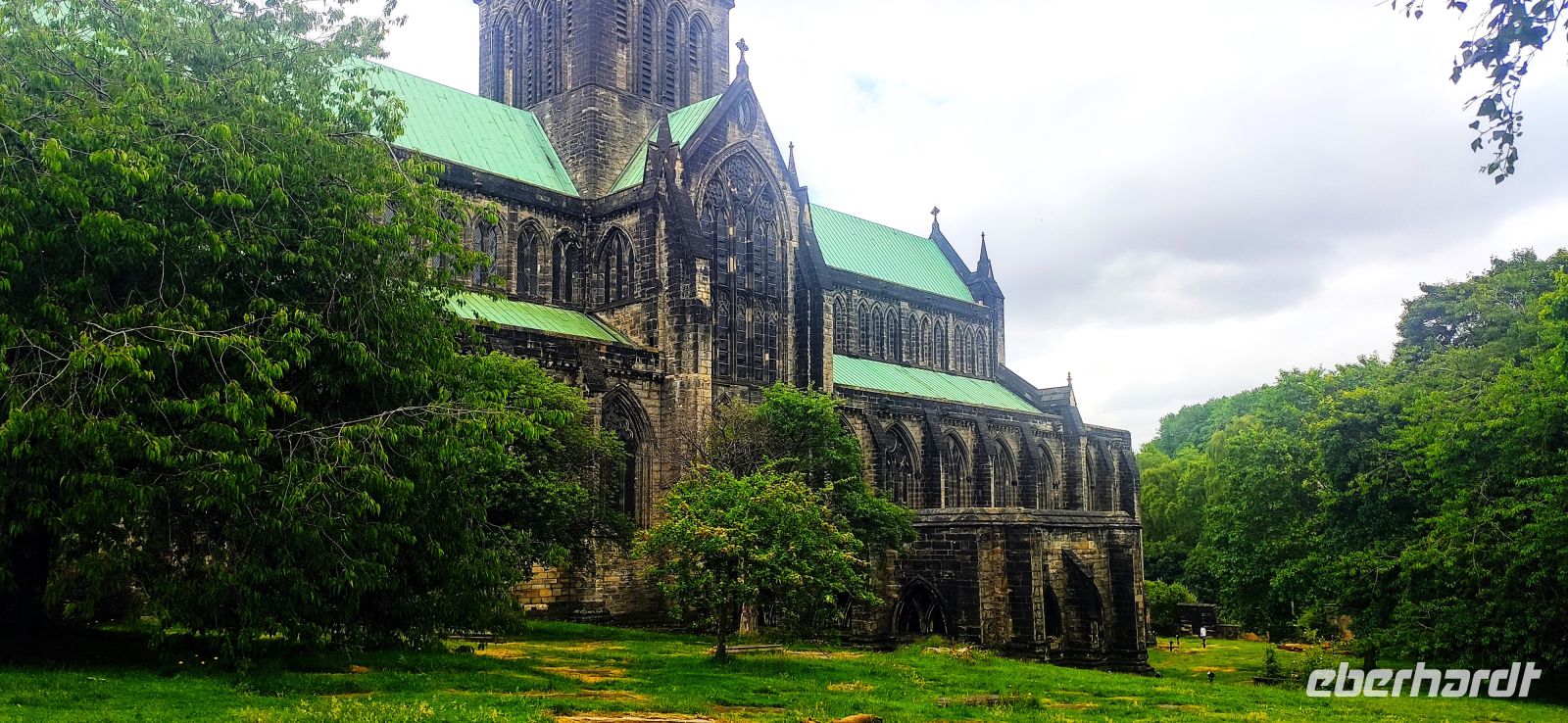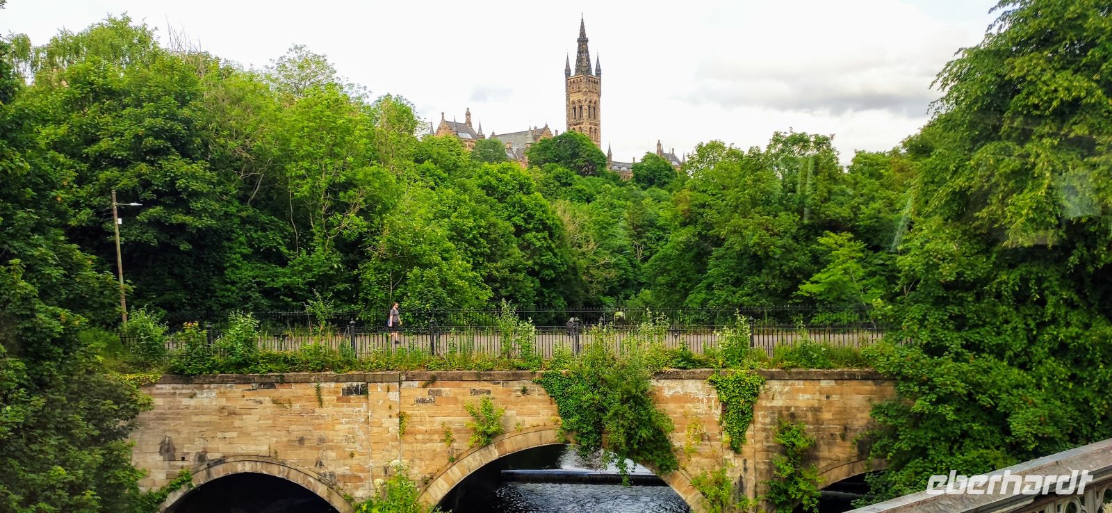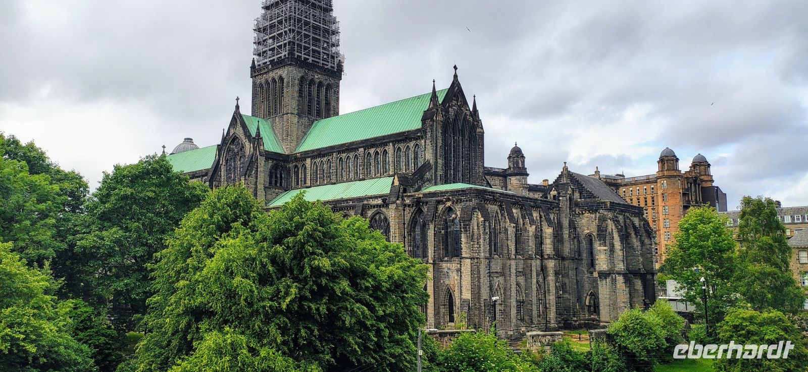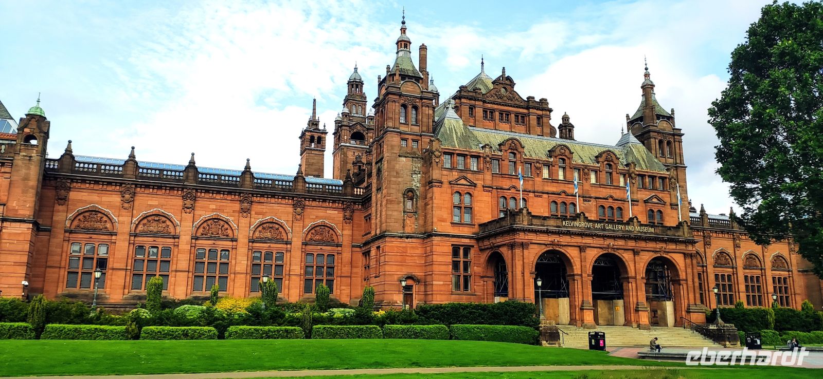 Hier treffen wir unsere Fluggäste und Jutta, unsere Stadtführerin. Nach der Besichtigung der beeindruckenden St. Mungos Kathedrale und der Nekropole dahinter, unternehmen wir gemeinsam eine schöne Stadtrundfahrt. Per Reisebus geht es danach nach Glasgow Green mit der Doulton Fontain und dem Peoples Palace, in die Innenstadt zum George Squere, zur Hafencity mit Sir Norman Fosters Gürteltier, der Hydro Arena und dem Finnieston Crane, zur Clydeside Distillery und zum Verkehrsmuseum (Riverside Museum), mit der beeindruckenden Architektur von Zaha Hadid. Anschließend fahren wir hinauf zur Universität und vorbei an der berühmten Kelvingrove Art Gallery.
