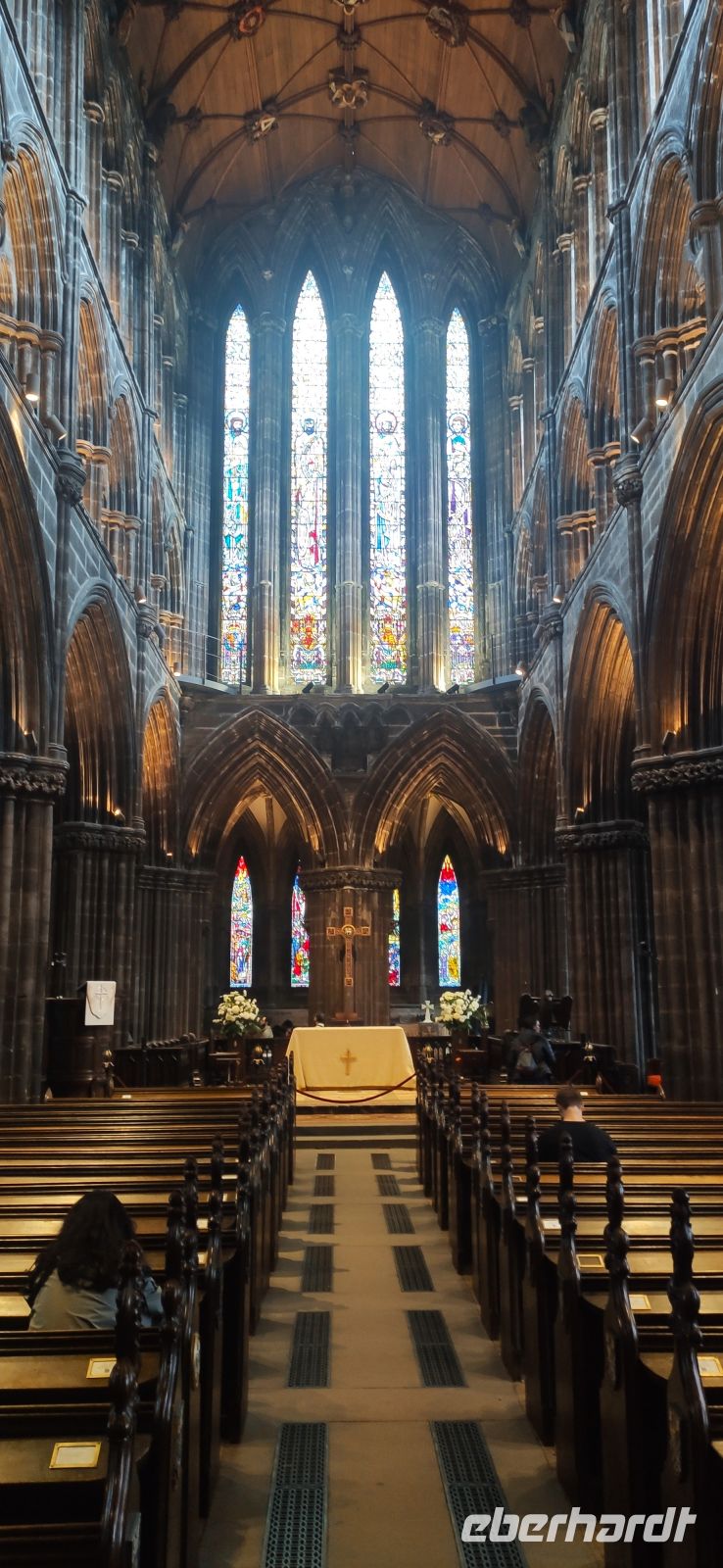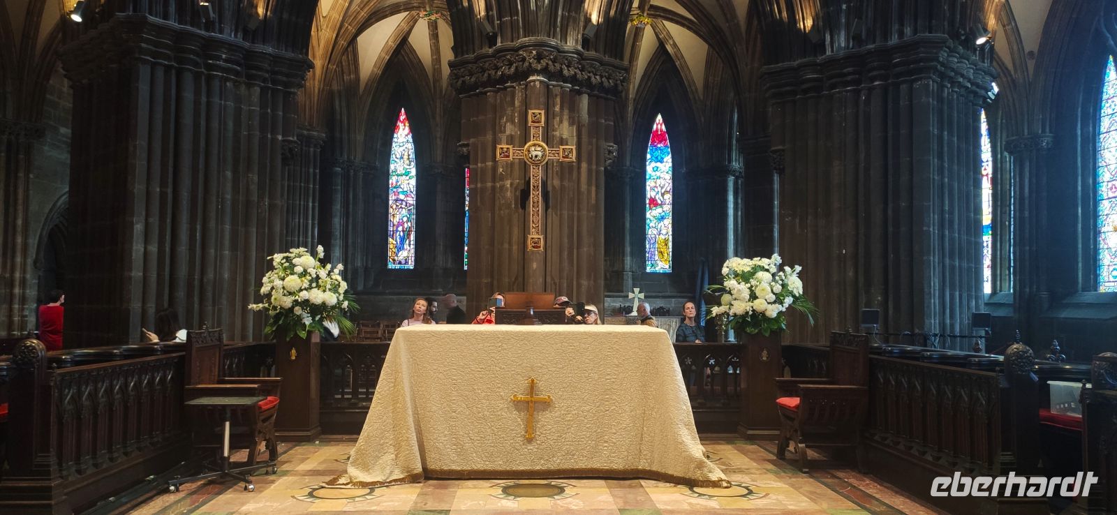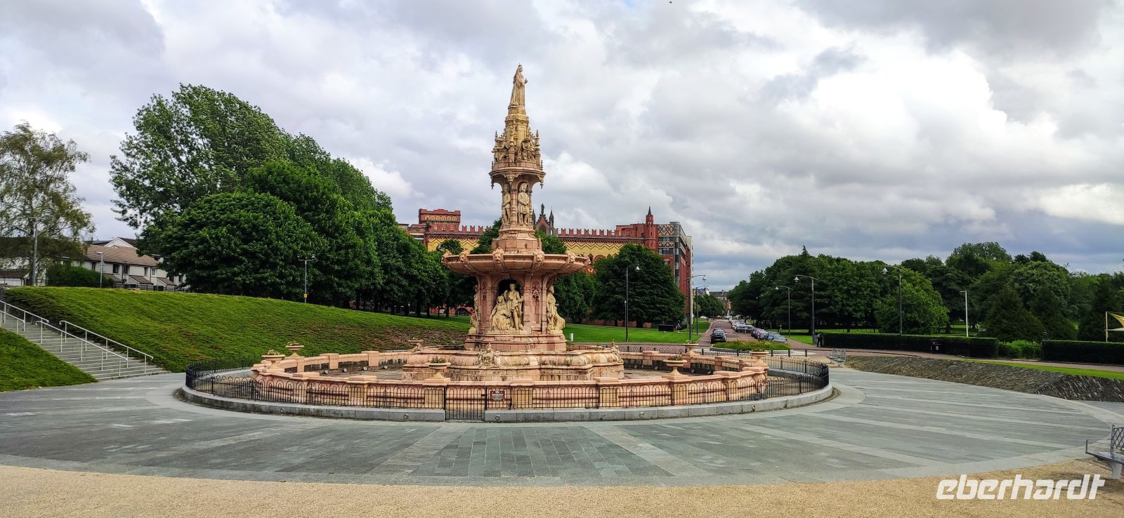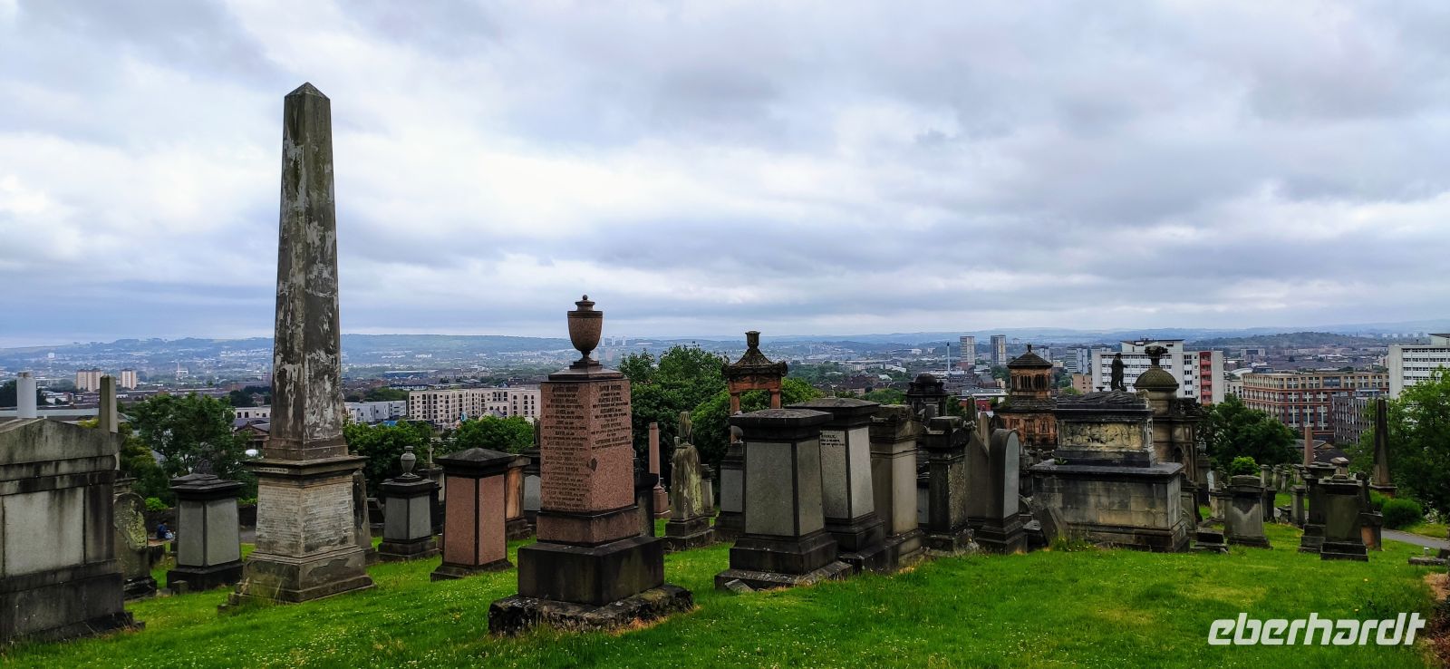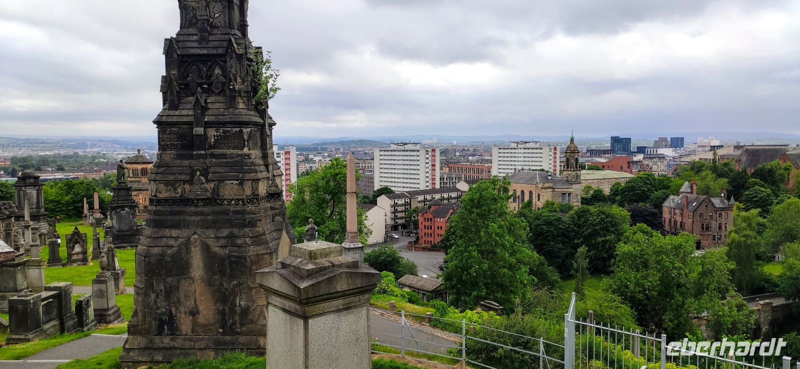 Hier treffen wir unsere Fluggäste und Jutta, unsere Stadtführerin. Nach der Besichtigung der beeindruckenden St. Mungos Kathedrale und der Nekropole dahinter, unternehmen wir gemeinsam eine schöne Stadtrundfahrt. Per Reisebus geht es danach nach Glasgow Green mit der Doulton Fontain und dem Peoples Palace, in die Innenstadt zum George Squere, zur Hafencity mit Sir Norman Fosters Gürteltier, der Hydro Arena und dem Finnieston Crane, zur Clydeside Distillery und zum Verkehrsmuseum (Riverside Museum), mit der beeindruckenden Architektur von Zaha Hadid. Anschließend fahren wir hinauf zur Universität und vorbei an der berühmten Kelvingrove Art Gallery.