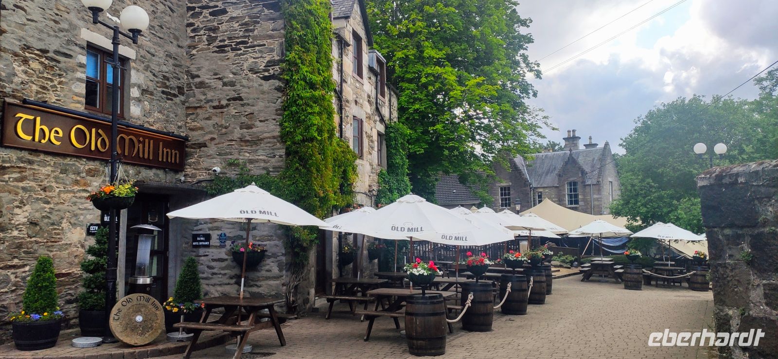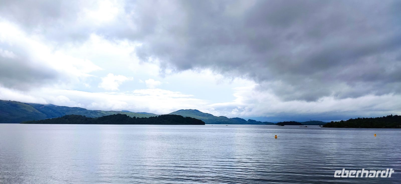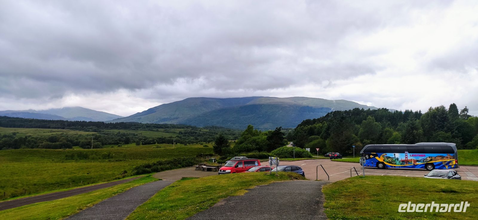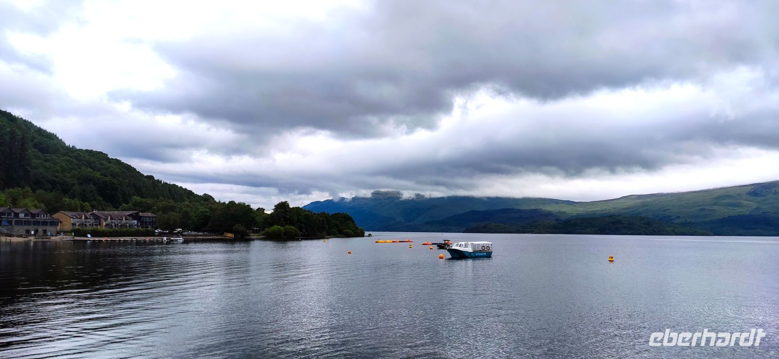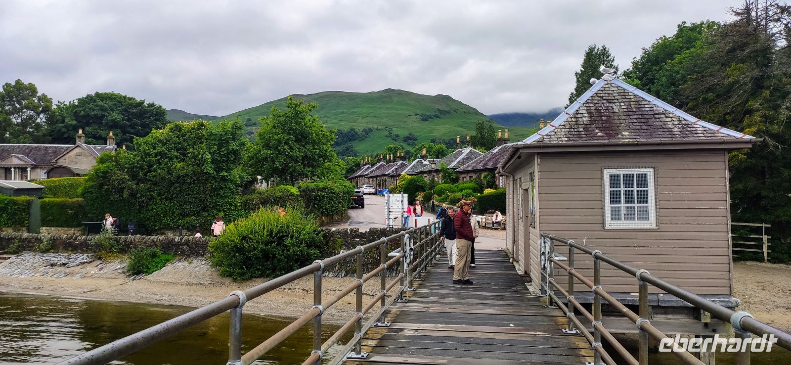 Nach gutem schottischen Frühstück vom Buffet starten wir 8:15 Uhr in Richtung Loch Lomond, in den Trossachs Nationalpark. Beim Fotostopp in Luss unternehmen wir einen gemeinsamen Spaziergang zum Seeufer und der Pier. Leider verhindern tiefhängende Regenwolken einen Blick auf den 973 m hohen Ben Lomond.