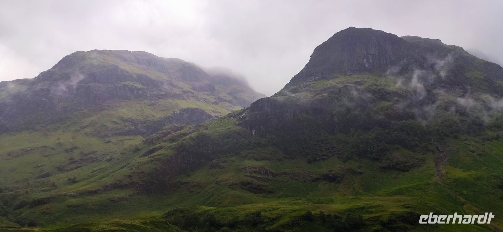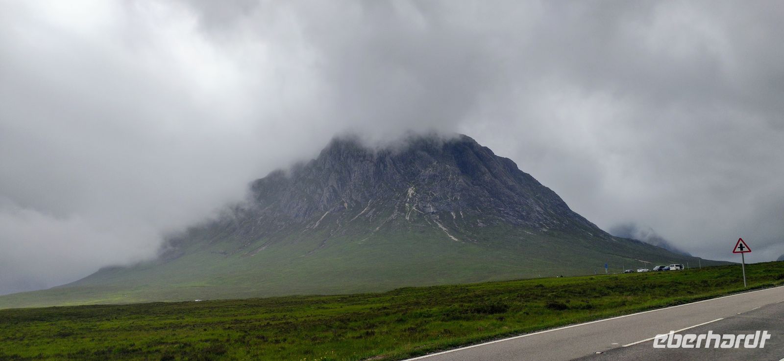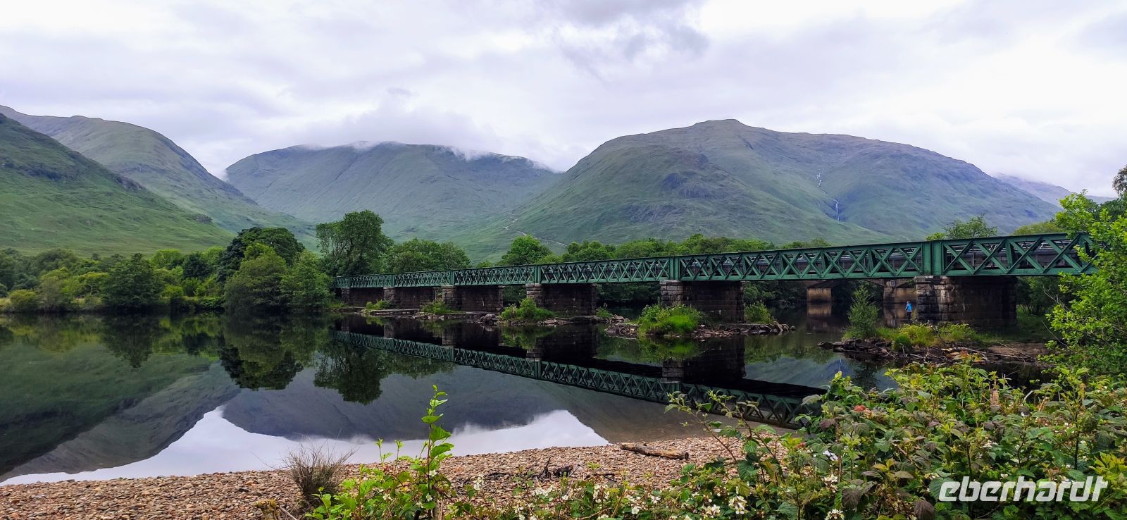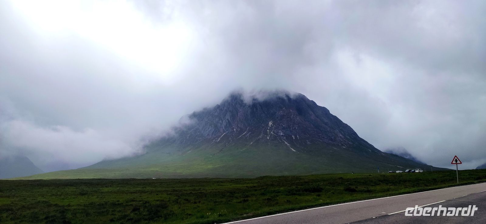 Nun folgen die imposantesten Gebirgskulissen der Highlands. Die Berge am Gen Orchy, der Loch Tulla, die Hochfläche des Rannoch Moor und schließlich das Glen Etieve und das Glen Coe, mit dem „Hirten“ und seinen drei Schafen dahinter (Three Sisters). Zahlreiche Filme wurden hier gedreht, ob Skyfall mit James Bond, Highlander, Outlander oder Braveheart.