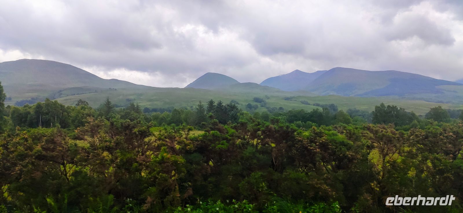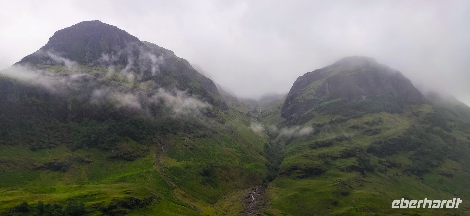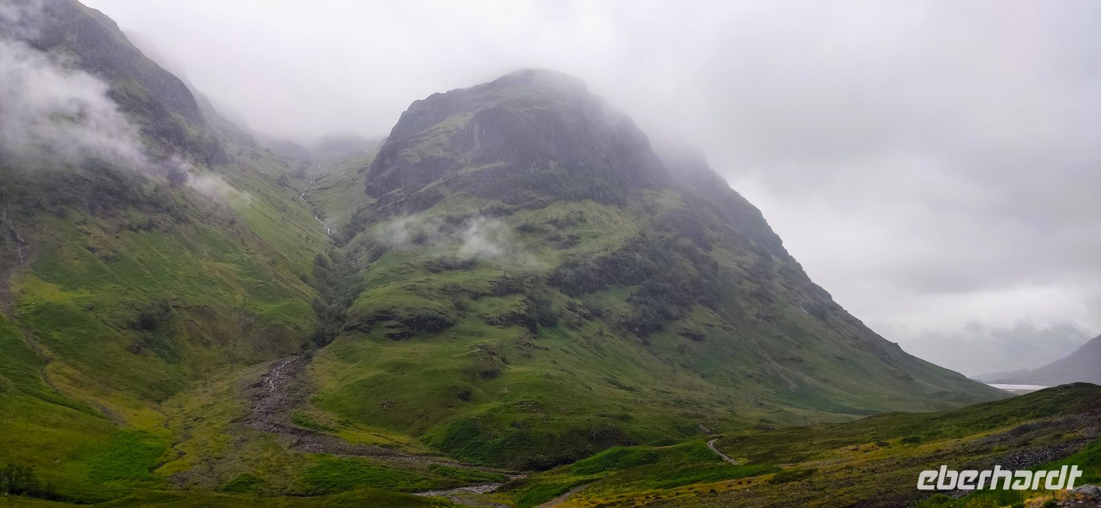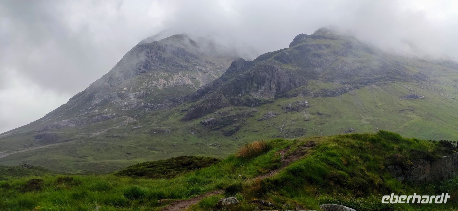 Nun folgen die imposantesten Gebirgskulissen der Highlands. Die Berge am Gen Orchy, der Loch Tulla, die Hochfläche des Rannoch Moor und schließlich das Glen Etieve und das Glen Coe, mit dem „Hirten“ und seinen drei Schafen dahinter (Three Sisters). Zahlreiche Filme wurden hier gedreht, ob Skyfall mit James Bond, Highlander, Outlander oder Braveheart.