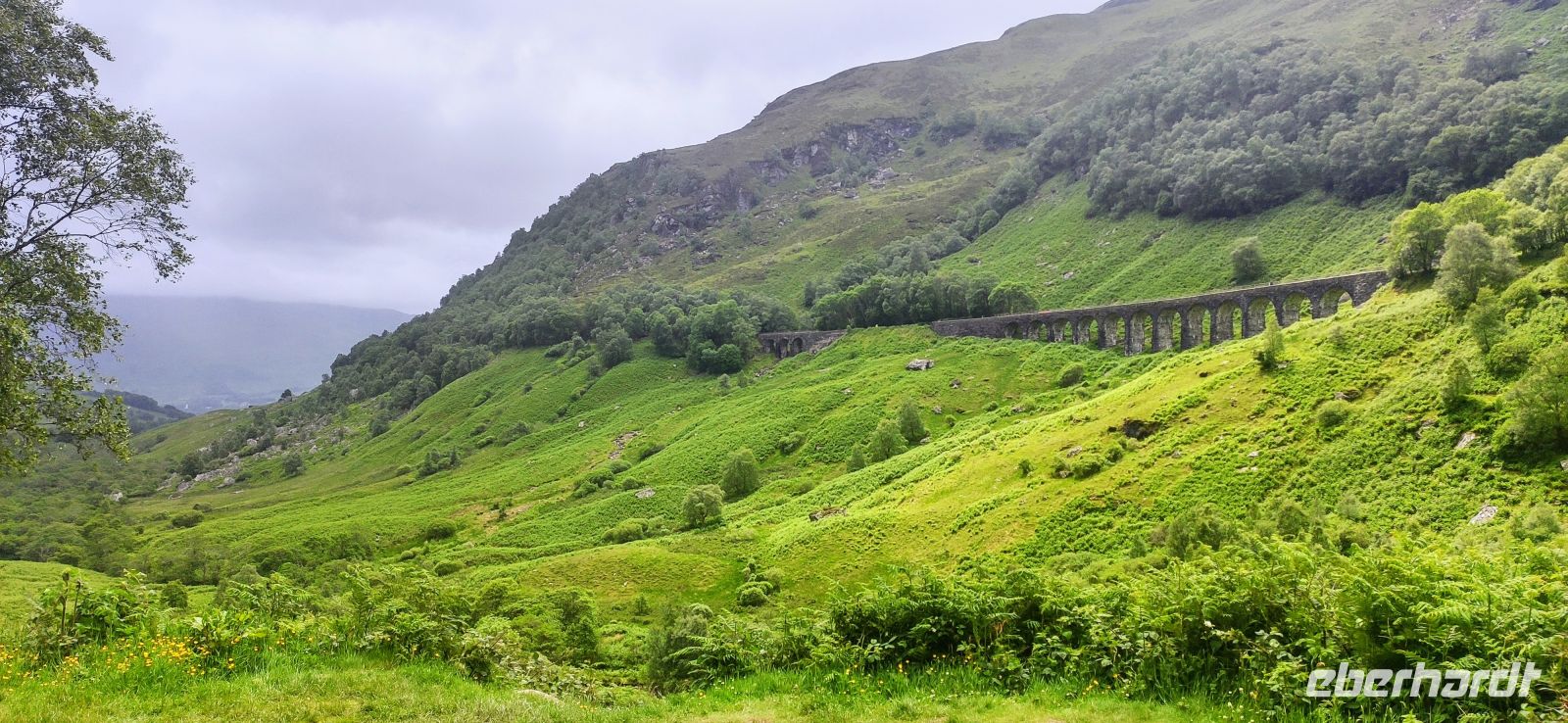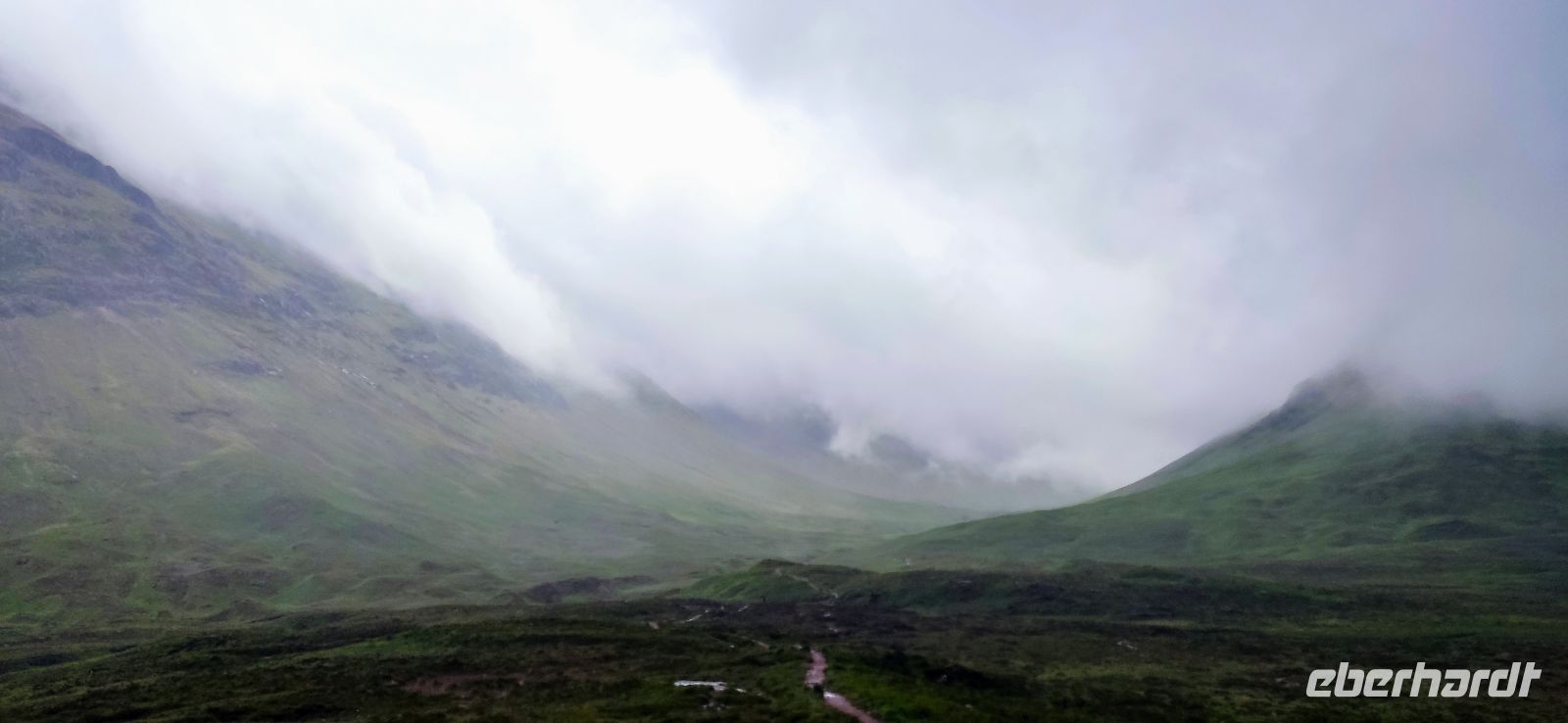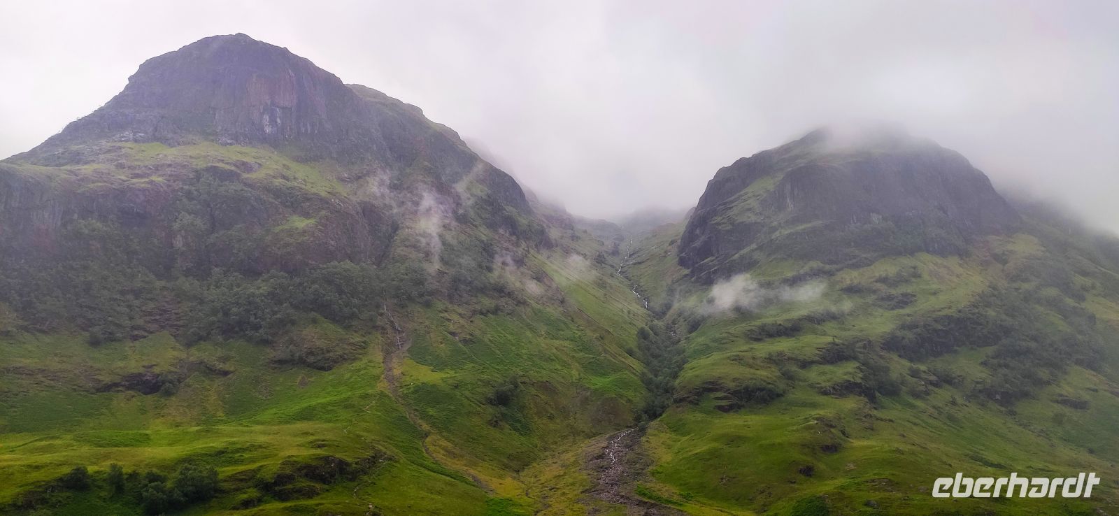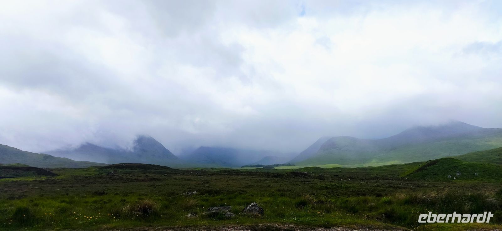 Nun folgen die imposantesten Gebirgskulissen der Highlands. Die Berge am Gen Orchy, der Loch Tulla, die Hochfläche des Rannoch Moor und schließlich das Glen Etieve und das Glen Coe, mit dem „Hirten“ und seinen drei Schafen dahinter (Three Sisters). Zahlreiche Filme wurden hier gedreht, ob Skyfall mit James Bond, Highlander, Outlander oder Braveheart.
