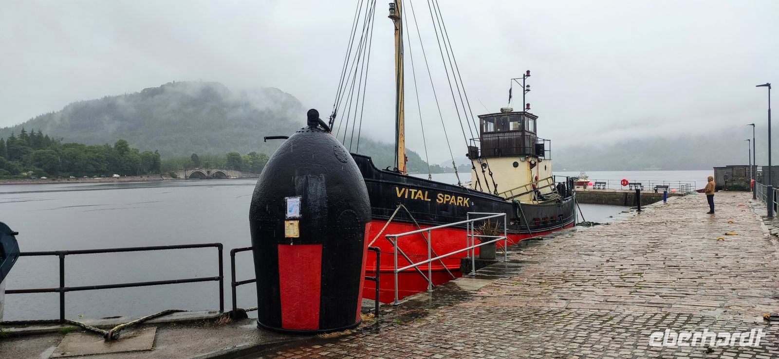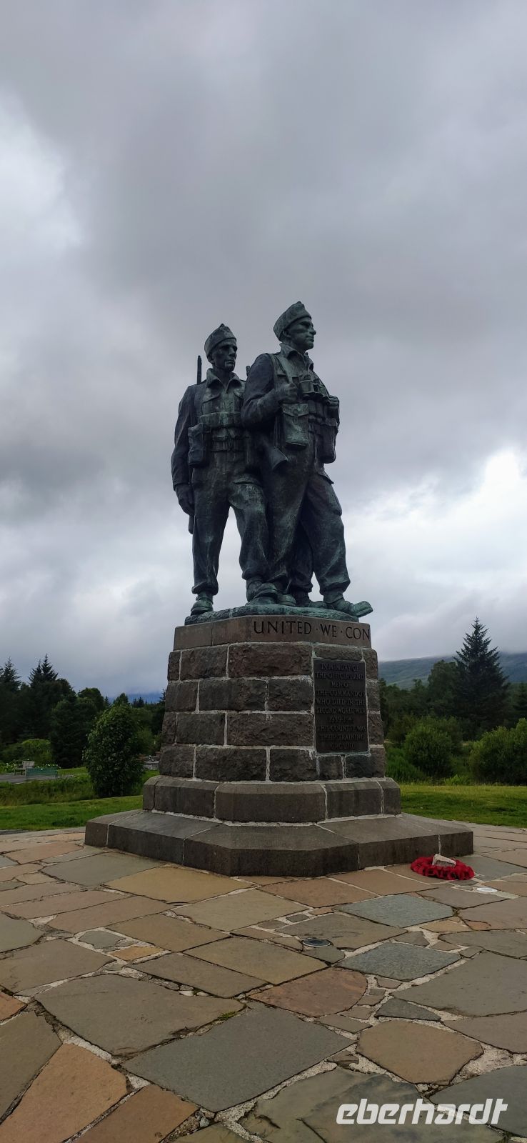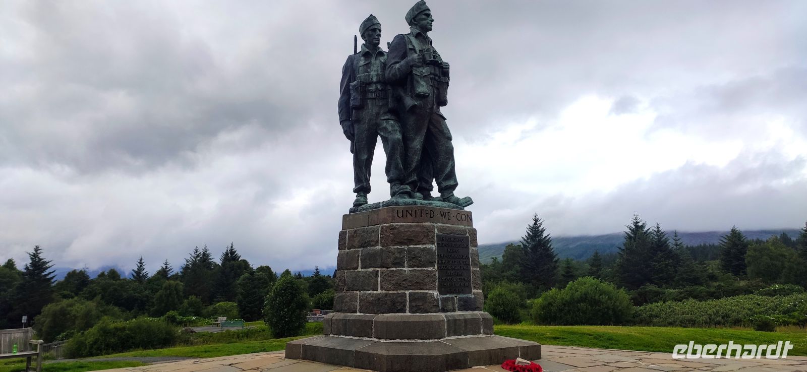 Bei der Weiterfahrt passieren wir die weiteren Seen des Tales und erreichen vor der Spean Bridge nochmals das Commando Memorial. Leider ist der Ben Nevis, der mit 1345 m höchste Berg Schottlands und ganz Großbritanniens, immer noch in den Wolken versteckt..