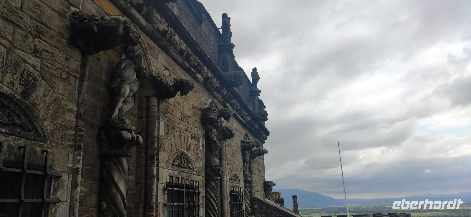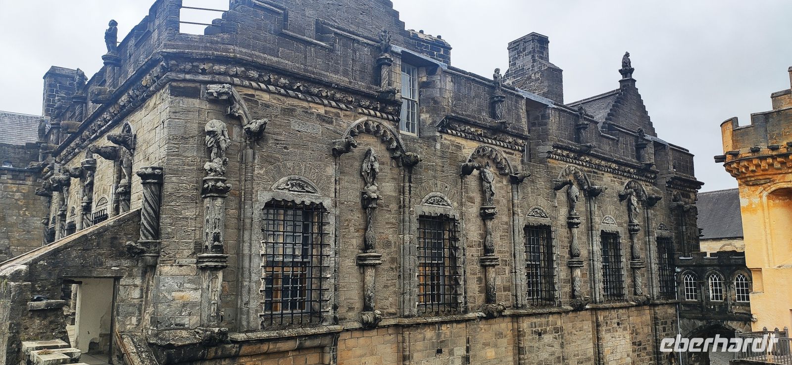 Vom Burghof von Stirling Castle aus können wir den Renaissance-Palast der schottischen Könige, die Große Halle und die Festungswälle besichtigen und lebendige Geschichte aus erster Hand erfahren.