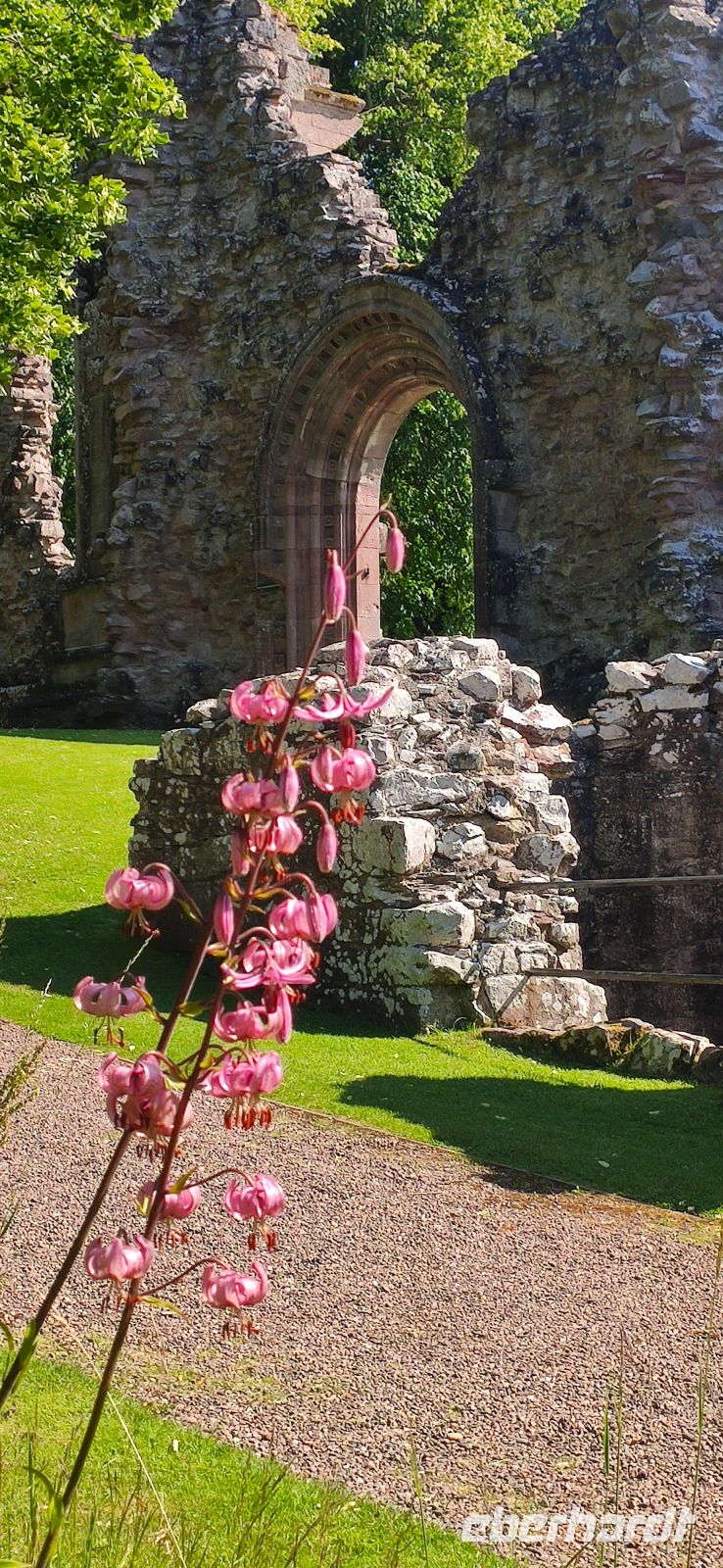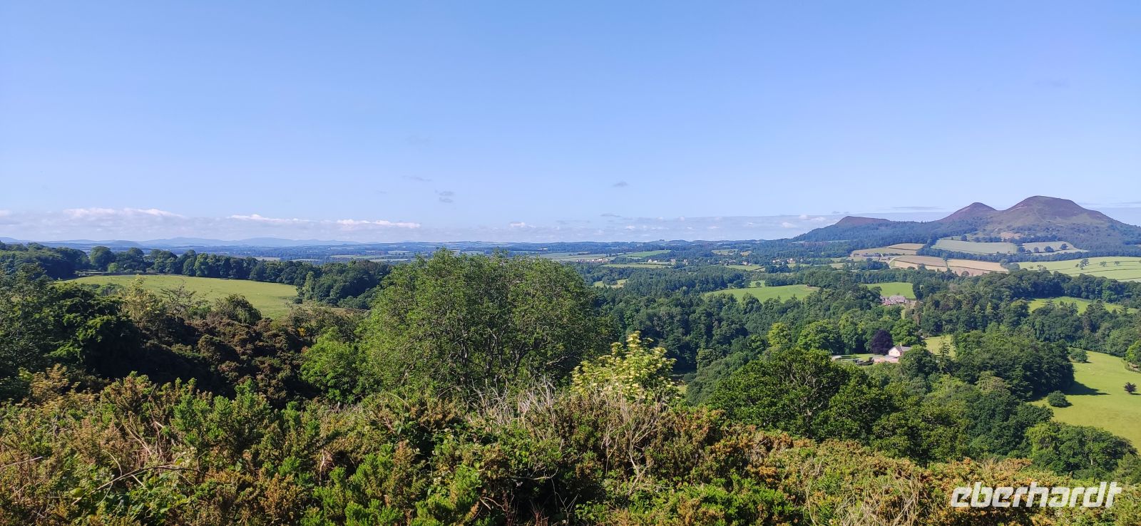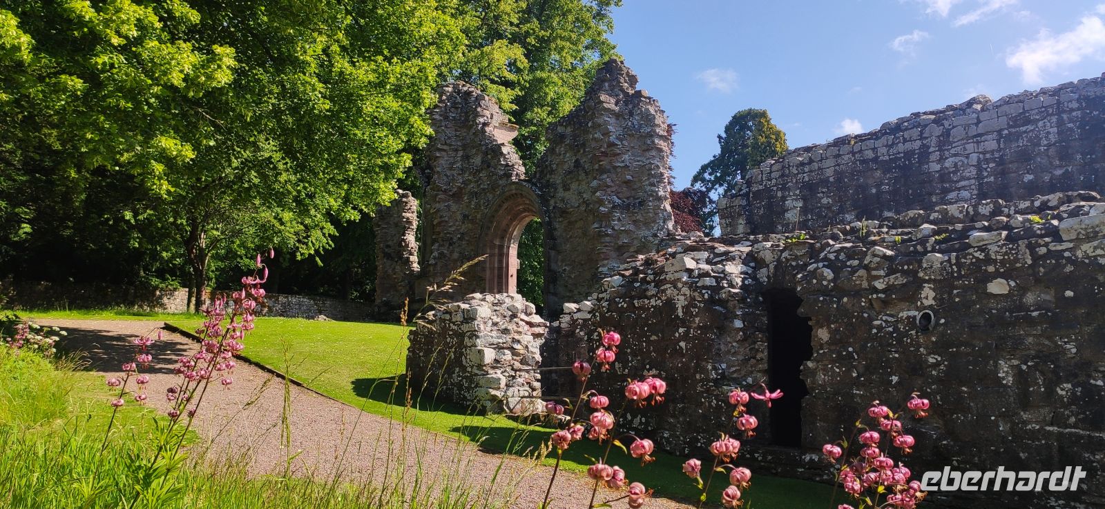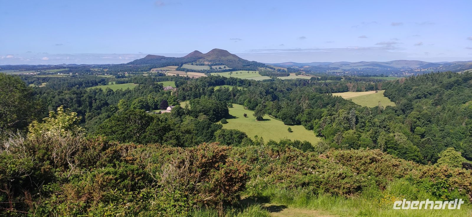 Es ist schönes Wetter und wir fahren nach Süden, hinein in die Borderlands und Richtung Jedburgh. Vorher genießen wir aber die schöne Hügellandschaft der Borders, Besuchen den Leaderfootviadukt über den Fluss Tweet, fahren hinauf zum Lieblingsplatz von Sir Walter Scott und zur romantischen Dryburgh Abbey mit dem schönen Landschaftspark und seinem Grab.