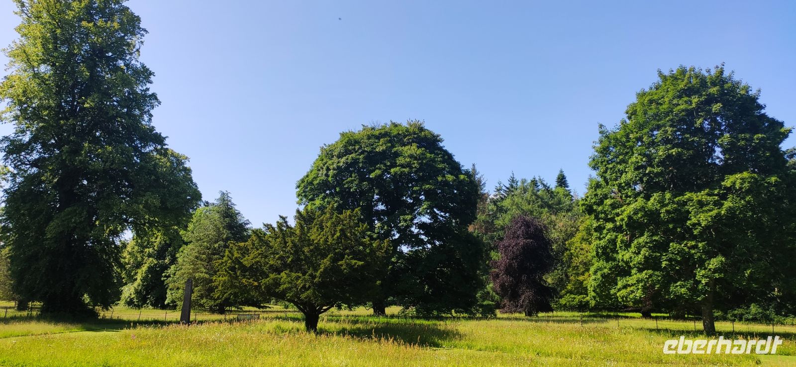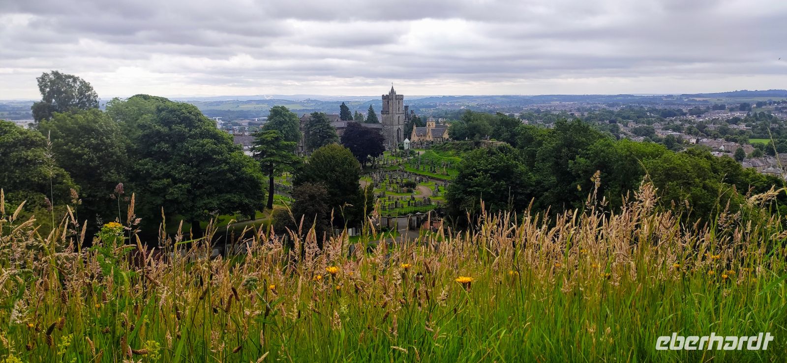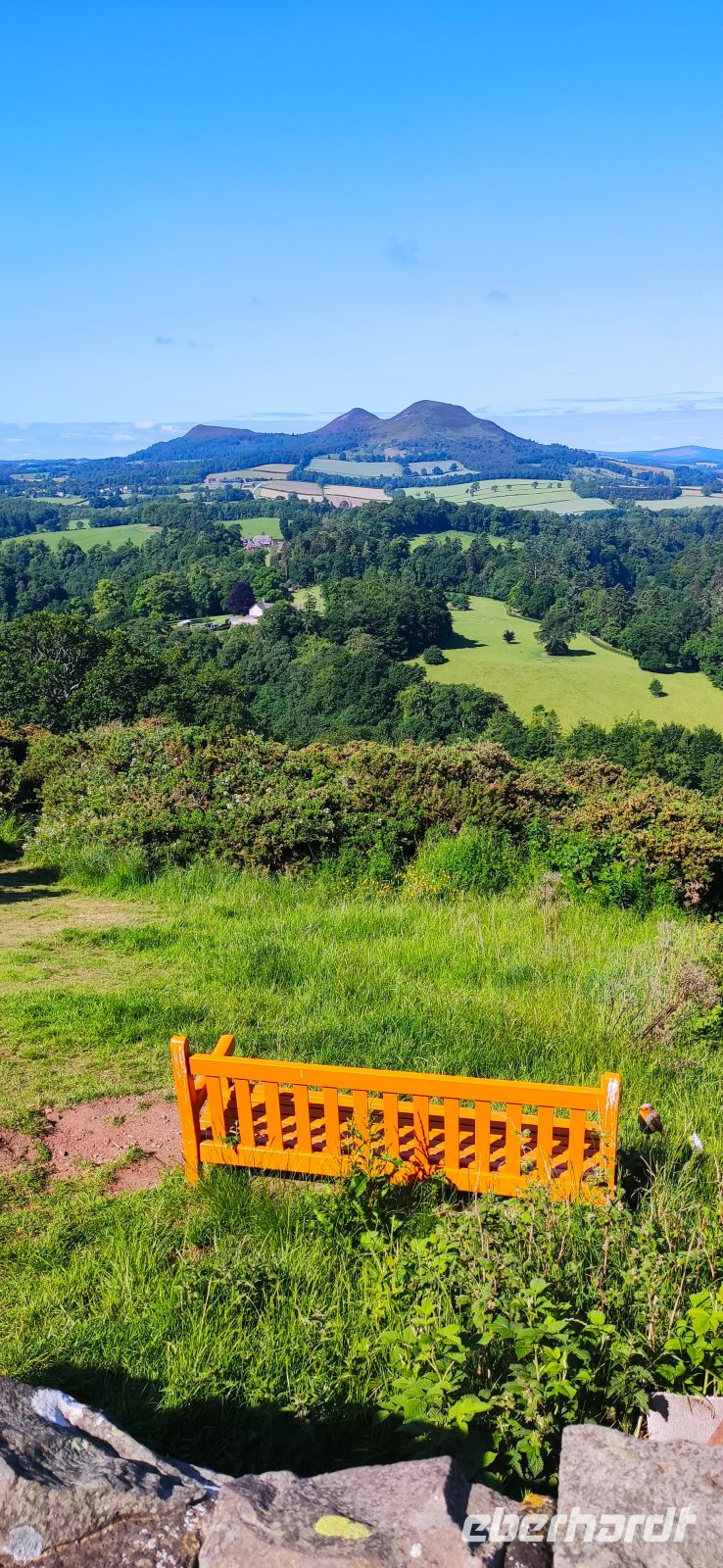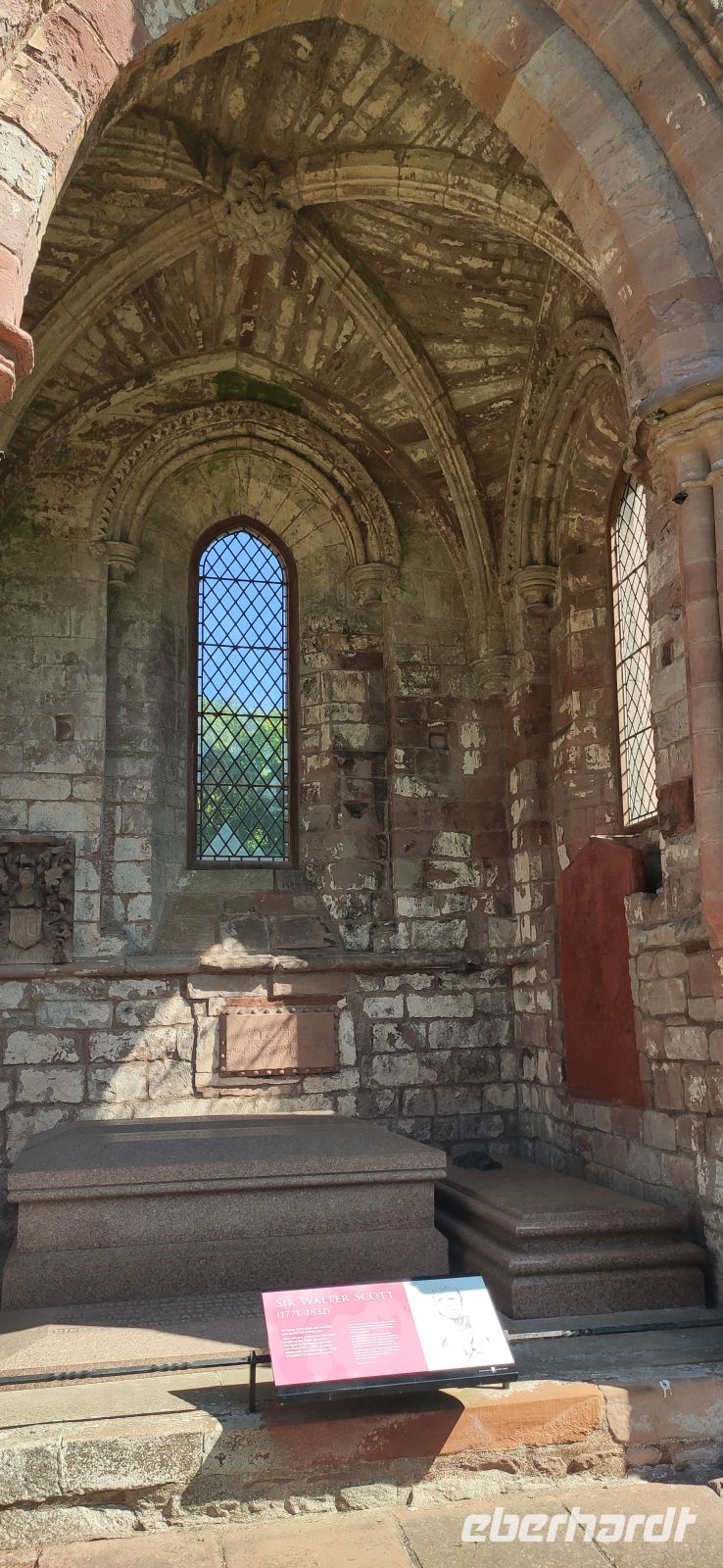 Es ist schönes Wetter und wir fahren nach Süden, hinein in die Borderlands und Richtung Jedburgh. Vorher genießen wir aber die schöne Hügellandschaft der Borders, Besuchen den Leaderfootviadukt über den Fluss Tweet, fahren hinauf zum Lieblingsplatz von Sir Walter Scott und zur romantischen Dryburgh Abbey mit dem schönen Landschaftspark und seinem Grab.