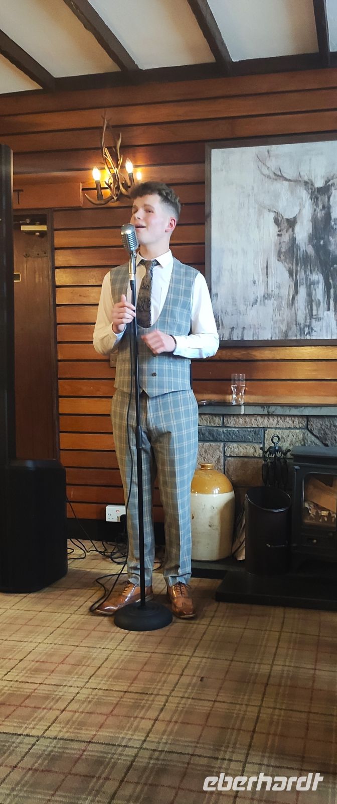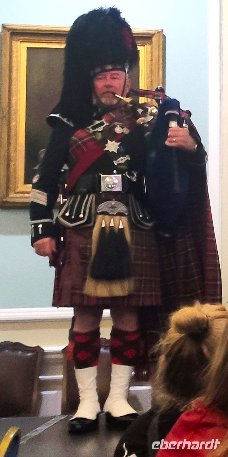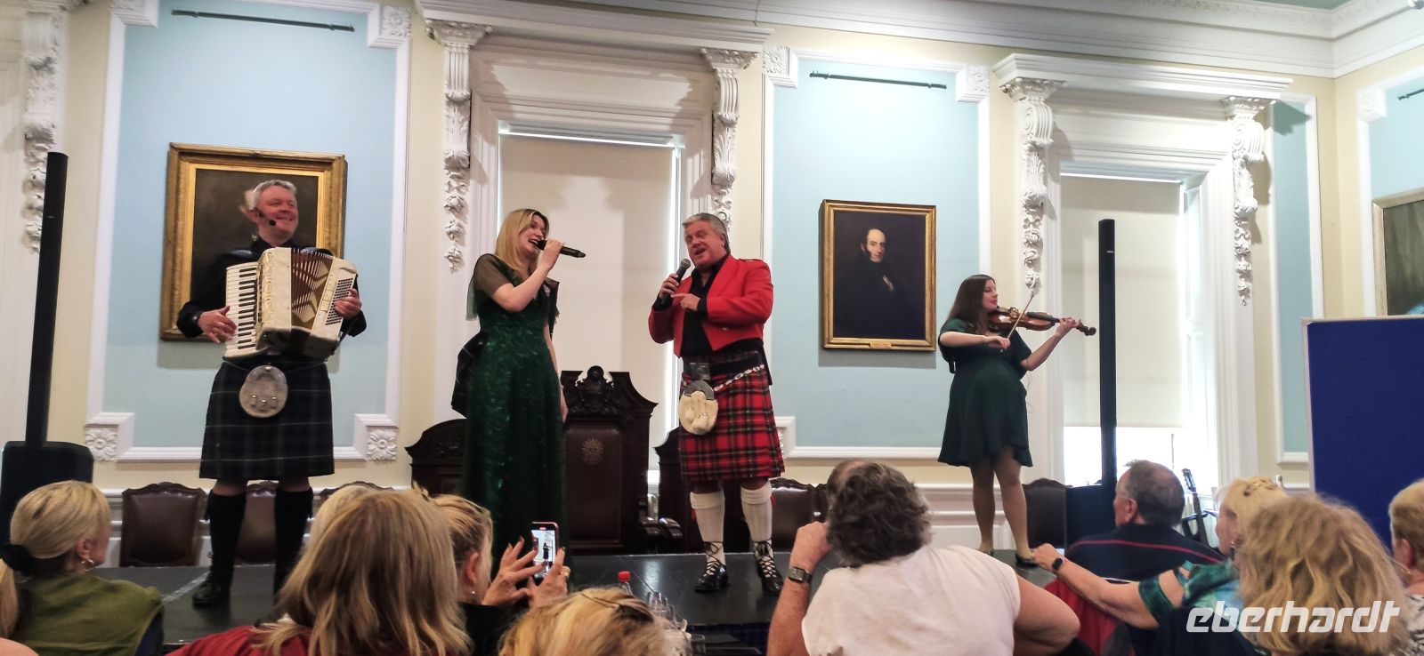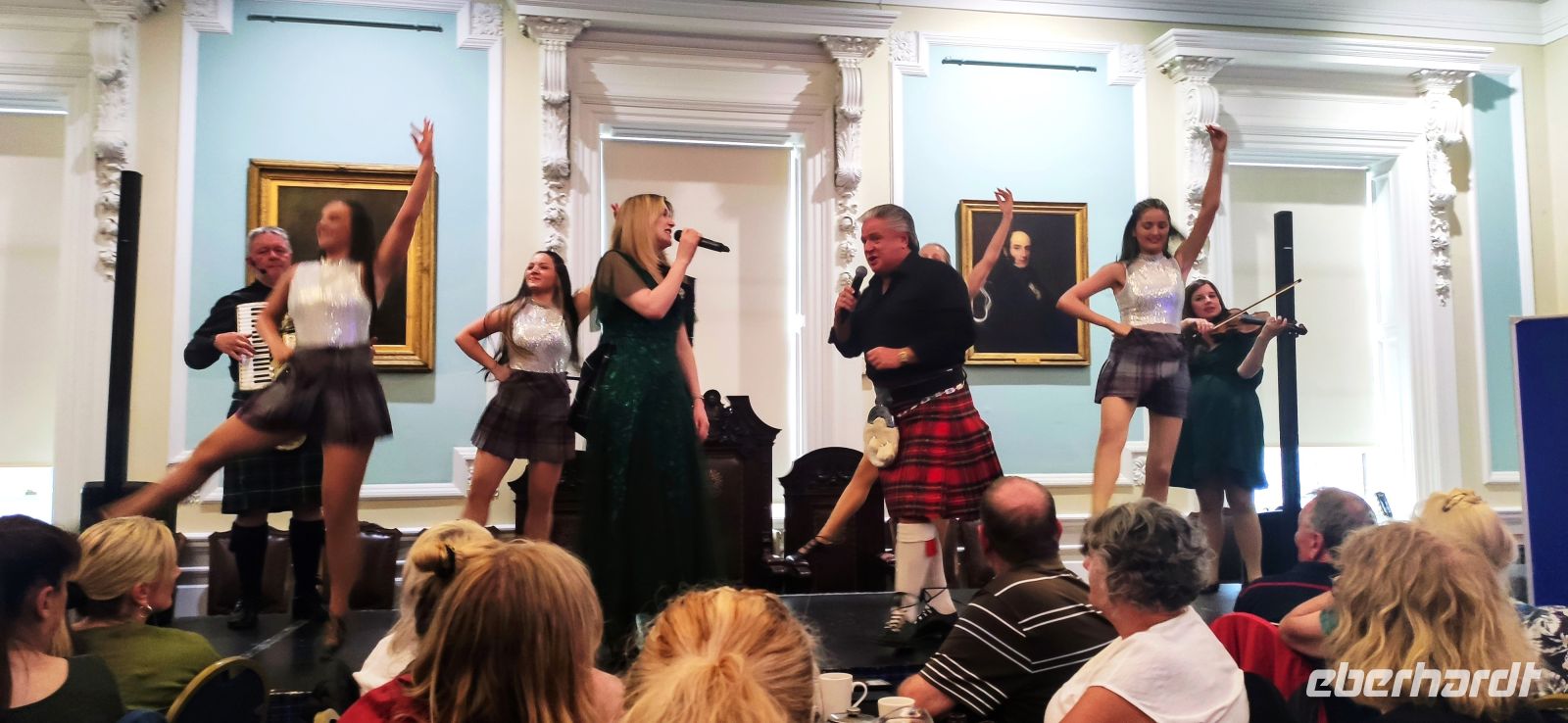 Piper, Harmonikaspieler, Sängerin und 4 Mädchen der Scottish Dancers gestalten uns einen tollen Abend, mit allen bekannten Hymnen und dem Zelebrieren von Whisky und Haggis.