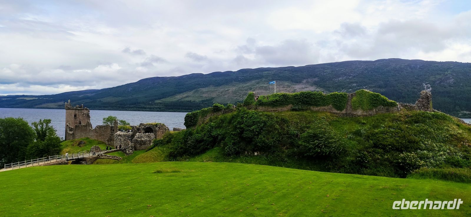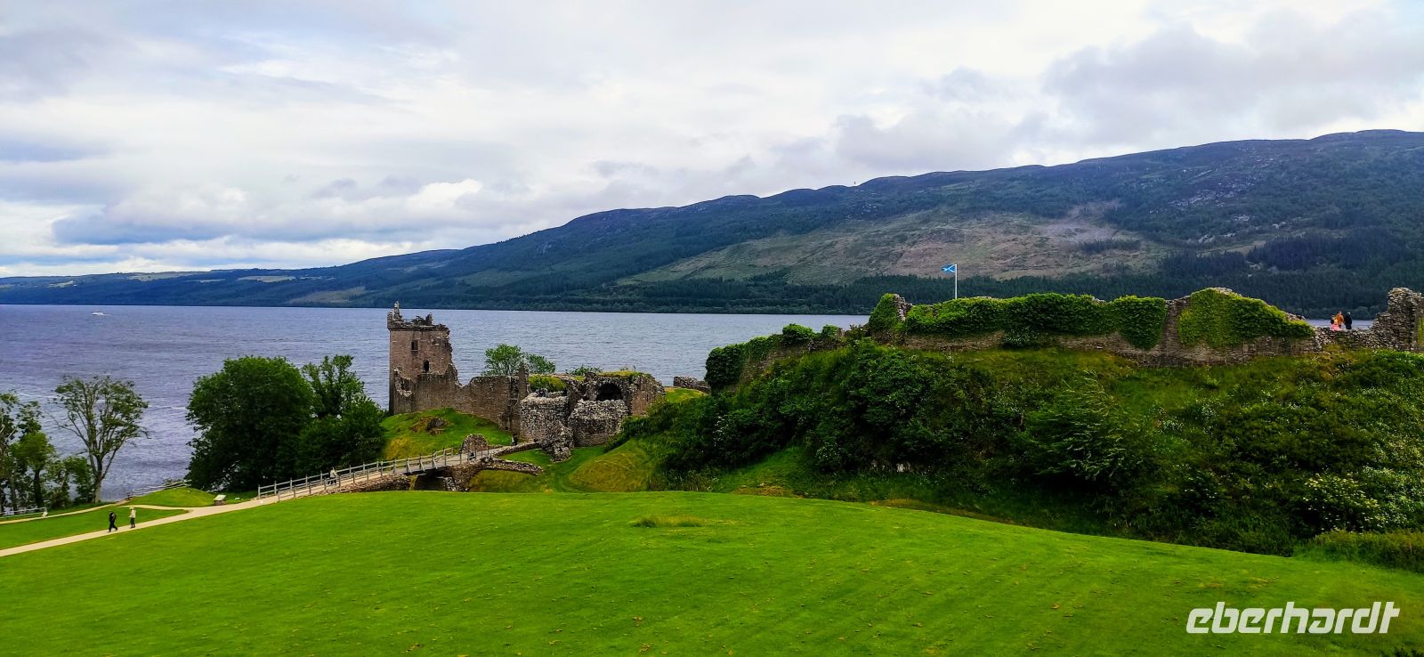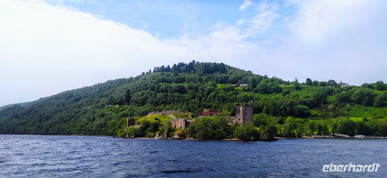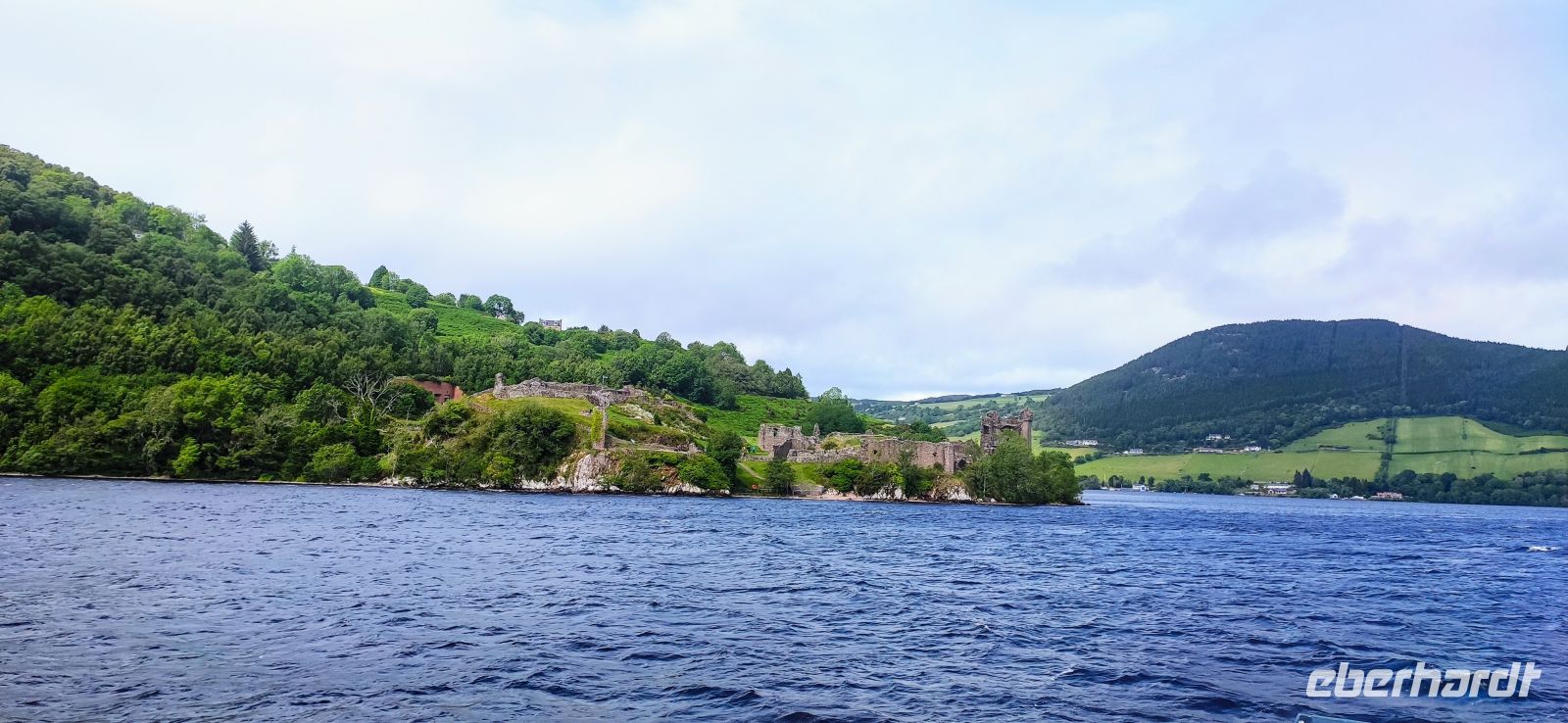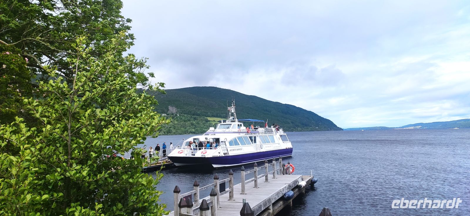 Am Schiffsanleger am Clansman Hotel steigen wir vom Reisebus auf das Boot der Jacobite Cruises um. Wir unternehmen eine Bootsfahrt auf dem 36,5 km langen und bis 230 m tiefen „Monster“-See, hin zu den Ruinen des Urquhart Castle. Die Burgruine am See ist wohl eines der markantesten Ziele in Schottland und immer wieder eine tolle Kulisse in der Landschaft.