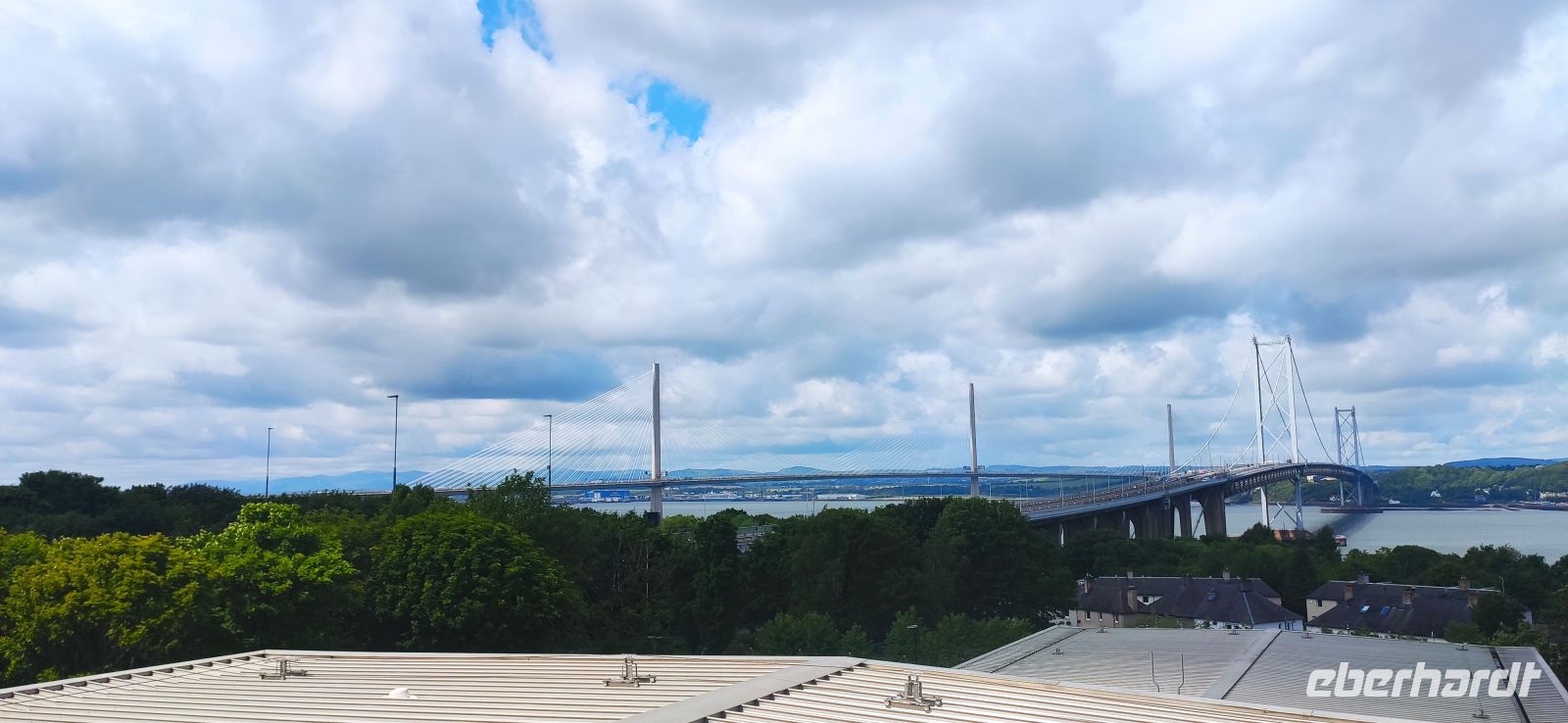 In Dunfermline erreichen wir den Firth of Forth, den wir mit der Passage über die neue Straßenbrücke überqueren. 1,3 Billionen £ kostete die neue Brücke.