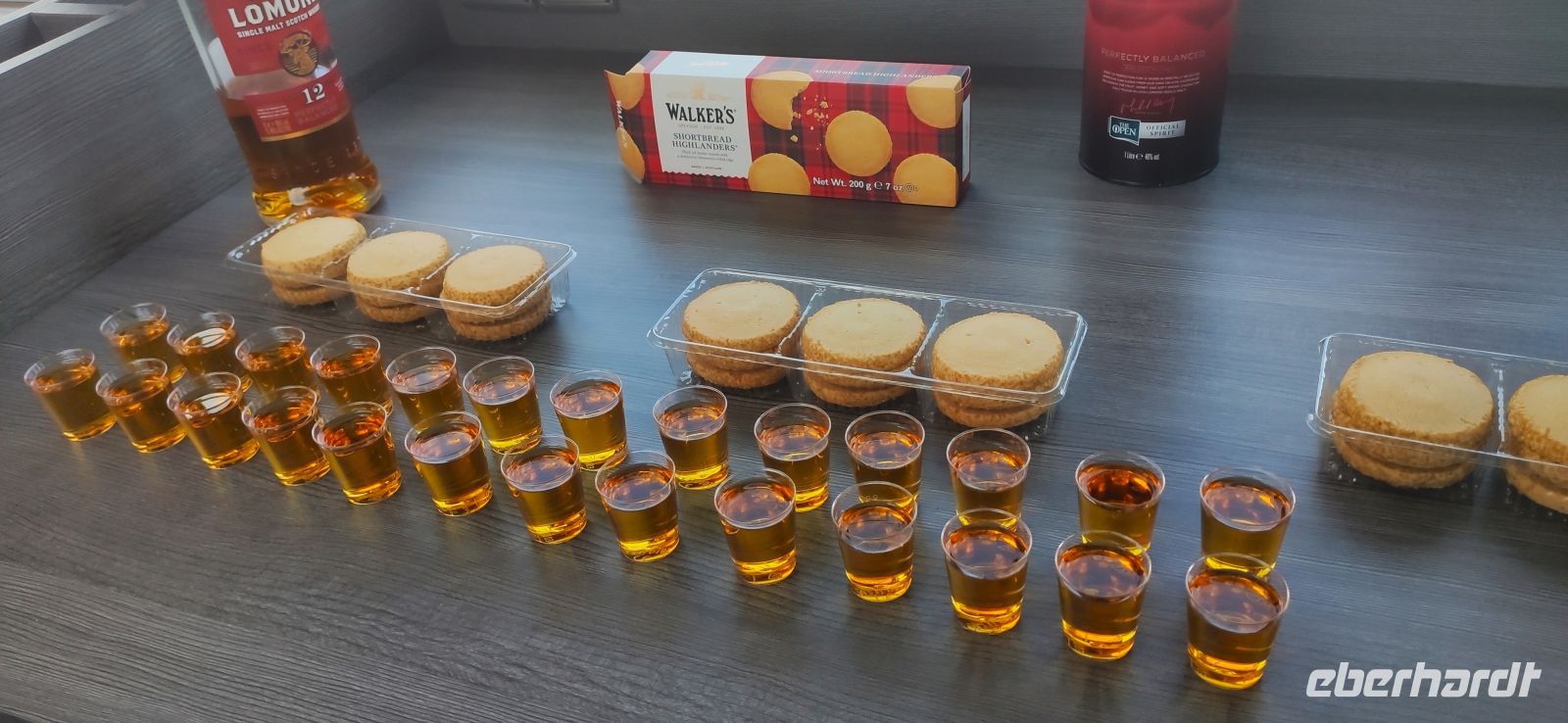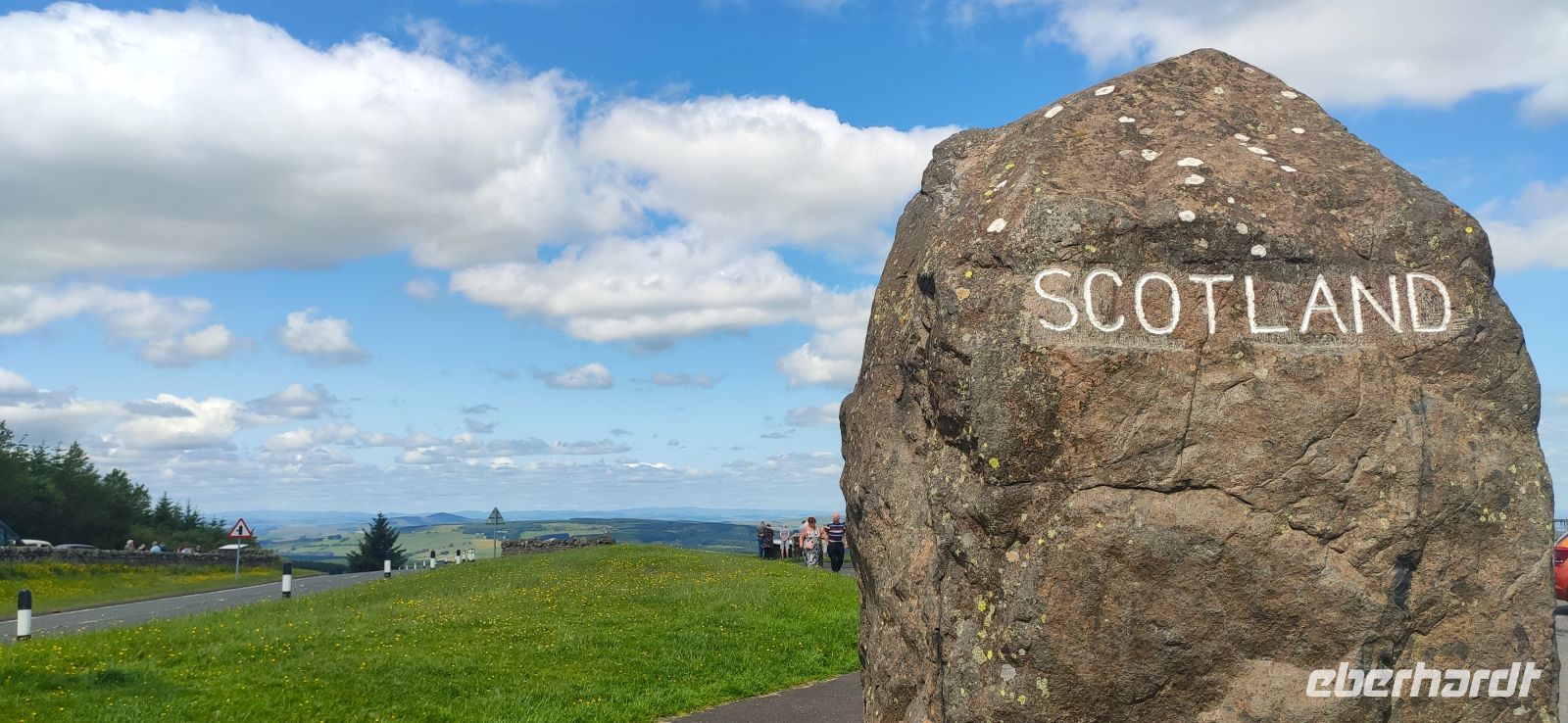 An der englisch-schottischen Grenze bei Carters Bar heißt es endgültig Abschied nehmen vom wunderschönen Schottland. Wir trösten uns nochmals mit einem Gläschen Loch Lomond Whisky.