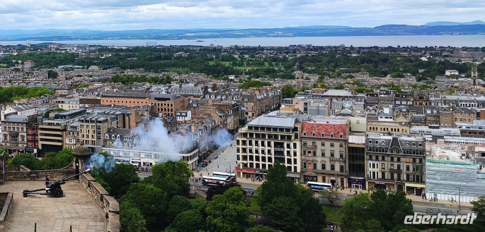 Mit der greorgianischen Neustadt beginnt unsere Stadtrundfahrt durch Edinburgh. Wir sehen die Nobelwohnungen und die exklusiven Geschäftsstraßen, dann das Fettes College und den Botanischen Garten. Über die Princess Street geht es zum Gras Market mit der Hinrichtungsstätte und dann die Cowgate entlang zum Schloss, dem Holyrood Palace und dem modernen Schottischen Parlaments-gebäude. Es ist komplett aus in Schottland heimischen Rohstoffen errichtet. Von hier geht es noch ein Stück unterhalb des Berges Arthur´s Seat entlang und dann zurück zur Royal Mile und hinauf in die Altstadt. Der Besuch des Edinburgh Castle bildet den Abschluss unserer Besichtigung. Dazu steigen wir vor dem Schottischen Nationalmuseum aus, schauen da aber auch kurz hinein und gehen dann gemeinsam zur Highstreet (Royal Mile) und hinauf zur Burg. Mit seiner schönen Stadtaussicht, der Margaretenkapelle aus dem 13. Jahrhundert, dem Schloss mit den schottischen Kronjuwelen und natürlich der 1-Uhr-Kanone.