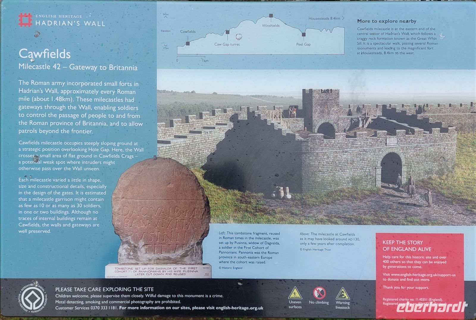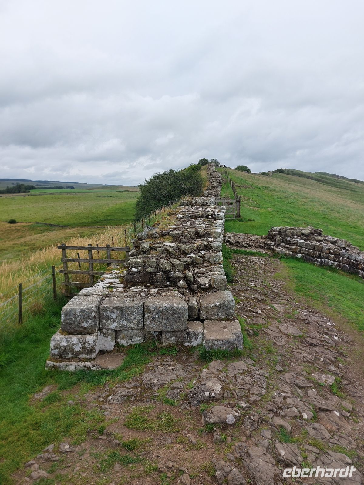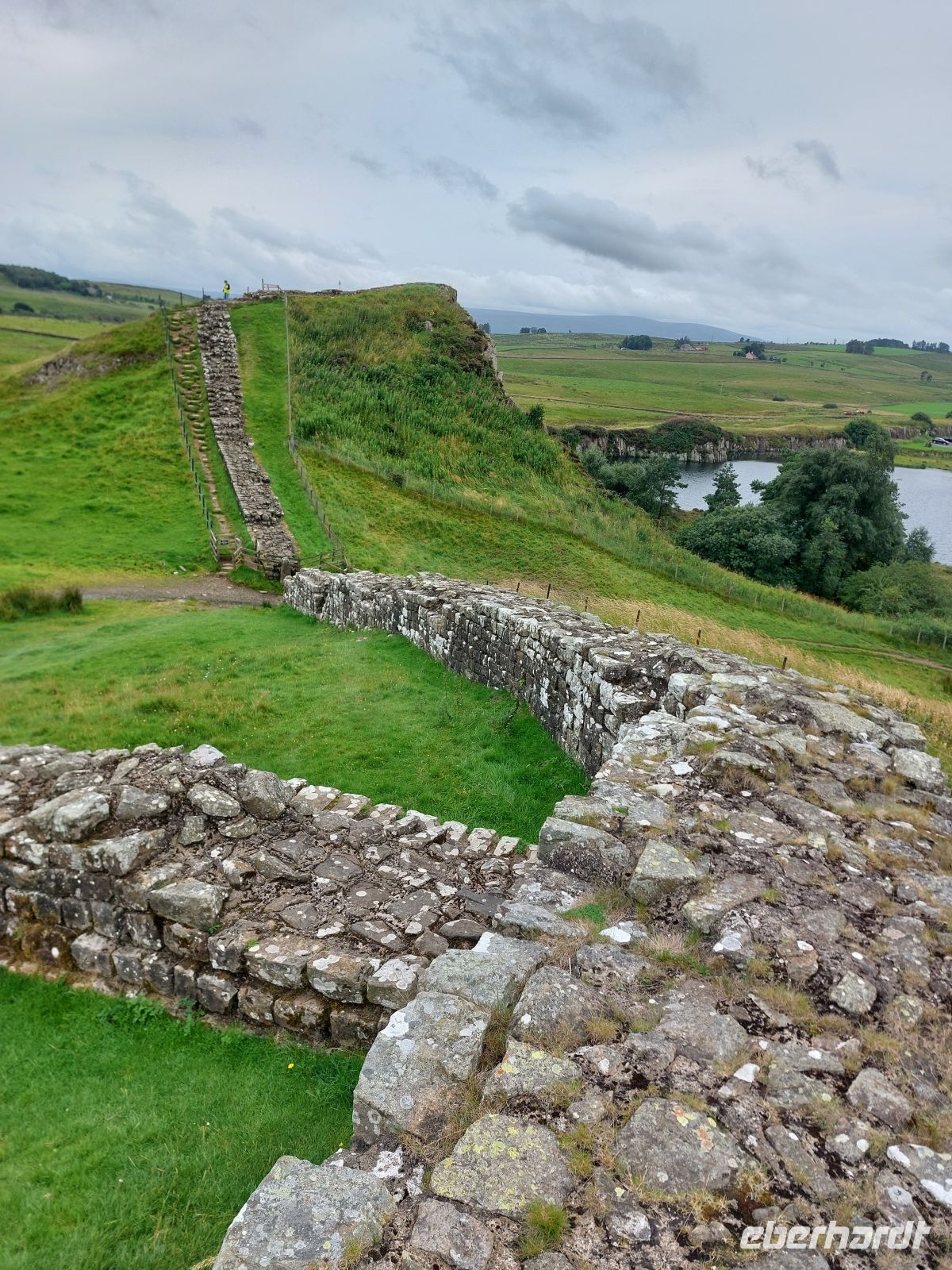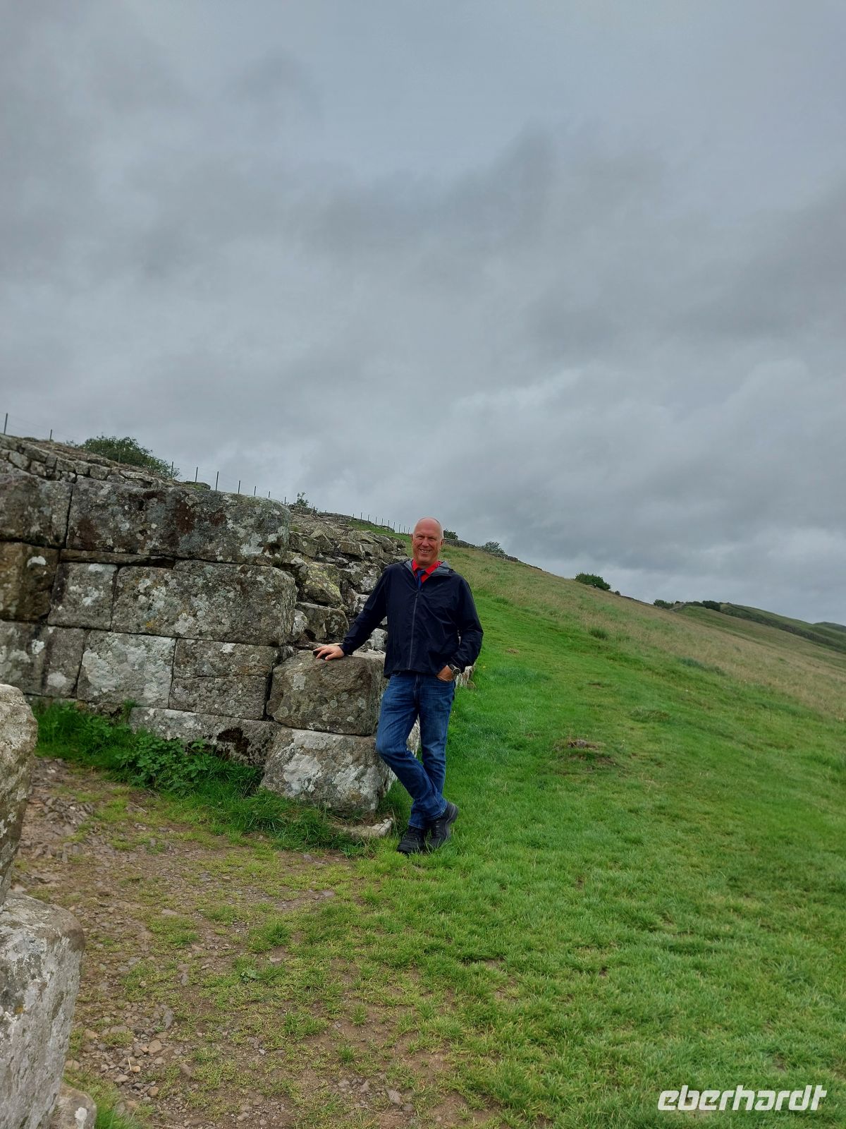 British breakfast – mit Bacon, Rührei, Champignons, gebratenen Tomaten und Toast! Kann ein Tag an Bord besser starten? Nach dem Verlassen des Schiffes in Newcastle fuhren wir mit unserem Bus parallel zum Hadrians Wall, von der Ostküste Nordenglands Richtung Westküste. Auf dem Weg, in der Nähe von Haltwhistle, besuchten wir ein sehr gut erhaltenes Teilstück des Hadrian´s Wall, beim Cawfield Quarry, Milecastle 42. Dort war nicht nur ein sehr langes Stück – hügelauf, hügelab – des Walls zu sehen, sondern auch die Grundmauern eines der Türme, eben die Nummer 42 (gezählt wird von Ost nach West).