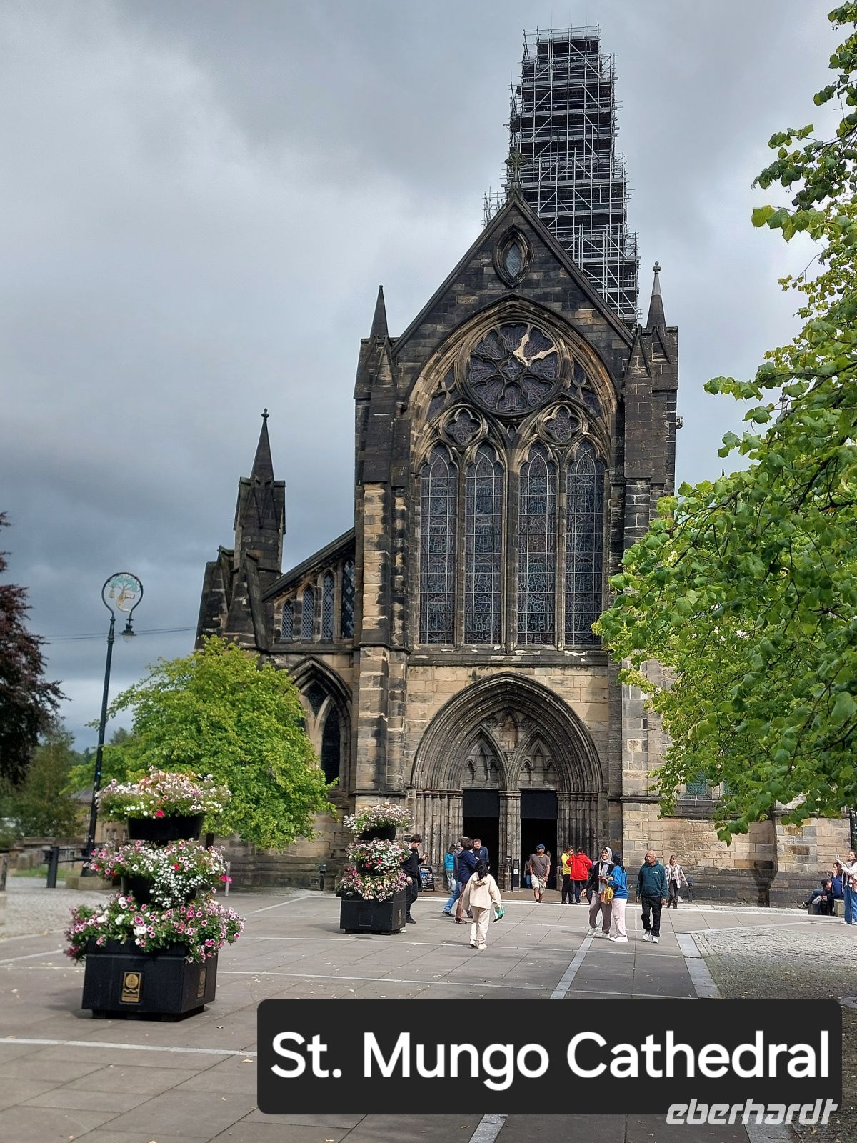 Am Nachmittag – unsere Fluggäste sind mittlerweile auch gelandet und zur Gruppe gestoßen – treffen wir uns an der St. Mungo Kathedrale in Glasgow mit Victoria, unserer Stadtführerin für den heutigen Tag.