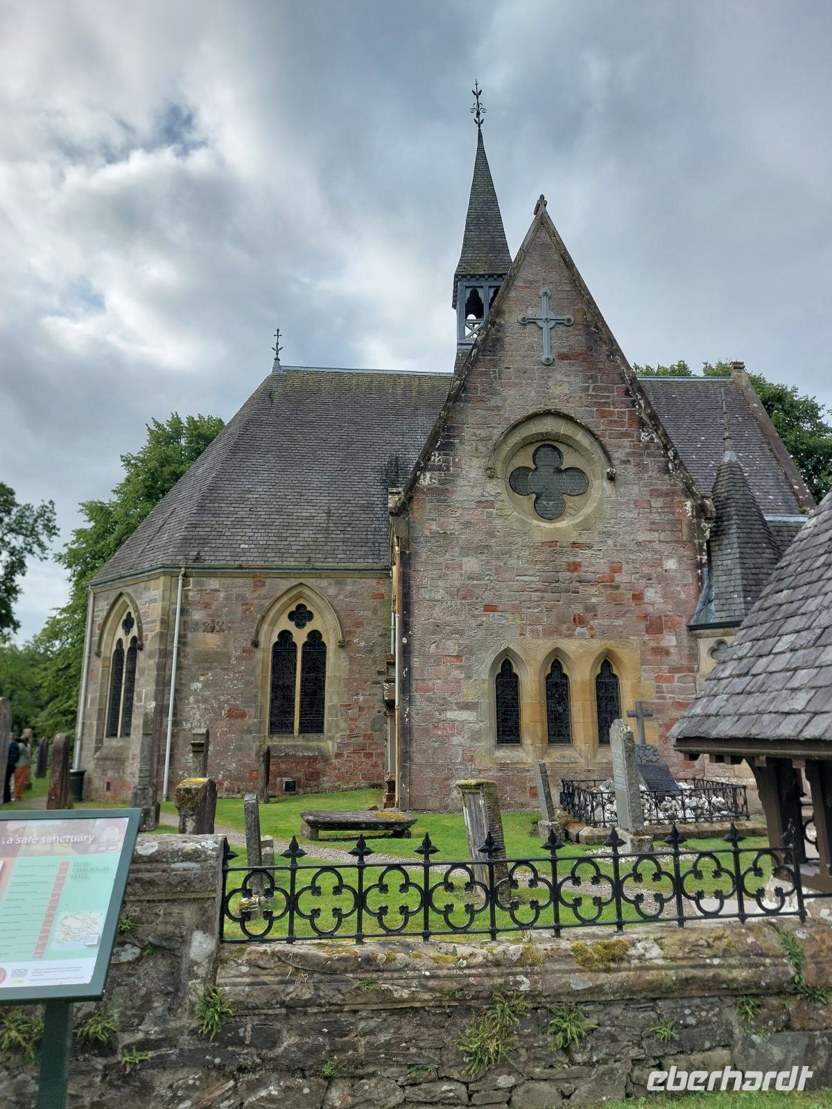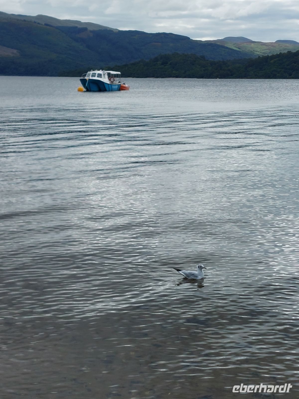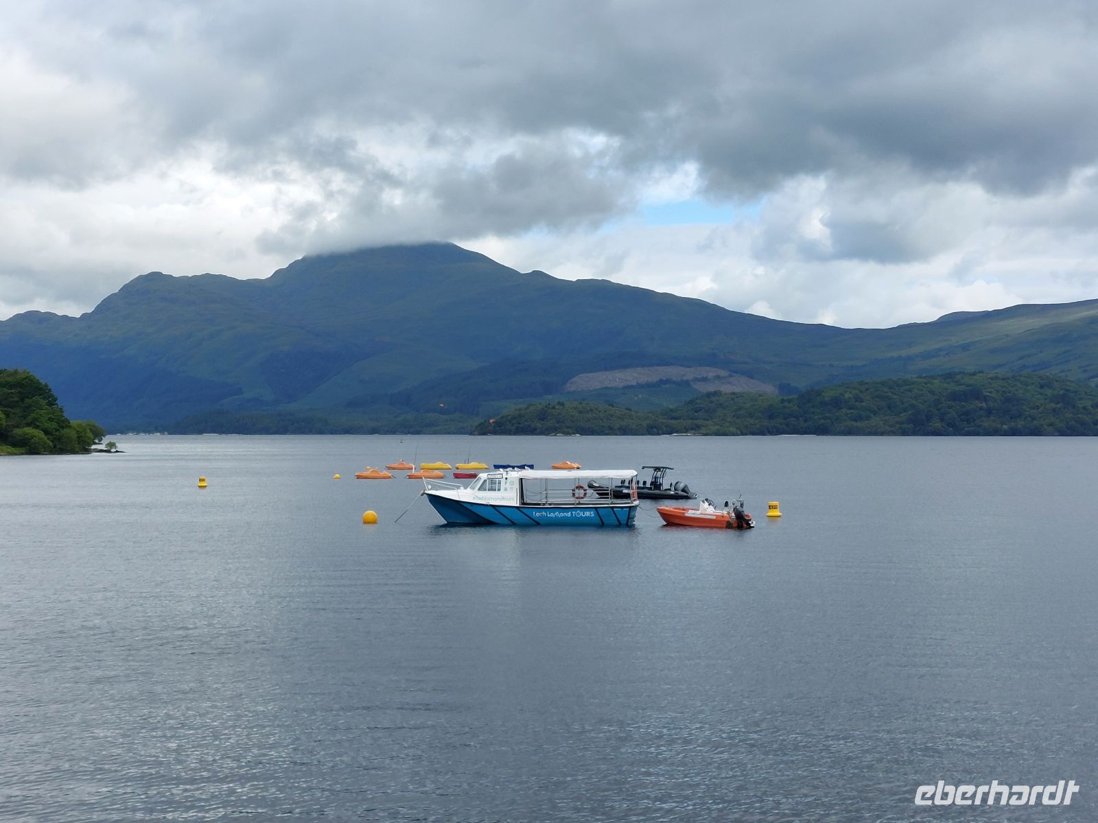 Nach unserer Abfahrt in Glasgow fuhren wir zum Loch Lomond. Dort wurde in dem touristisch geprägten, dennoch sehr idyllischen Dorf Luss eine erste Pause eingelegt, bspw. zum Bummeln, zum Verweilen am Loch Lomond und / oder zum Picknicken. Interessant in Luss ist die Kirche und der Friedhof, auf dem mancher jahrhundertealter Grabstein steht.