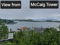 schönen Rundblick über das Dorf und den Hafen in Oban.