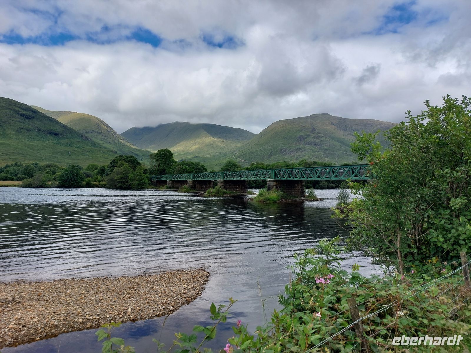 Nach Rückkehr zum Bus folgte eine längere Strecke vorbei an der Bridge of Orchy zum Glen Coe Viewpoint (kurzer Ausstieg, Fotochance) und zum Glen Coe Visitor Centre, bevor es auf die letzte Tagesetappe zum Balavil Hotel in Newtonmore ging.