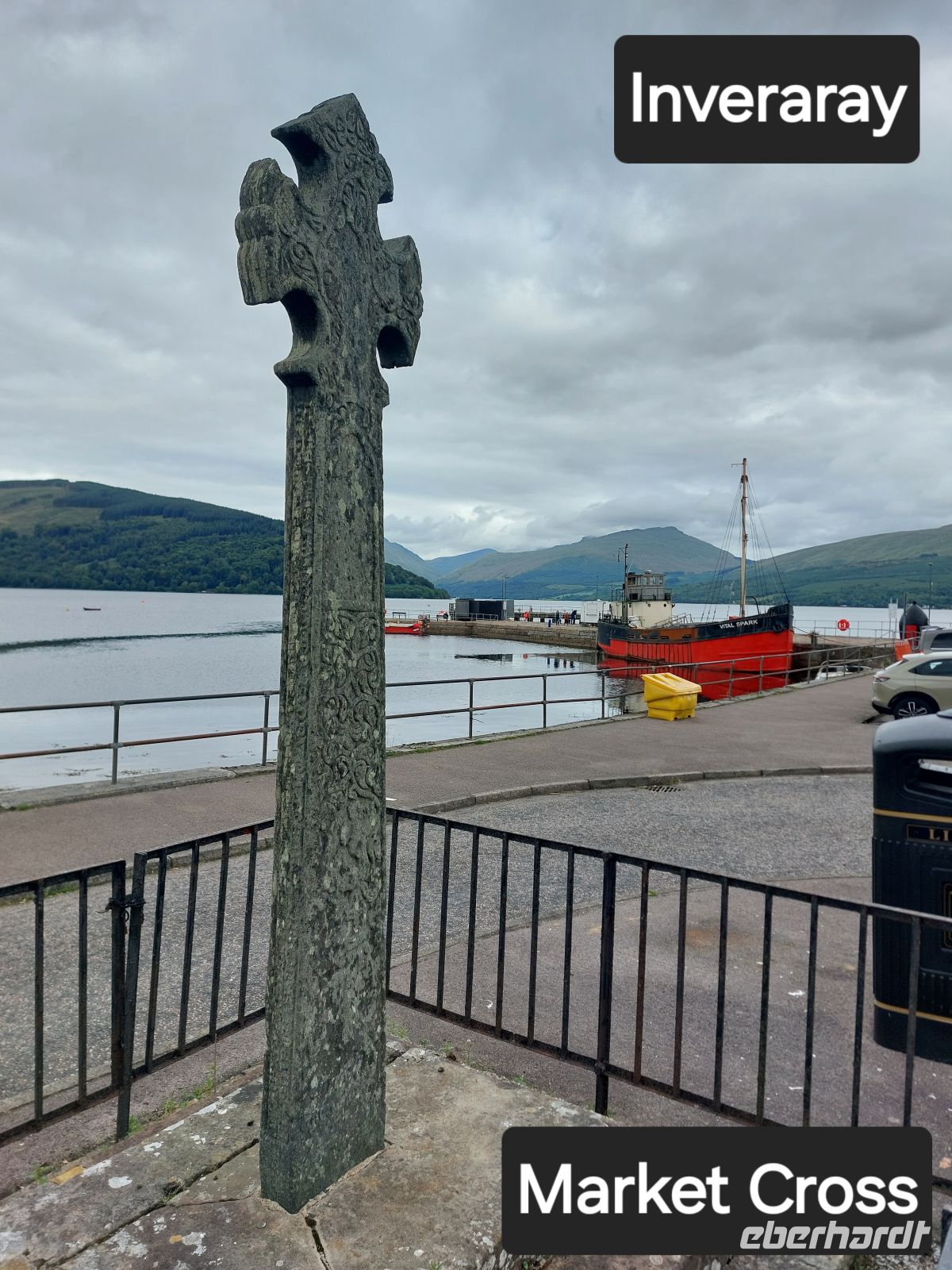 Reiseleiter – den kleinen Ort erkundet. Das Market Cross, die Pier in den Loch Fyne hinein,
