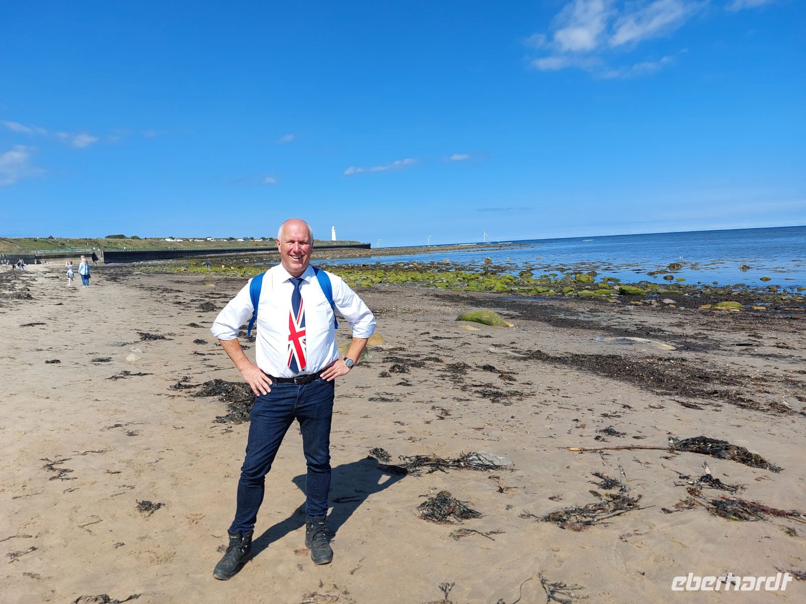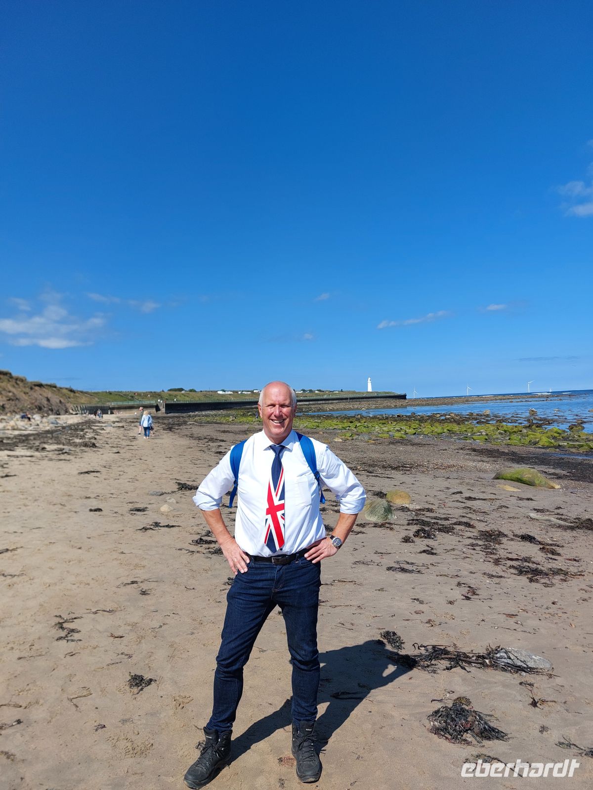 Als letzten Programmpunkt vor der Einschiffung hatten wir – in Ergänzung zum geplanten Verlauf – einen Strandspaziergang am Whitley Bay Beach eingefügt. Hier befindet sich – schon in Sichtweite eines kleinen Leuchtfeuers am Hafen von Newcastle – das St. Mary´s Lighthouse, welches einige Gäste besucht haben, andere haben einen gemütlichen Strandspaziergang absolviert, bevor es auf die verbleibenden Kilometer zur Fähre ging.