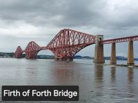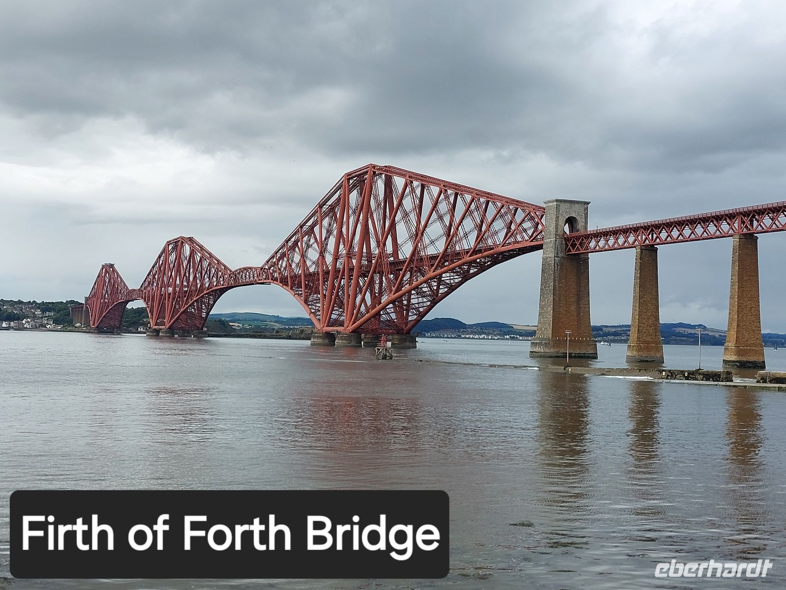 Letzter Programmpunkt vor Erreichen des Hotels: Der Viewpoint Three Forth Bridges, von dem aus wir die drei Brücken aus drei Jahrhunderten (Eisenbahnbrücke aus dem 19. Jahrhundert, alte Autobrücke aus dem 20. Jahrhundert, neue Autobahnbrücke aus dem 21. Jahrhundert) betrachten konnten, die den Firth of Forth überbrücken und somit Edinburgh (südlich des Flusses) mit der Region Fife (nördlich des Flusses) verbinden.