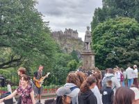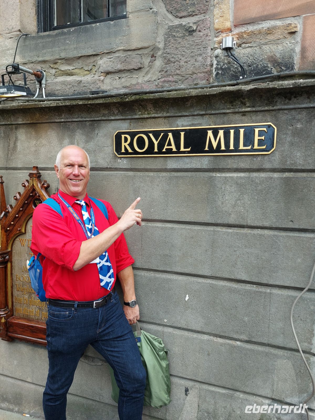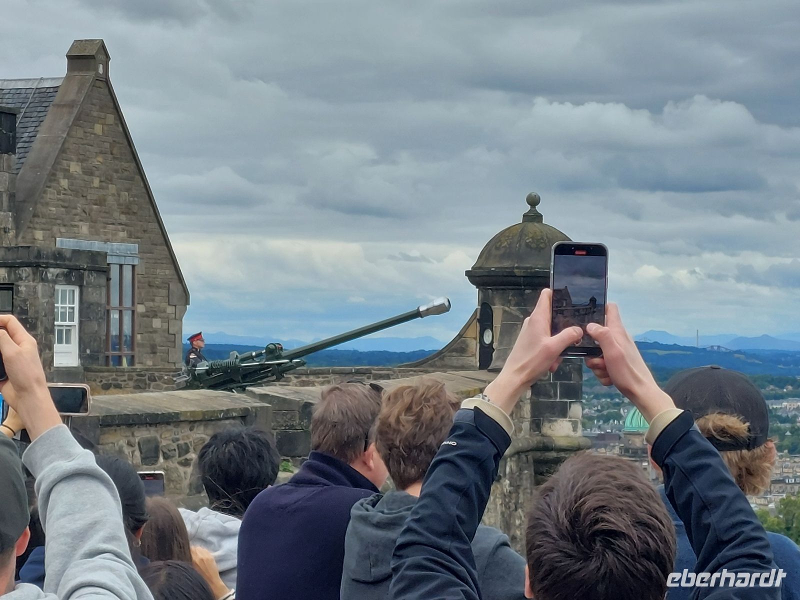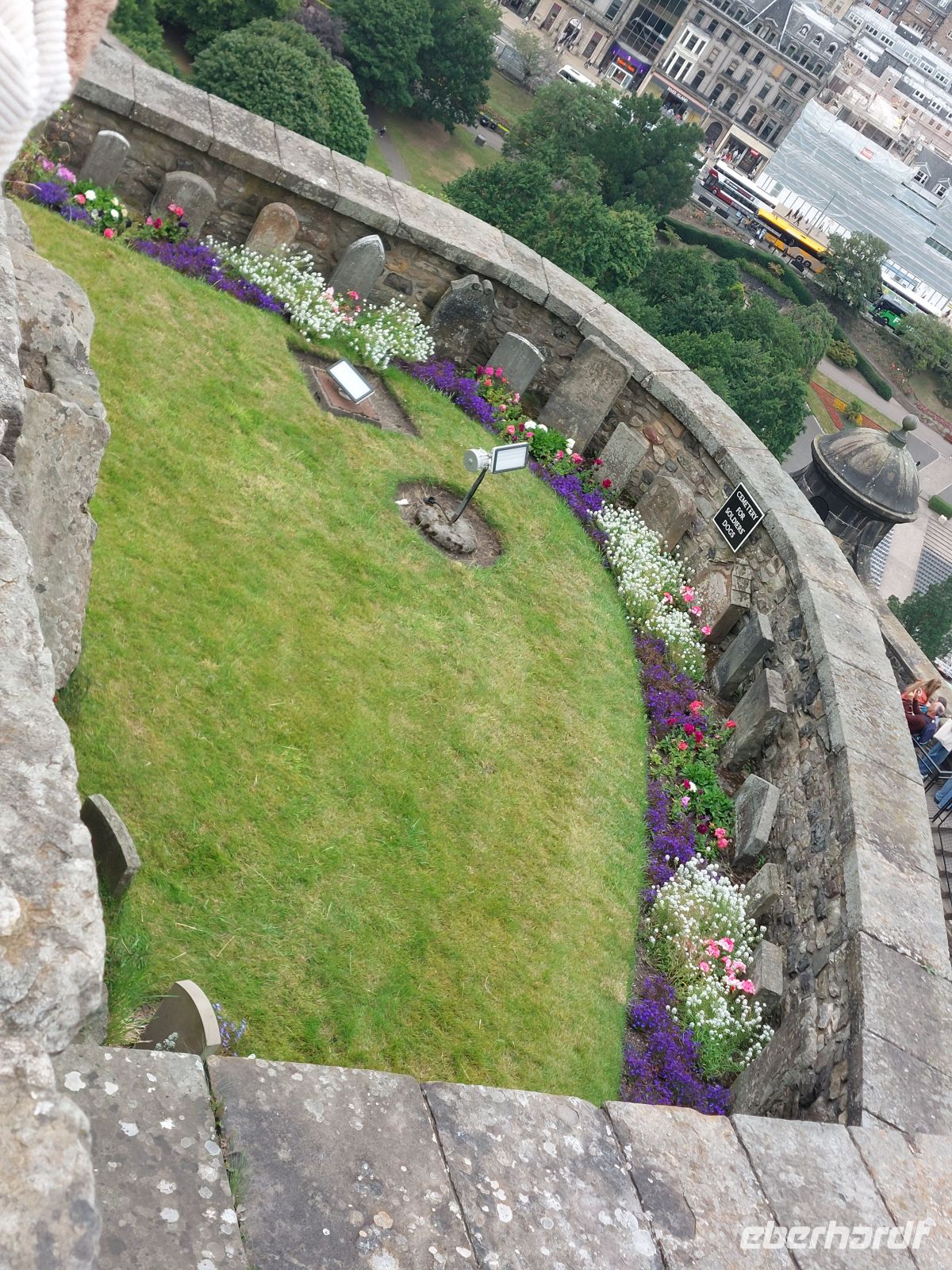 Auf dem Castle, auf der Burg über den Dächern der Stadt, hat der Reiseleiter vorab eine kleine Einführung gegeben: Argyll Tower, One o´Clock Gun, Museen, St. Margaret´s Chapel, Honours of Scotland (Kronjuwelen). Wir mussten jedoch aufpassen: Man darf nicht überall als Tour Guide, als Reiseleiter auftreten! Grundsätzlich darf ein externer Guide nur im Freien vortragen, und auch dann nicht überall! Dem scherzhaft mitgeteilten „Platzverweis“ sind wir natürlich nachgekommen. Nach der Einführung wurde die Gruppe zur Erkundung des Castle nach eigenen Interessen und anschließend in die Freizeit entlassen.