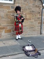 Stätte, an der das Herz von Robert the Bruce liegt und neben der das „Bagpipe playing