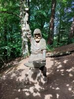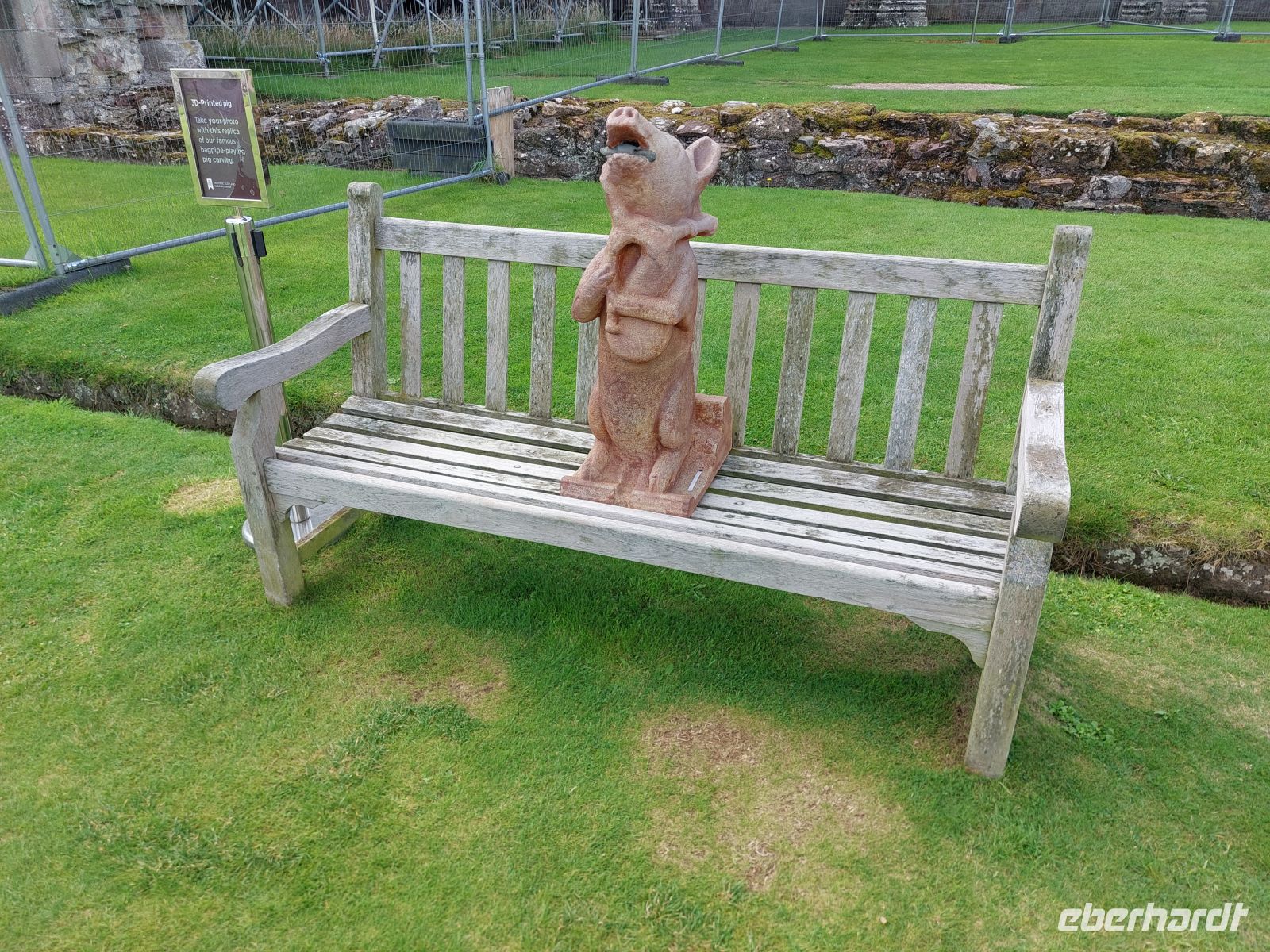 Pig“ als maßstabsgetreue Nachbildung auf einer Bank auf uns wartete.