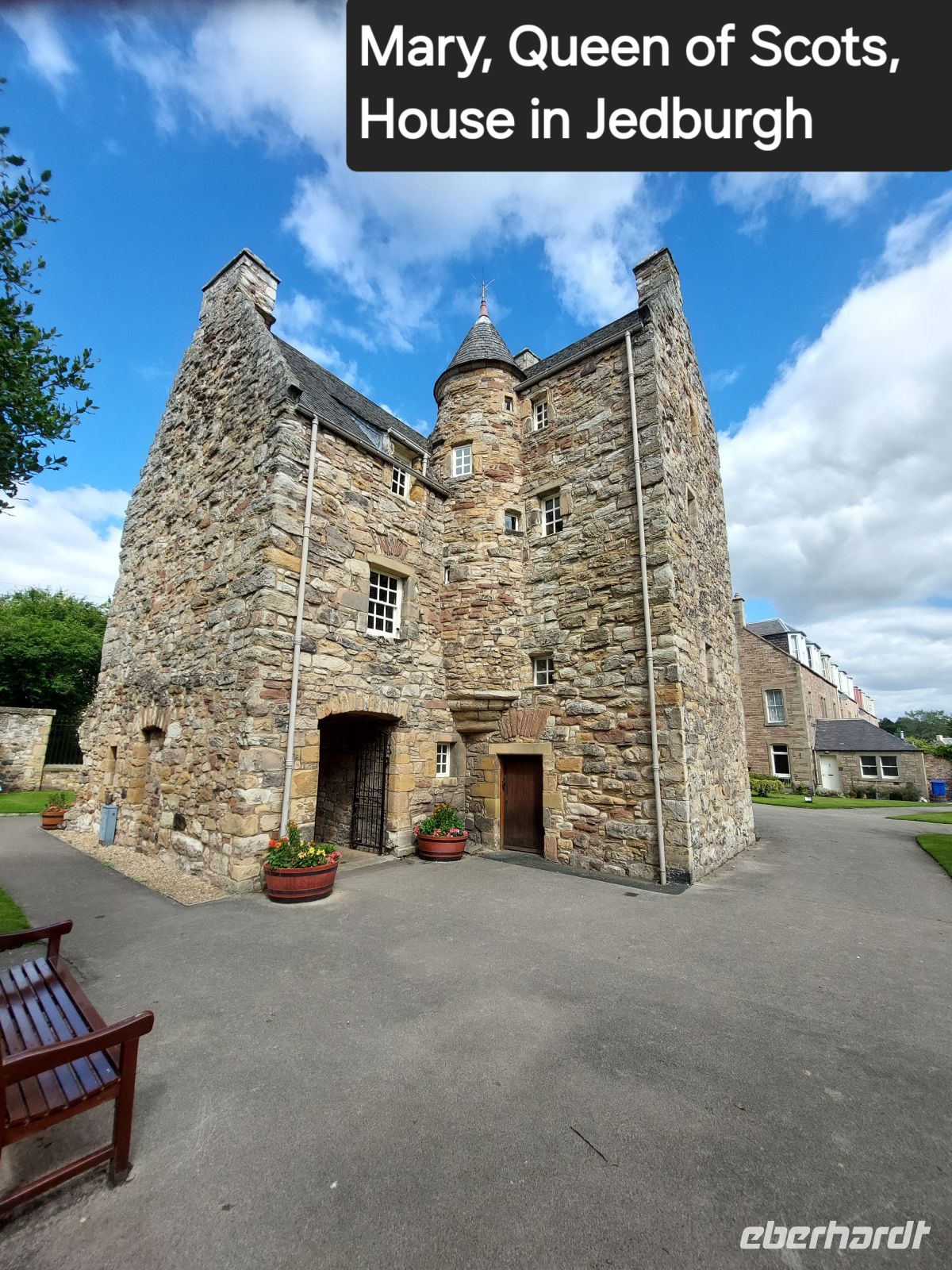 Nach kurzer Weiterfahrt erreichten wir Jedburgh, unseren letzten Stopp in Schottland. Hier konnten wir die Jedburgh Abbey besuchen. Hier (und einigen anderen Orten der Borders Region) finden jährlich die so genannten „ride-outs“ statt, ein traditionelles Ritual, bei dem eine Dudelsack-Band und eine größere Gruppe Reiter die historische Patrouille gegen Eindringlinge aus dem Süden (gemeinhin „Engländer“ genannt) und gegen Viehdiebe aus der Region wieder aufleben lassen.