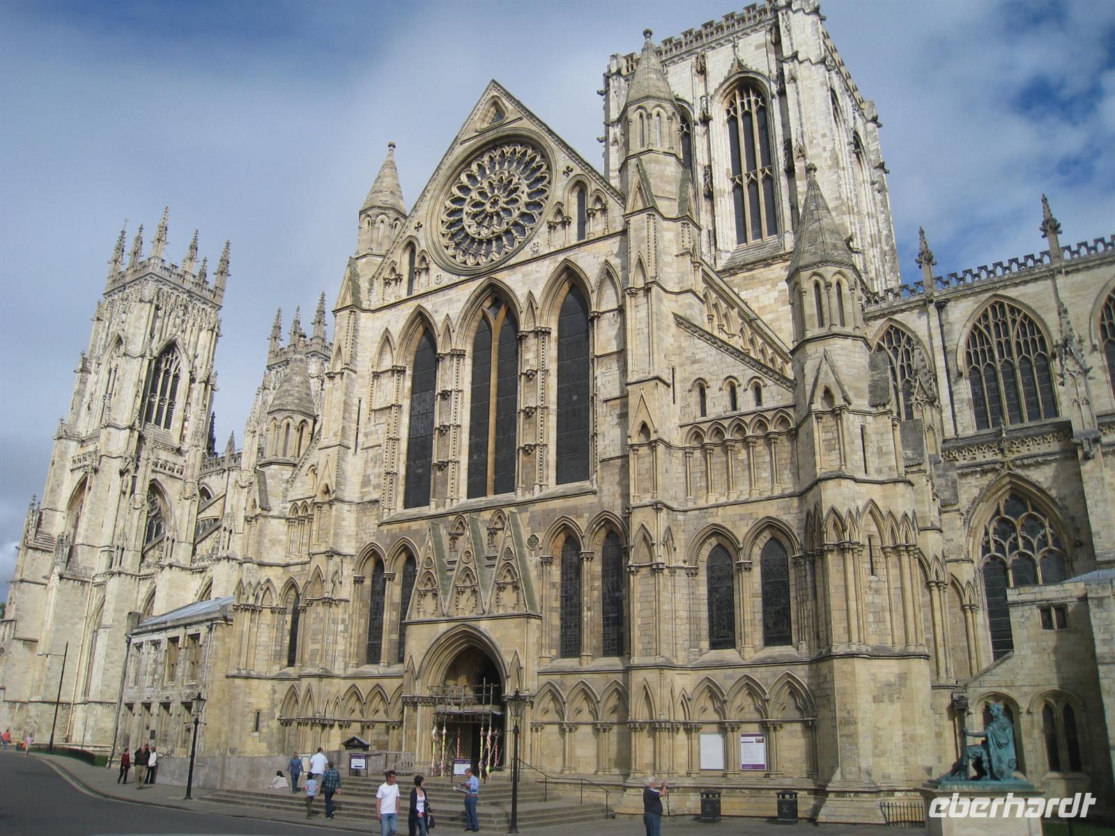 Nach dem Verlassen der Fähre ging es Richtung York, einer alten Stadt, deren strategisch günstigen Standort schon die Römer erkannt hatten und um 300 n. Chr. ein Fort und Wallanlagen anlegten. Gemeinsam durchquerten wir eines der alten Stadttore und bummelten zum Münster, der größten gothischen Kathedrale auf der Insel. Zaghaft nutzen wir die Chance während des Gottesdienstes einen Blick in die Kirche zu werfen und erfreuten uns der bedeutenden, 16 m hohen Glasfenster. Anschließend schlenderten alle individuell durch die malerischen Gassen der Altstadt. Eine besondere Sehenswürdigkeit sind die Shambles, mittelalterliche Fachwerkhäuser in den schmalen Gassen, deren obere Stockwerke sich weit hinauslehnen.. Wir verließen York, kamen am Ort Lockerbie vorbei und überquerten nach mehr als zwei Stunden Fahrt von York die Grenze nach Schottland. Eine Pause legten wir in Gretna Green, dem ersten Dorf hinter der schottischen Grenze ein. Früher gaben sich dort Minderjährige das Ja-Wort, weil das in Schottland ohne die Erlaubnis der Eltern möglich war. Nun ist dieser Ort mit seiner Hochzeitsschmiede Wallfahrtort Heiratswilliger aus Europa; auch Joschka Fischer soll eine seiner Ehen hier begonnen haben ...