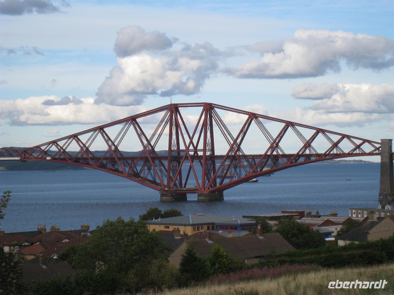 Auf dem Weg zu unserem Hotel in Livingston bei Edinburgh überquerten wir den Firth of Forth, die Flussmündung des Flusses Forth und bestaunten die Eisenbahnbrücke, die neben unserer Straßenbrücke den Forth überspannt.