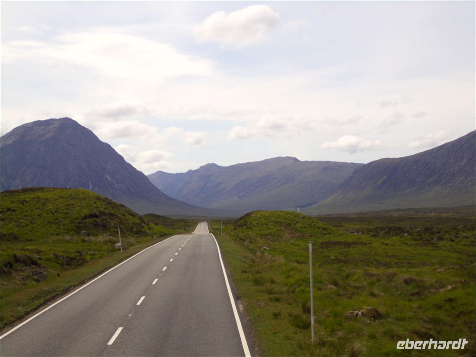 Weiter geht es durch das wohl schönste Tal Schottlands, Glen Coe. Es wird auch das Tal der Tränen genannt, weil hier vor langer Zeit eine Rechnung zwischen den Clans der Campbels und McDonalds blutig und grausam beglichen wurde. Daran erinnert in dieser überwältigenden Landschaft heute nichts. Diese war auch Filmkulisse für den Spielfilm „Highlander"