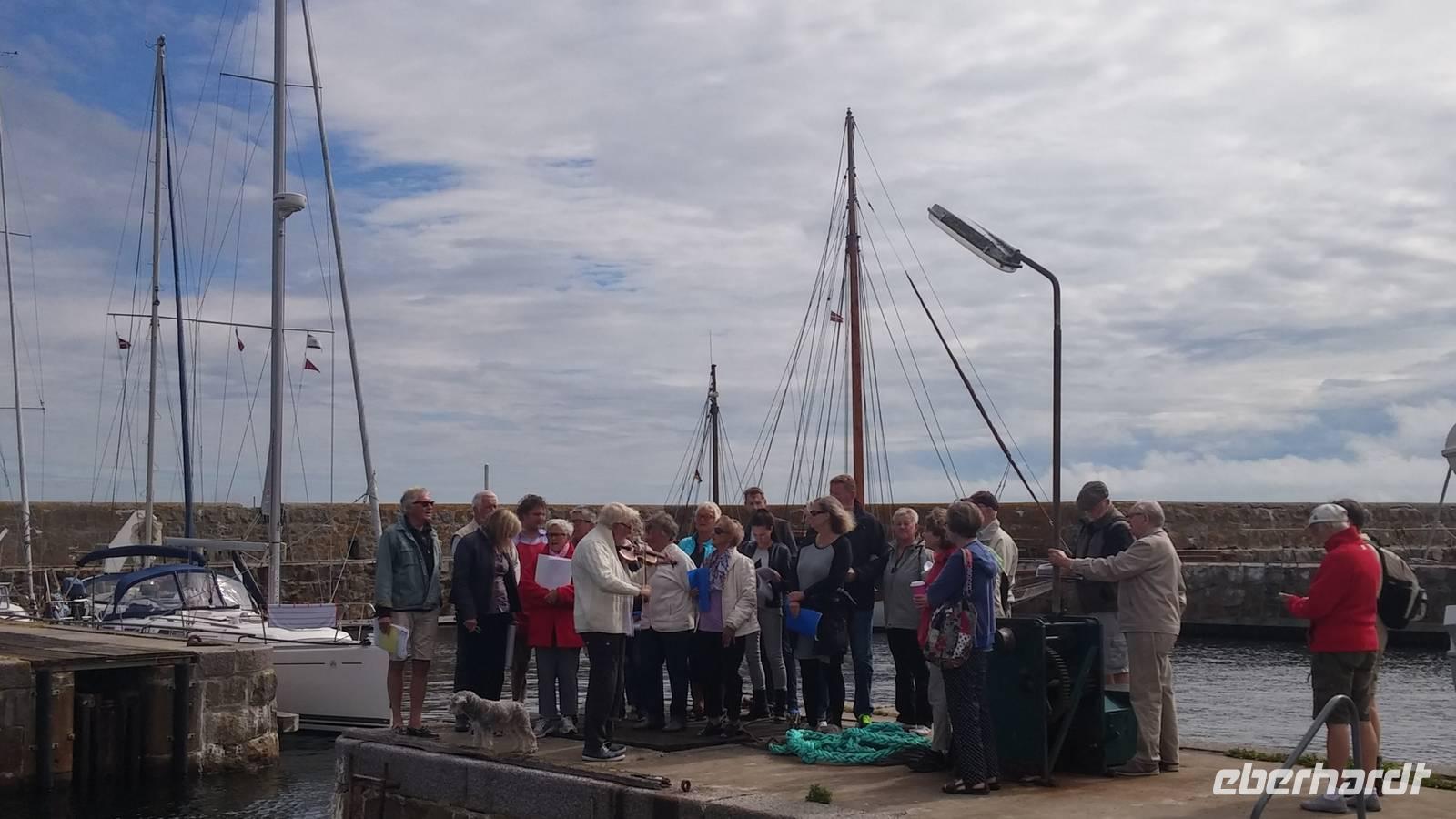 Bei der Abfahrt gab es das traditionelle Ständchen der Gewerbetreibenden der Geschäfte im Hafen an der Pier.