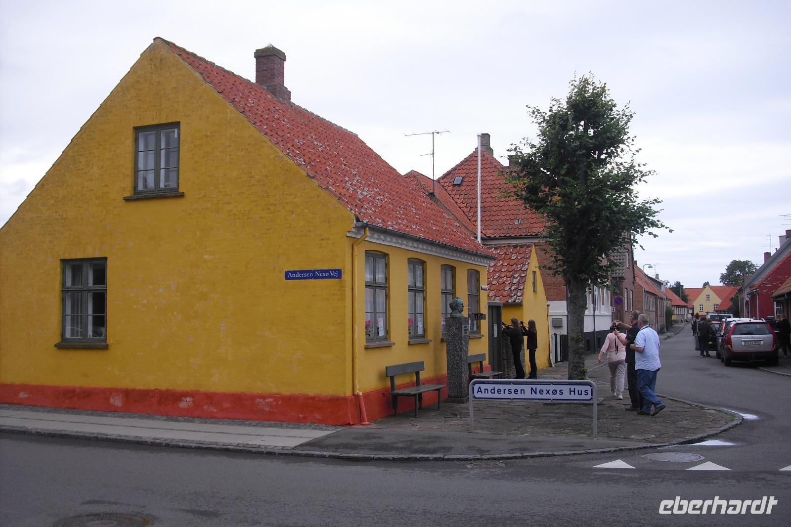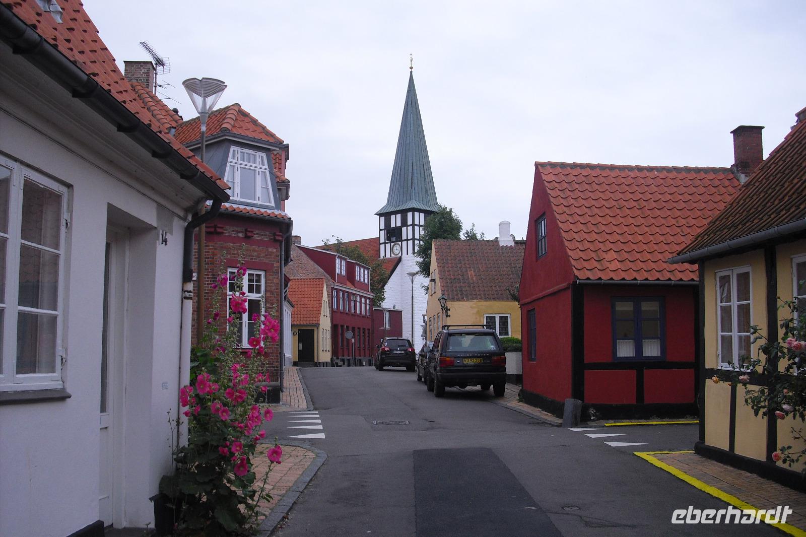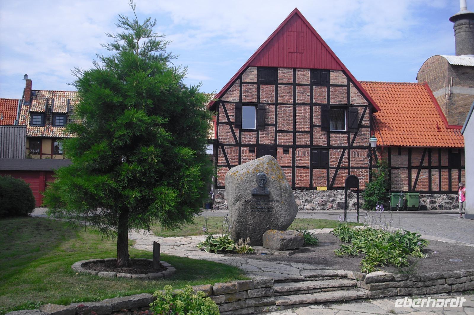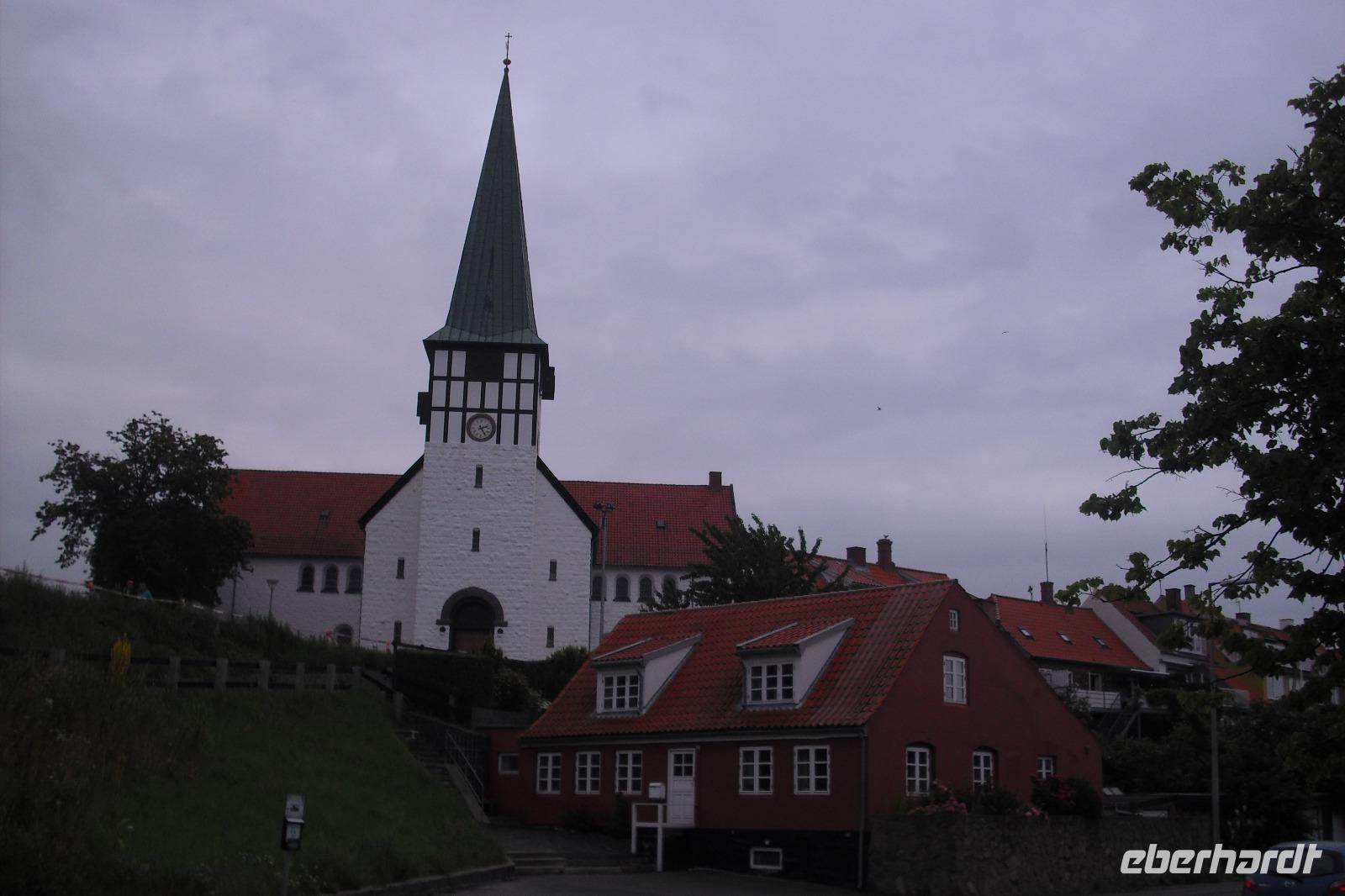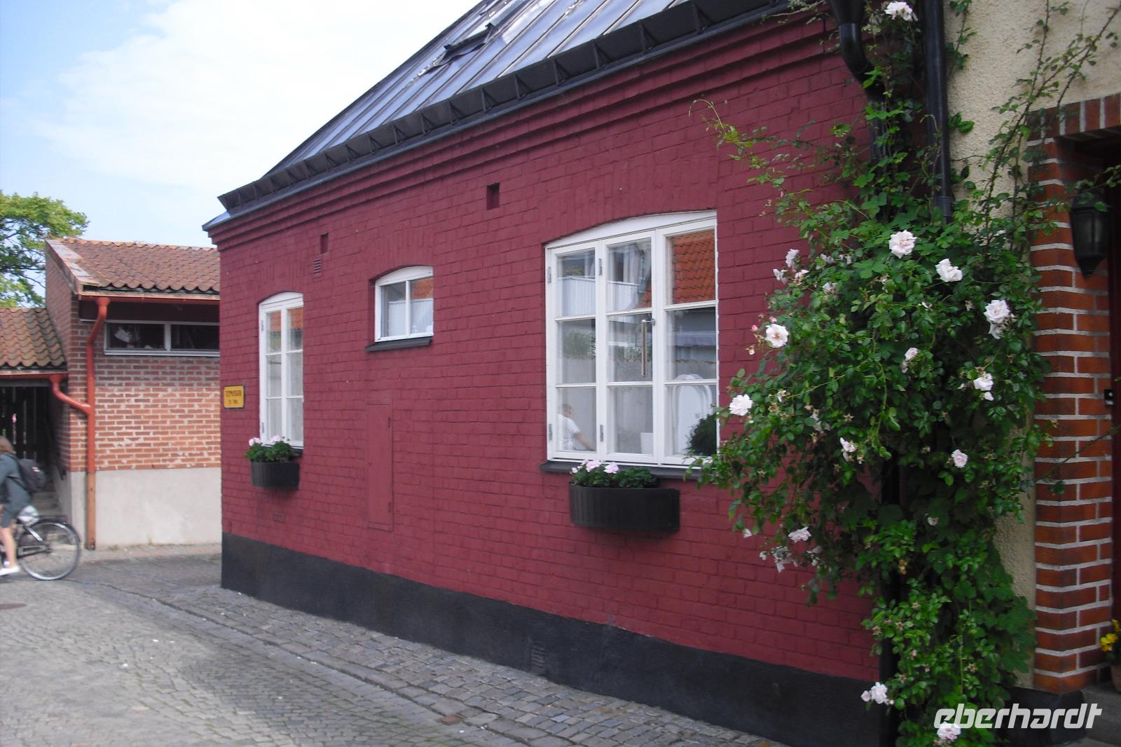 Heute zeigte sich das Wetter von einer anderen Seite, Wind und Regenschauer begleiteten uns abwechselnd. Wir waren gewappnet und fuhren nach dem Frühstück erst einmal nach Svaneke. Es ist die östlichste Stadt Dänemarks und erhielt ihre Stadtprivilegien im Mittelalter. Die alten Häuser bilden wohl das schönste Stadtbild Bornholms und ist nur an wenigen Stellen durch neuere Gebäude gestört. So ist es kein Wunder, daß Svaneke seit 1975 Besitzerin der europäischen Goldmedaille für Stadterhaltung ist. Am Hafen liegen die größten Anwesen, die ursprünglich Kaufleuten gehörten. Sehr viele Fachwerkhäuser mit einer charakterischen Steintreppe davor sind erhalten. Unser nächstes Ziel war die Osterlars Rundkirche, die größte Rundkirche Bornholms. Der Name bezieht sich auf den Heiligen der Kirche St. Laurentius, auf dänisch Lars. Die Kirche liegt etwa 100 m über dem Meer und etwa 3 km davon entfernt. Bornholms Rundkirchen sind als Kirchenburgen erbaut, um als Gotteshäuser und in unruhigen Zeiten als Zufluchtsstätten zu dienen. Wir konnten dieses Bauwerk von innen und außen in aller Ruhe besichtigen. Sicher war für Einzelne das eine oder andere Details von großem Interesse. Auch hier begegnete uns wieder ein Runenstein, wie schon in Växjö. Einen nächsten Halt auf unserer Inselrundfahrt machten wir in Hammershus, der im Nordwesten Bornholms gelegenen größten Burgruine Skandinaviens. Die ältesten Teile der Anlagen stammen mindestens aus der Zeit um 1250. Das Material dieser ältesten Teile sind Feldsteine, bei späteren Um- und Anbauten verwendete man große Backsteine. Noch heute sieht man innerhalb der Anlagen zwei Teiche mit Grundwasser, immerhin 70 m über dem Meeresspiegel, die die Trinkwasserversorgung sicher stellten. Mit der wachsenden Bedeutung von Schusswaffen wurde die Burganlage um 1600 wertlos, aber immer noch als Residenz benutzt. Mit der Schaffung der Befestigung auf Christiansoe (Erbseninsel) war das Schicksal von Hammershus besiegelt - man brauchte Steine von Hammershus. Die Ruinen stehen seit 1822 unter Denkmalsschutz und heute investiert man viel zur Erhaltung der Anlage sowie zur Schaffung eines neuen Besucherzentrums. Wir sahen es in Form von Baustellen. Das Mittagessen nahmen wir in Hasle ein. Hier gibt es noch eine von zehn Fischräuchereien, die über glimmendem Erlenholz bei maximal 80 Grad aus silbernen Fischen das Bornholmer Gold werden lassen. Wir bekamen den geräucherten Bornholmer Hering serviert und konnten unserem Magen um die Mittagszeit etwas ganz Typisches anbieten, lecker. Frisch gestärkt fuhren wir nun nach Roenne, der "Hauptstadt" Bornholms. Hier unternahmen wir einen kleinen Stadtspaziergang und konnten auch noch etwas bummeln.Roenne, die größte Stadt Bornholms mit ca. 15000 Einwohnern, entstand im frühen Mittelalter an einem Naturhafen zwischen zwei Riffen. Der Hafen und damit einhergehend der Handel besonders mit deutschen Kaufleuten aus Greifswald bestimmten die Entwicklung. Es sind noch eine Reihe schöner Stadtteile in Roenne erhalten. Wir bummelten an der Stadtkirche vorbei, der St. Nicolai Kirche, besichtigten die Hausfassaden in der Vimmelskaftet, standen vor dem ältesten privaten Theater Dänemarks und wissen auch, das Roenne im Mai 1945 sehr stark durch russische Bombenangriffe zerstört wurde. Bornholm war von 1940-1945 von deutschen Truppen besetzt und der Kommandant wollte sich nicht ergeben. Heute ist der wesentliche Teil von Industrie und Verkehrsverbindungen in Roenne konzentriert. Nach dem es gelang, uns alle wieder zur Weiterfahrt zu finden setzten wir die Rundfahrt mit einem Fotostopp am Elternhaus von Martin Andersen Nexö fort. Anschließend besuchten wir noch den wunderschönen, wenn nicht wunderschönsten Sandstrand von Dueodde. Es war im Anschluß nur noch ein Katzensprung bis zum Hotel, wo es bald das Abendessen gab.