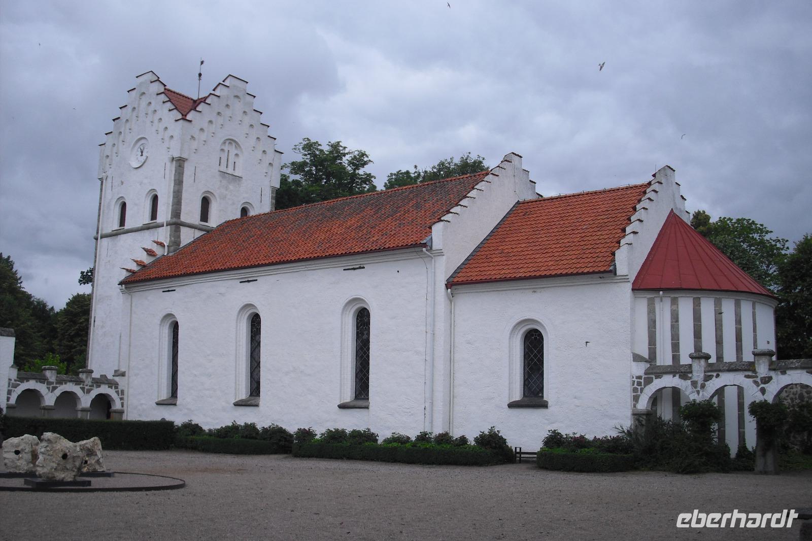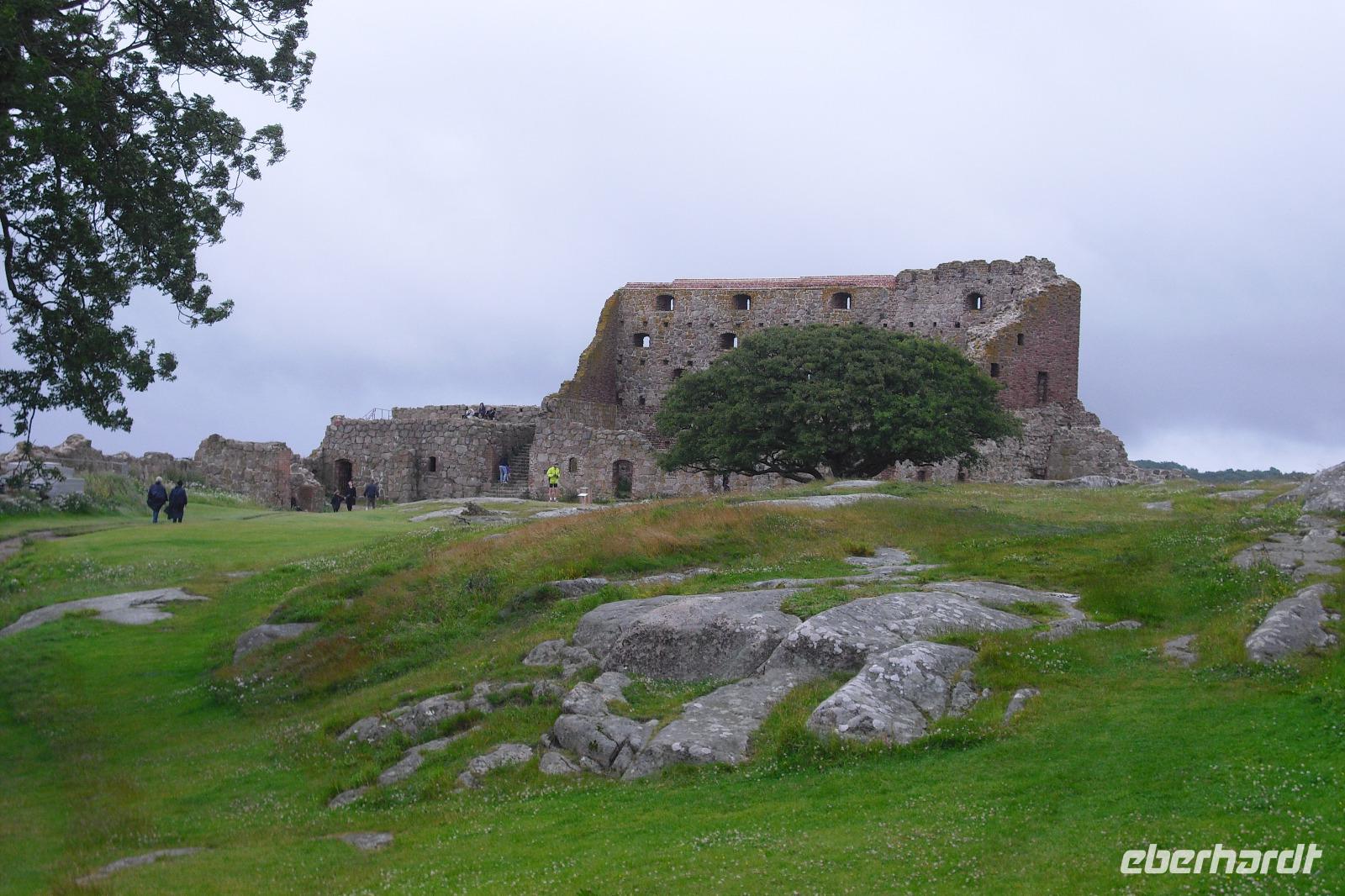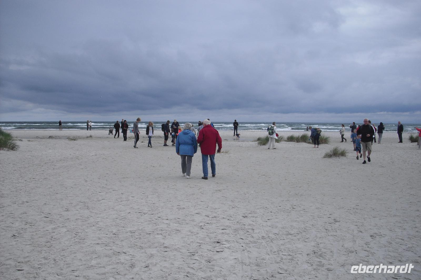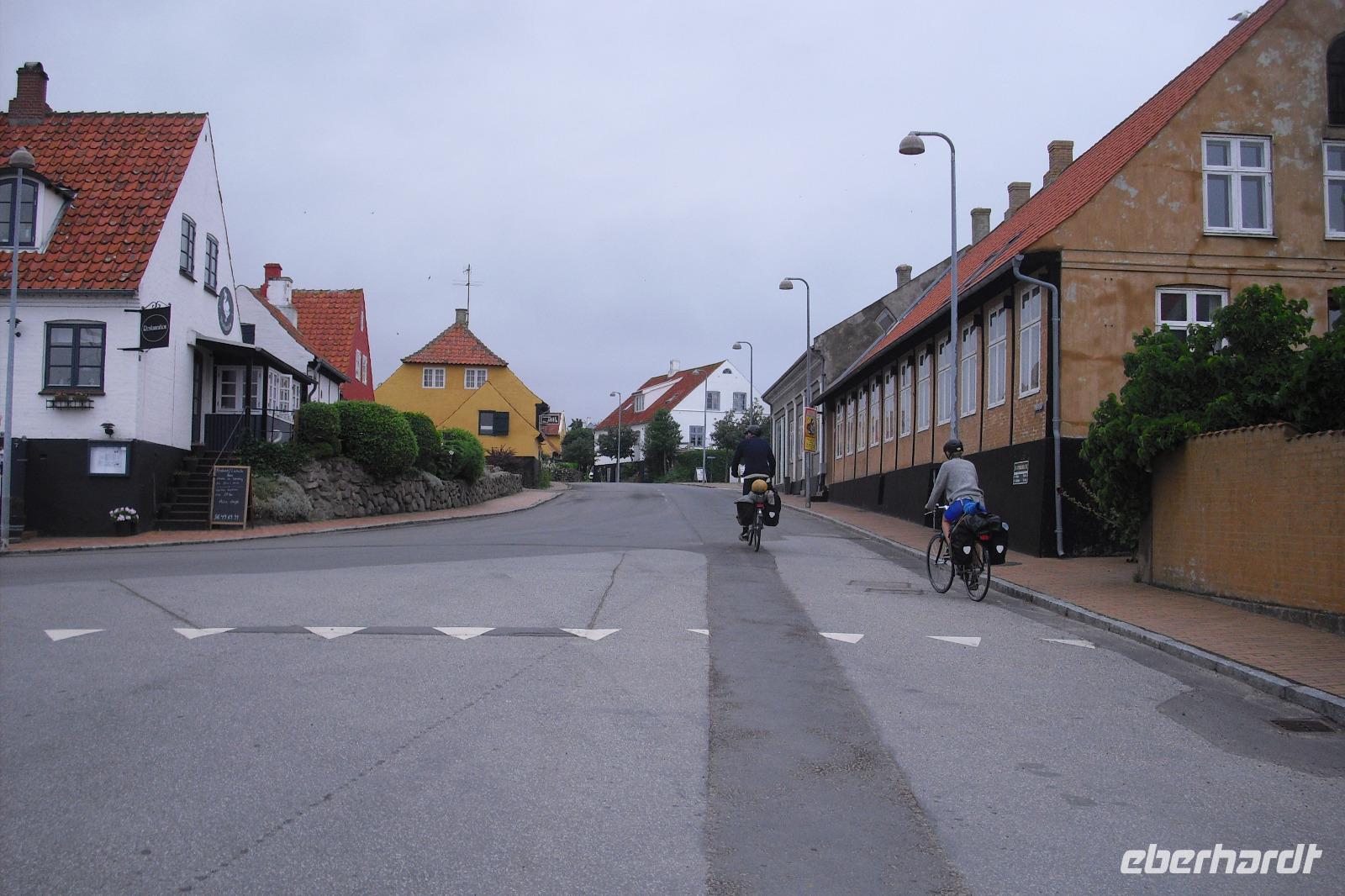 Heute zeigte sich das Wetter von einer anderen Seite, Wind und Regenschauer begleiteten uns abwechselnd. Wir waren gewappnet und fuhren nach dem Frühstück erst einmal nach Svaneke. Es ist die östlichste Stadt Dänemarks und erhielt ihre Stadtprivilegien im Mittelalter. Die alten Häuser bilden wohl das schönste Stadtbild Bornholms und ist nur an wenigen Stellen durch neuere Gebäude gestört. So ist es kein Wunder, daß Svaneke seit 1975 Besitzerin der europäischen Goldmedaille für Stadterhaltung ist. Am Hafen liegen die größten Anwesen, die ursprünglich Kaufleuten gehörten. Sehr viele Fachwerkhäuser mit einer charakterischen Steintreppe davor sind erhalten. Unser nächstes Ziel war die Osterlars Rundkirche, die größte Rundkirche Bornholms. Der Name bezieht sich auf den Heiligen der Kirche St. Laurentius, auf dänisch Lars. Die Kirche liegt etwa 100 m über dem Meer und etwa 3 km davon entfernt. Bornholms Rundkirchen sind als Kirchenburgen erbaut, um als Gotteshäuser und in unruhigen Zeiten als Zufluchtsstätten zu dienen. Wir konnten dieses Bauwerk von innen und außen in aller Ruhe besichtigen. Sicher war für Einzelne das eine oder andere Details von großem Interesse. Auch hier begegnete uns wieder ein Runenstein, wie schon in Växjö. Einen nächsten Halt auf unserer Inselrundfahrt machten wir in Hammershus, der im Nordwesten Bornholms gelegenen größten Burgruine Skandinaviens. Die ältesten Teile der Anlagen stammen mindestens aus der Zeit um 1250. Das Material dieser ältesten Teile sind Feldsteine, bei späteren Um- und Anbauten verwendete man große Backsteine. Noch heute sieht man innerhalb der Anlagen zwei Teiche mit Grundwasser, immerhin 70 m über dem Meeresspiegel, die die Trinkwasserversorgung sicher stellten. Mit der wachsenden Bedeutung von Schusswaffen wurde die Burganlage um 1600 wertlos, aber immer noch als Residenz benutzt. Mit der Schaffung der Befestigung auf Christiansoe (Erbseninsel) war das Schicksal von Hammershus besiegelt - man brauchte Steine von Hammershus. Die Ruinen stehen seit 1822 unter Denkmalsschutz und heute investiert man viel zur Erhaltung der Anlage sowie zur Schaffung eines neuen Besucherzentrums. Wir sahen es in Form von Baustellen. Das Mittagessen nahmen wir in Hasle ein. Hier gibt es noch eine von zehn Fischräuchereien, die über glimmendem Erlenholz bei maximal 80 Grad aus silbernen Fischen das Bornholmer Gold werden lassen. Wir bekamen den geräucherten Bornholmer Hering serviert und konnten unserem Magen um die Mittagszeit etwas ganz Typisches anbieten, lecker. Frisch gestärkt fuhren wir nun nach Roenne, der "Hauptstadt" Bornholms. Hier unternahmen wir einen kleinen Stadtspaziergang und konnten auch noch etwas bummeln.Roenne, die größte Stadt Bornholms mit ca. 15000 Einwohnern, entstand im frühen Mittelalter an einem Naturhafen zwischen zwei Riffen. Der Hafen und damit einhergehend der Handel besonders mit deutschen Kaufleuten aus Greifswald bestimmten die Entwicklung. Es sind noch eine Reihe schöner Stadtteile in Roenne erhalten. Wir bummelten an der Stadtkirche vorbei, der St. Nicolai Kirche, besichtigten die Hausfassaden in der Vimmelskaftet, standen vor dem ältesten privaten Theater Dänemarks und wissen auch, das Roenne im Mai 1945 sehr stark durch russische Bombenangriffe zerstört wurde. Bornholm war von 1940-1945 von deutschen Truppen besetzt und der Kommandant wollte sich nicht ergeben. Heute ist der wesentliche Teil von Industrie und Verkehrsverbindungen in Roenne konzentriert. Nach dem es gelang, uns alle wieder zur Weiterfahrt zu finden setzten wir die Rundfahrt mit einem Fotostopp am Elternhaus von Martin Andersen Nexö fort. Anschließend besuchten wir noch den wunderschönen, wenn nicht wunderschönsten Sandstrand von Dueodde. Es war im Anschluß nur noch ein Katzensprung bis zum Hotel, wo es bald das Abendessen gab.