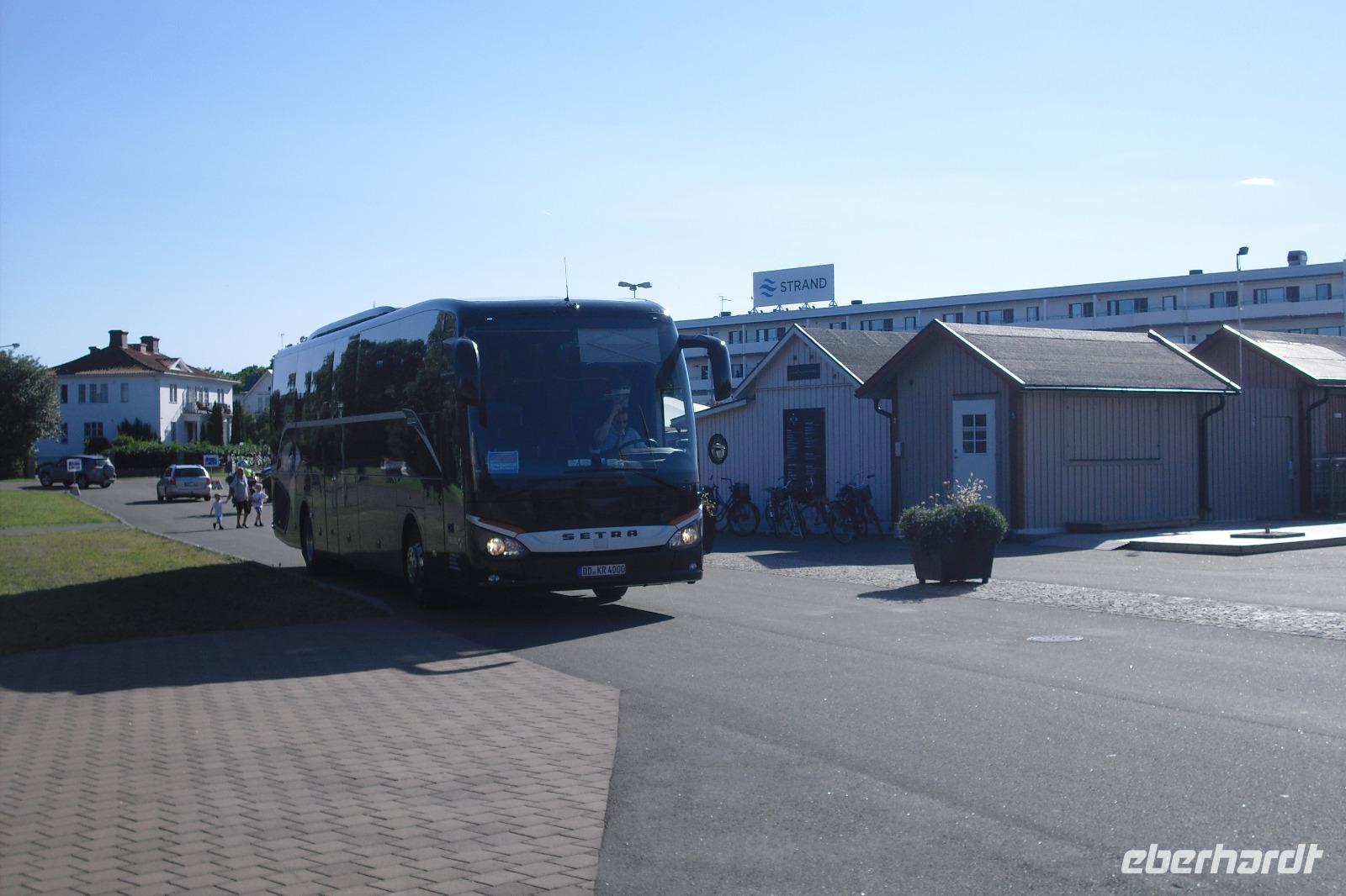 Am Hotel trafen wir nach dem Frühstück unseren örtlichen Reiseleiter Berndt. Mit ihm besuchten wir als erstes den Kalmarer Dom. Er dominiert das Zentrum von Kalmar und gilt als besterhaltenes Barockkirchenbauwerk Nordeuropas. 1703 wurde der Bau vollendet und 2008 bis 2013 renoviert. Wir wurden im Dom von Johana willkommengeheißen und sie stellte uns den Dom in einem kleinen Vortrag vor. Mit dem Bus ging es anschließend zum Schloß Kalmar, ein weiteres architektonisches Meisterwerk der Stadt. Es ist das besterhaltende Renaissanceburgenbauwerk in Nordeuropa. Die Zeit reichte lediglich für einen verlängerten Fotostopp, schließlich wollten wir Öland besuchen. Bei Färjestaden rüsteten wir uns in der Touristinformation mit entsprechendem Informationsmaterial aus und los konnte es gehen. Bei herrlichem Wetter fuhren wir zuerst nach Haga Park, ein schöner Strandabschnitt am Kalmarsund. Dann besuchten wir das Stora Alvaret, eine karge, zerkarstete Kalksteinlandschaft mit einer sehr seltenen Flora. Stora Alvaret ist eine geschützte Landschaft und steht auf der UNESCO - Weltkulturerbeliste. Unsere Mittagspause machten wir an einem gut gewählten Rastplatz mit typischen Windmühlen, aber auch Tischen,Bänken und WC bei Eckelsborg. Später besuchten wir den südlichsten Teil Ölands mit seinem Leuchtturm. Der Nachmittag war dann dem Besuch von Lerkaka - eine ganze Windmühlenbatterie (fünf Bockwindmühlen nebeneinander) und dem Hauptort von Öland, Borgholm, vorbehalten. Borgholm erhielt 1816 Stadtrechte und ist nach dem nahegelegenen Schloß Borgholm benannt. Dieses Schloß war einst eine der wichtigsten Verteidigungsanlagen des schwedischen Reiches. 1806 brach im Schloß ein Feuer aus und nur die mächtigen Mauern überstanden den Brand. Heute werden in der beeindruckenden Burgruine im Sommer Konzerte und Ausstellungen veranstaltet. Berndt verabschiedete sich von uns, wir fuhren zum Hotel und bekamen sozusagen zum Bergfest auf unserer Reise ein Abendessen mit Lachs. Ein weiterer schöner Tag war zu Ende.