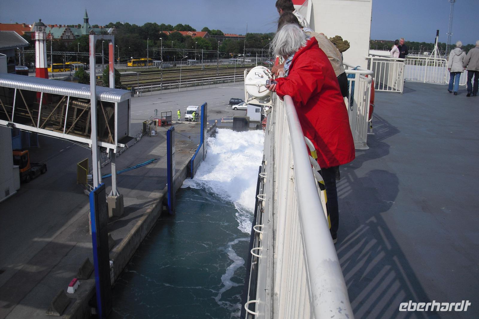 Nach dem Frühstück und heute wieder mit Gepäckverladung fuhren wir nach Karlskrona. Es bot sich sowohl vom Fahrtverlauf, von der geschichtlichen und politischen Bedeutung als auch vom Begleitwetter an. Die Stadt liegt auf etwa 30 durch Brücken verbundenen Inseln, ist die Hauptstadt der Provinz Blekkinge, zweitwichtigster Hafen und erste Flottenbasis Schwedens mit der im Zentrum stehenden Frederikskirche. Die Kirche befindet sich in Renovierung und ist ein Teil der Marinestadt Karlskrona, die 1998 in die UNESCO - Welterbeliste aufgenommen wurde. Nach diesem "Intermezzo" fuhren wir nach Mörrum. Das ist ein Ort am Fluß Mörrumsan - einer der bekanntesten Lachsflüsse Schwedens. Heute ist der Ort vor allem für das Haus des Lachses (LAXENS HUS) bekannt, ein 1992 eingeweihtes Museum mit Forschungszentrum - ganz dem Lachs und dem Lachsfang gewidmet. Als letztes Programmereignis des Tages erwartete uns eine Stadtführung in Ystad. Diese Stadt wollten wir kennenlernen und auch die Orte, an denen sich Kurt Wallander mit seinen Fällen plagte. Nach den Büchern von Henning Mankell wurden hier die Dreharbeiten gemacht und einige davon sahen wir bei unserem Stadtrundfahrt/Stadtrundgang mit einem sehr agilen Stadtführer. Später ging es zum Hafen und hier erwartete uns die Überfahrt mit einer Katamaranfähre nach Bornholm. Da die Fähre ihren Fahrplan nicht einhielt hatten auch wir nur die Chance einer verspäteten Hotelankunft auf Bornholm. Es gab trotzdem das Abendessen sehr schnell und einige Gäste konnten noch zum nahegelegenen Strand spazieren.